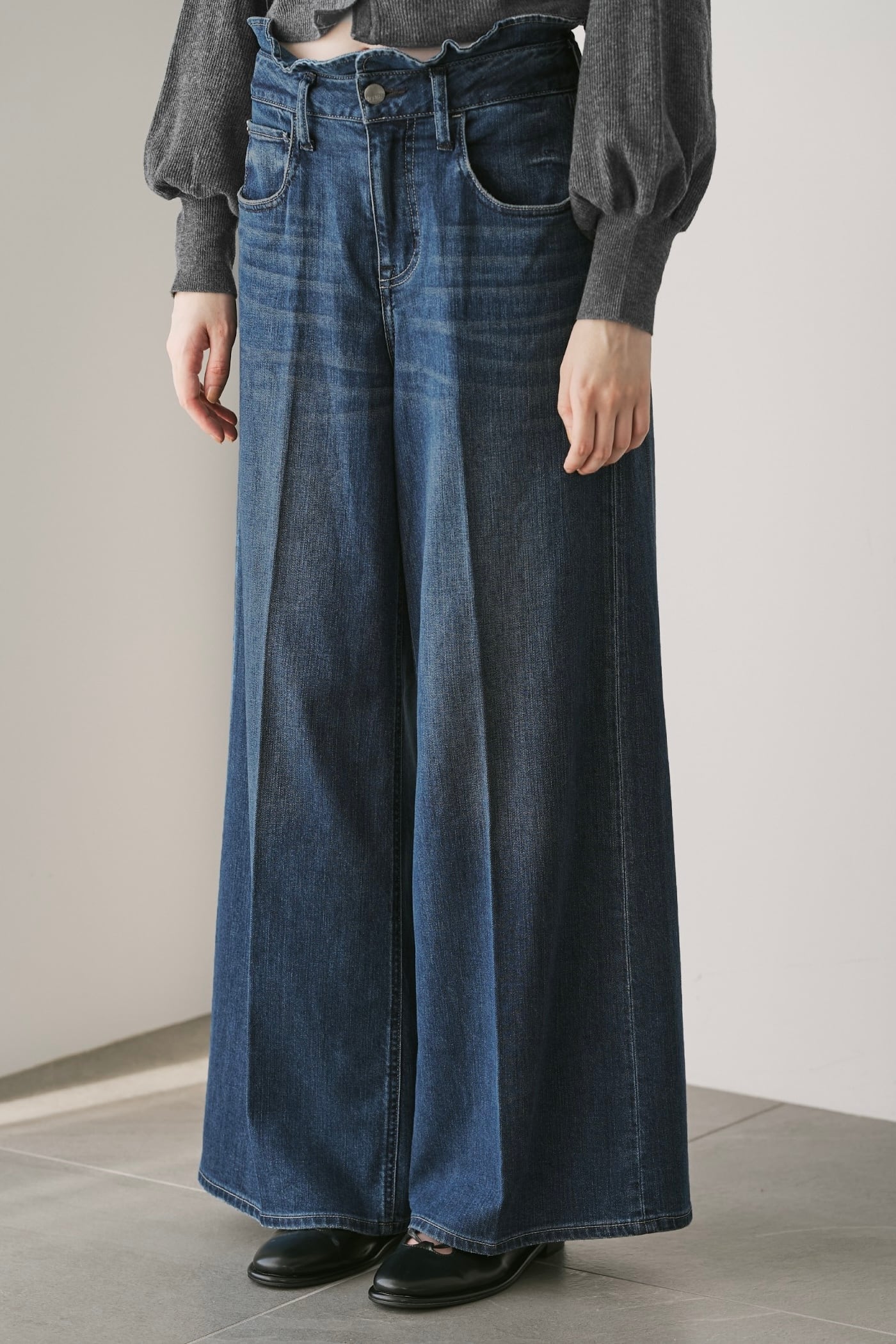 Healthy DENIM × WILLFULLY"Harmonia" waist frill wide denim ウエストフリルワイドデニム Blue