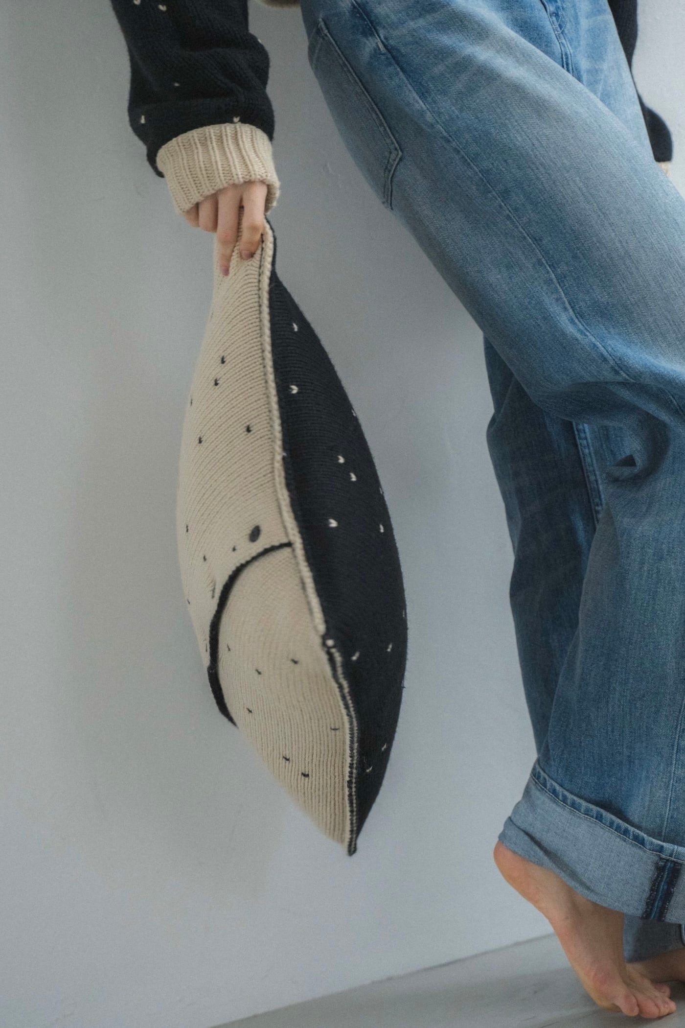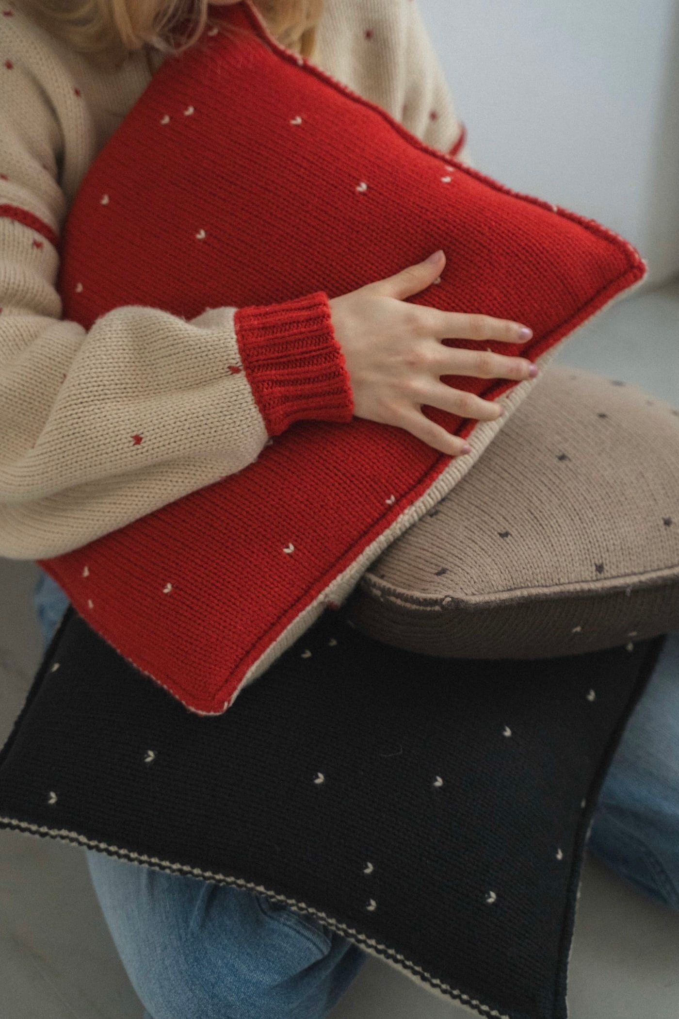 WILLFULLY heart dot jacquard knit cushion cover ハートドットジャガードニットクッションカバー TanxBlack