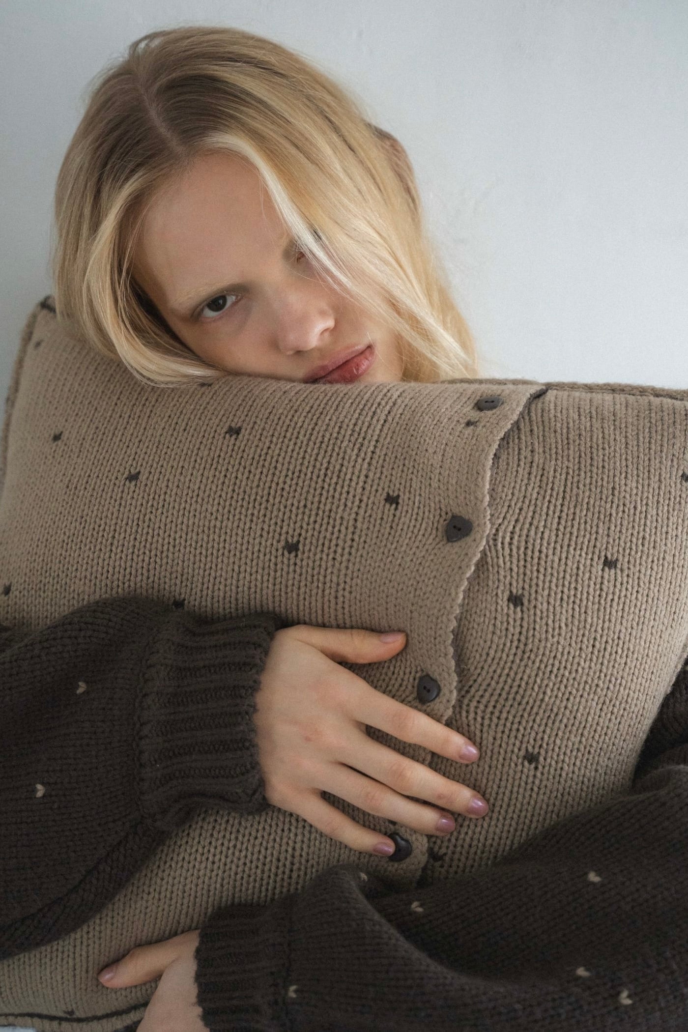 WILLFULLY heart dot jacquard knit cushion cover ハートドットジャガードニットクッションカバー BrownxMocha