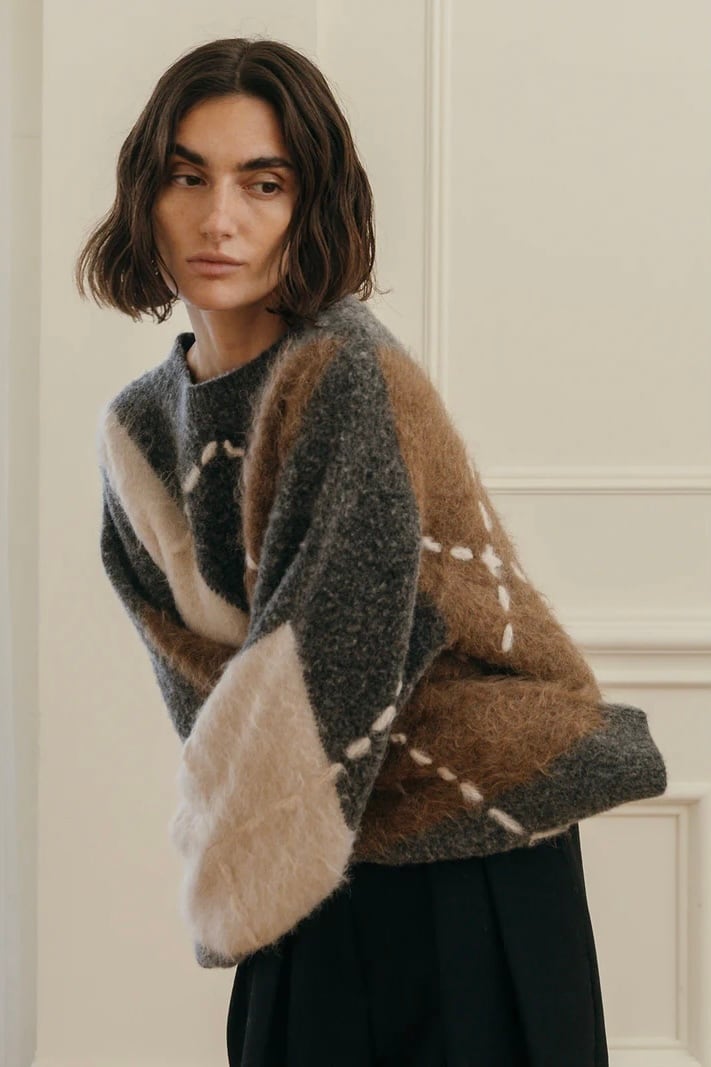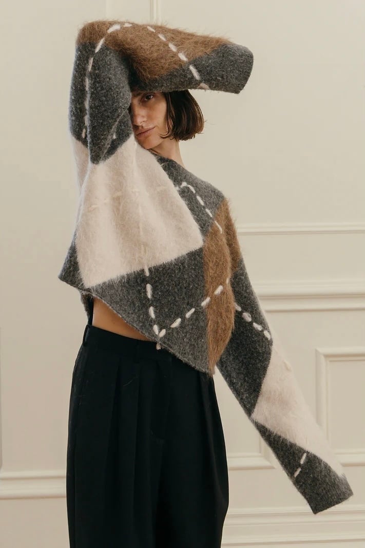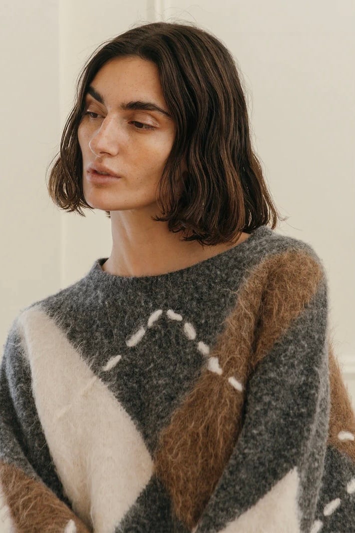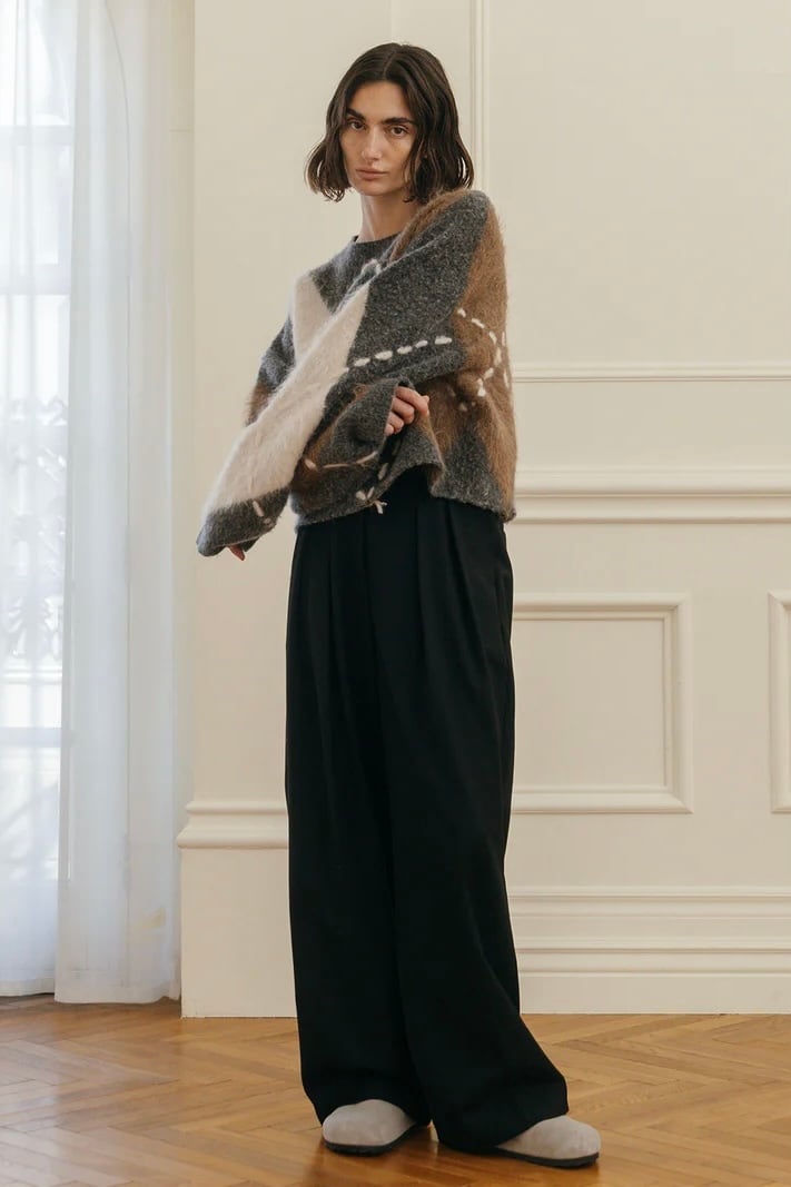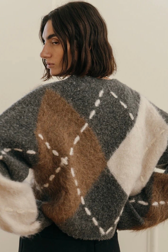 だからこそ、伝統の中に“今”の空気を纏わせた、素材の膨らみや陰影、糸の異なる艶感が交差することで、立体的でモダンなアーガイルに再構築。