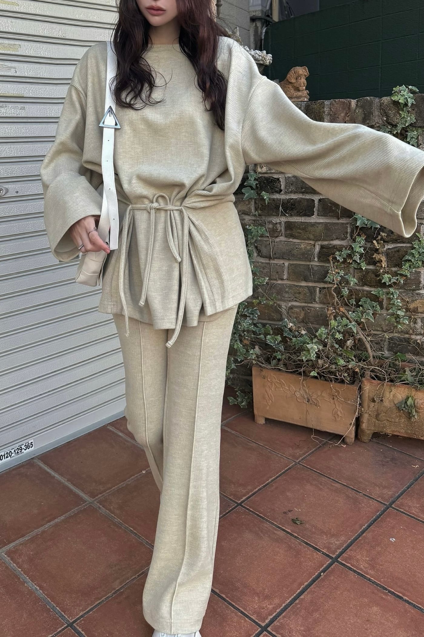 ・side ribbon tuck bell sleeve rib topsとセットでご着用いただけます