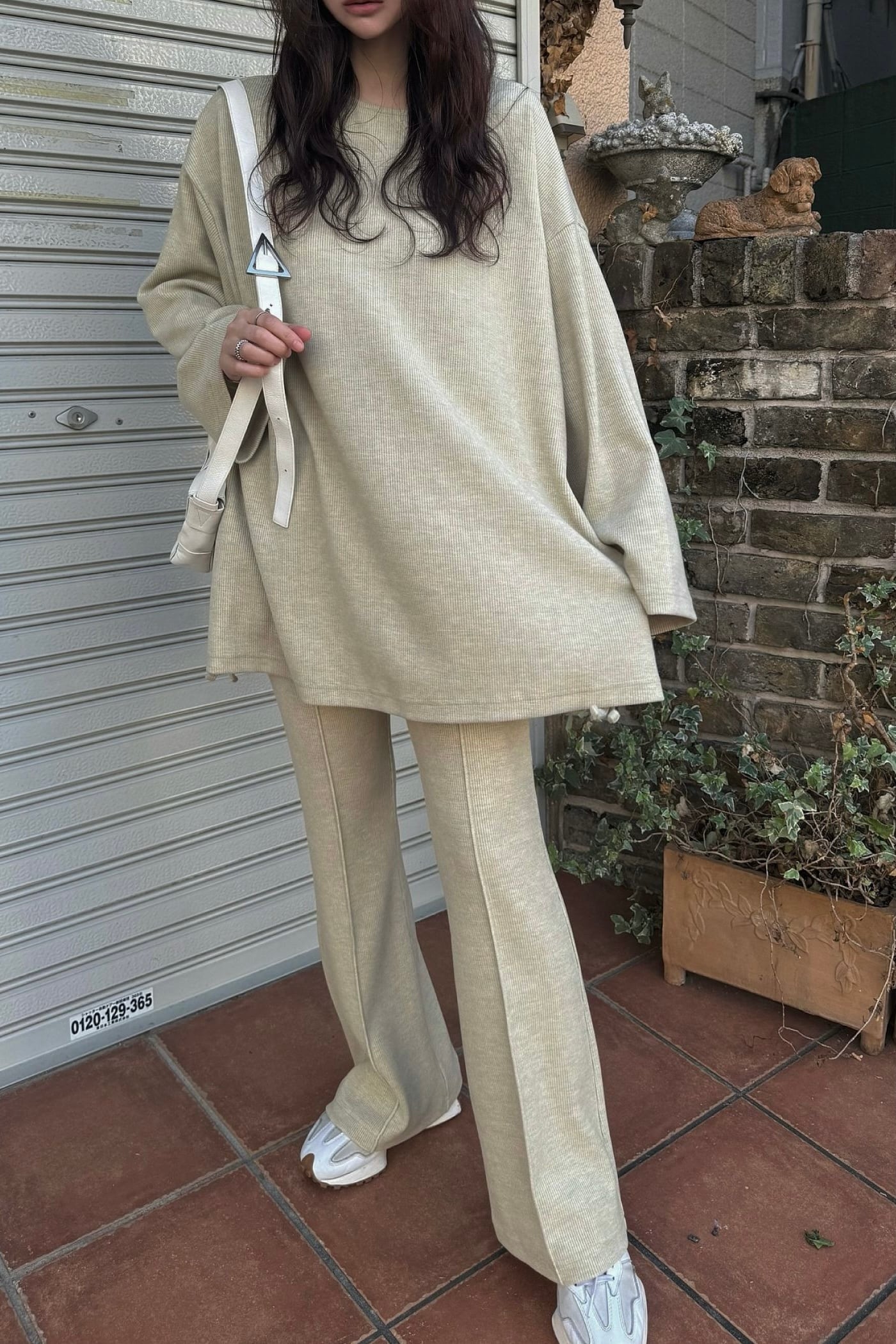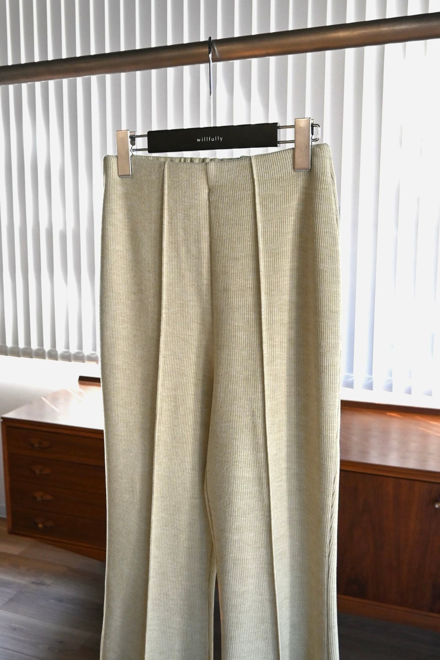 WILLFULLY center seam rib flare PT センターシームリブフレアパンツ Lime