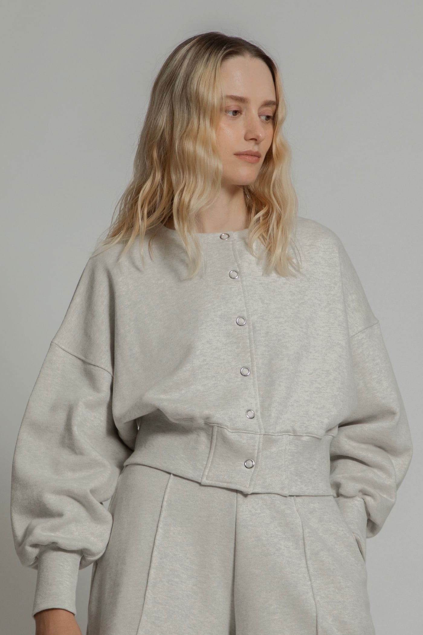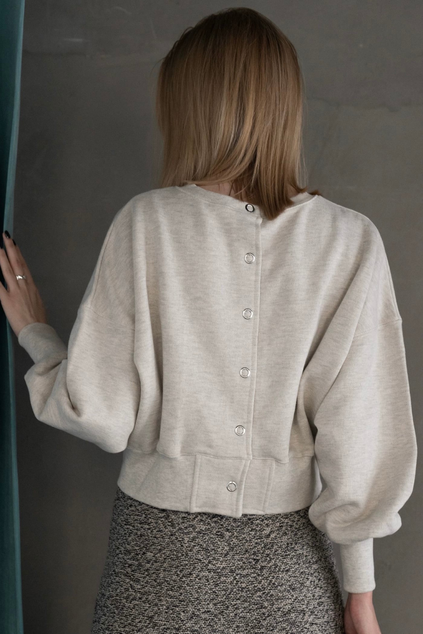 ・ショート丈のスウェットにぽふっとした袖がキャッチー