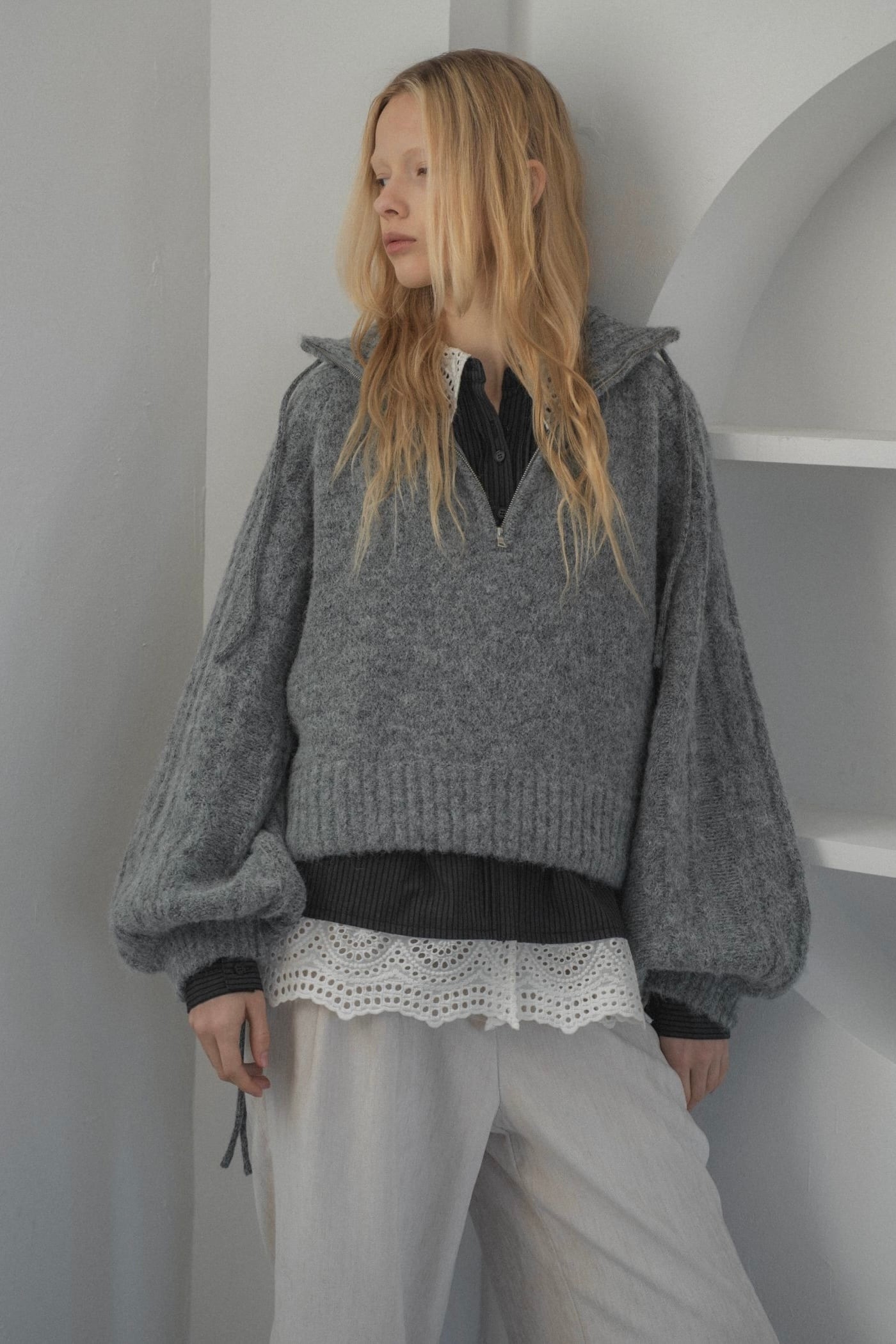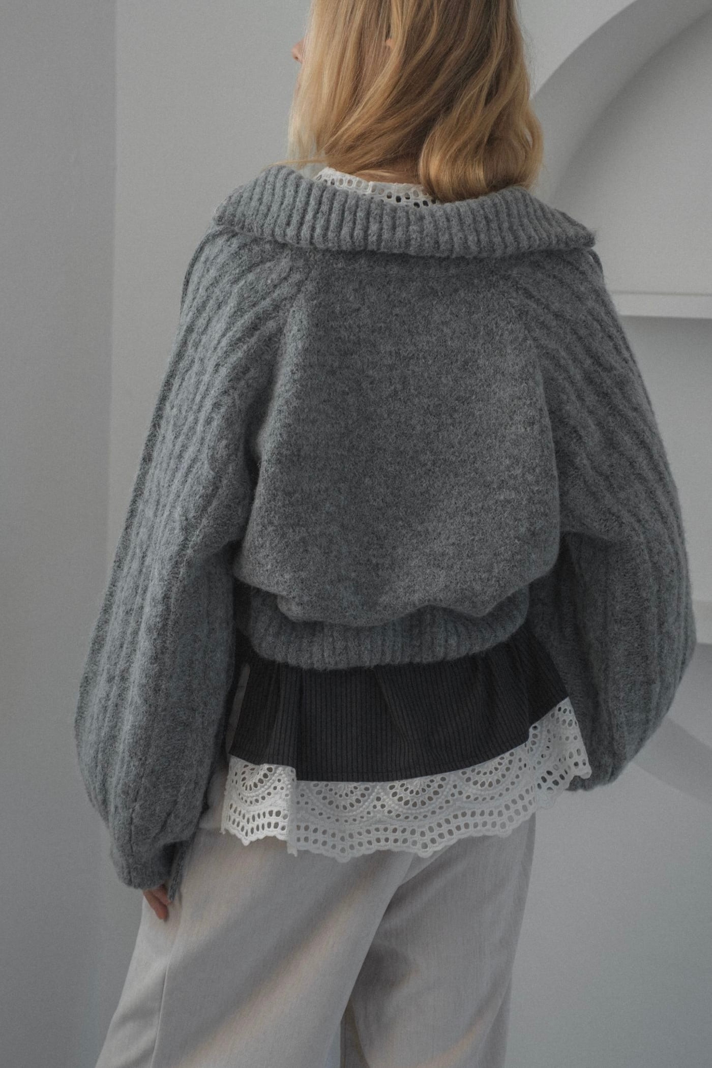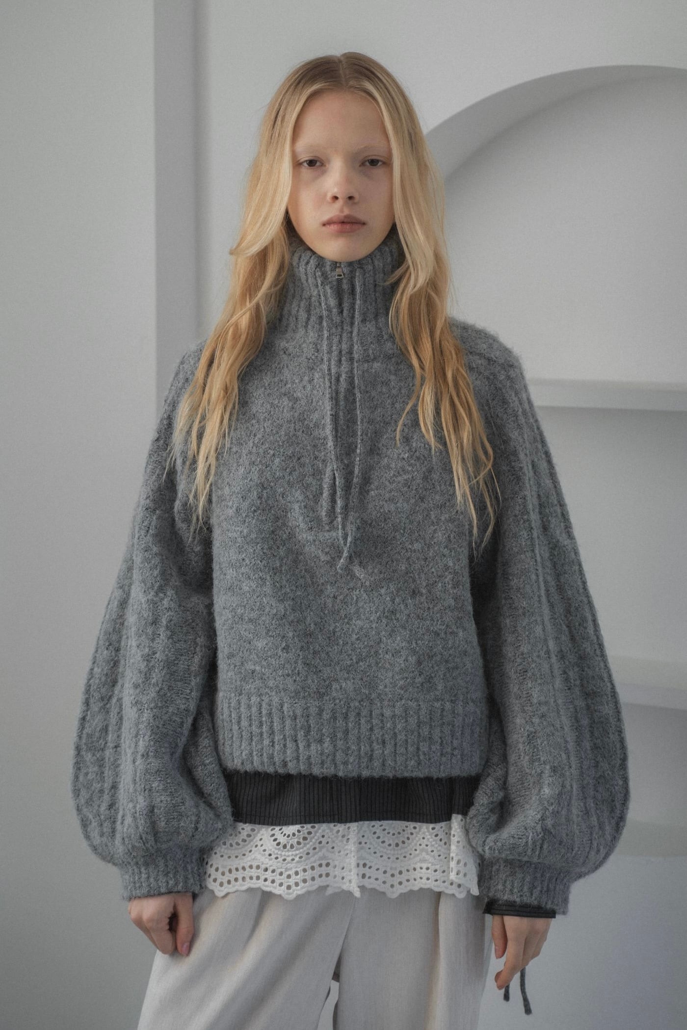 WILLFULLY half zip cropped knit pullover ハーフジップクロップドニットプルオーバー Gray