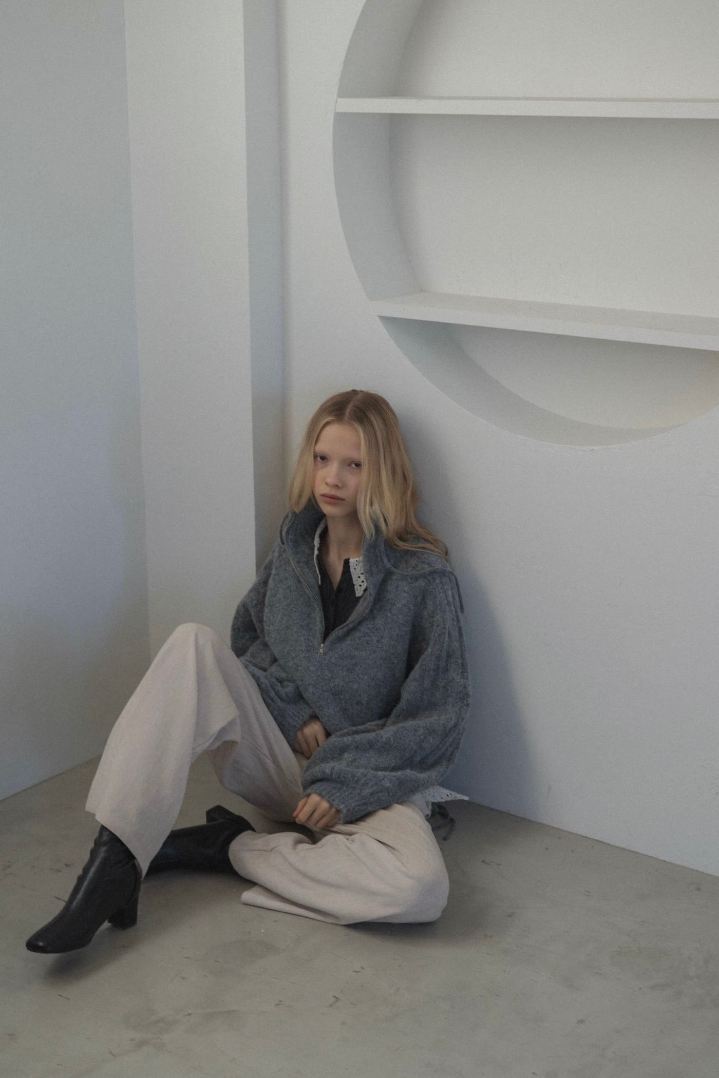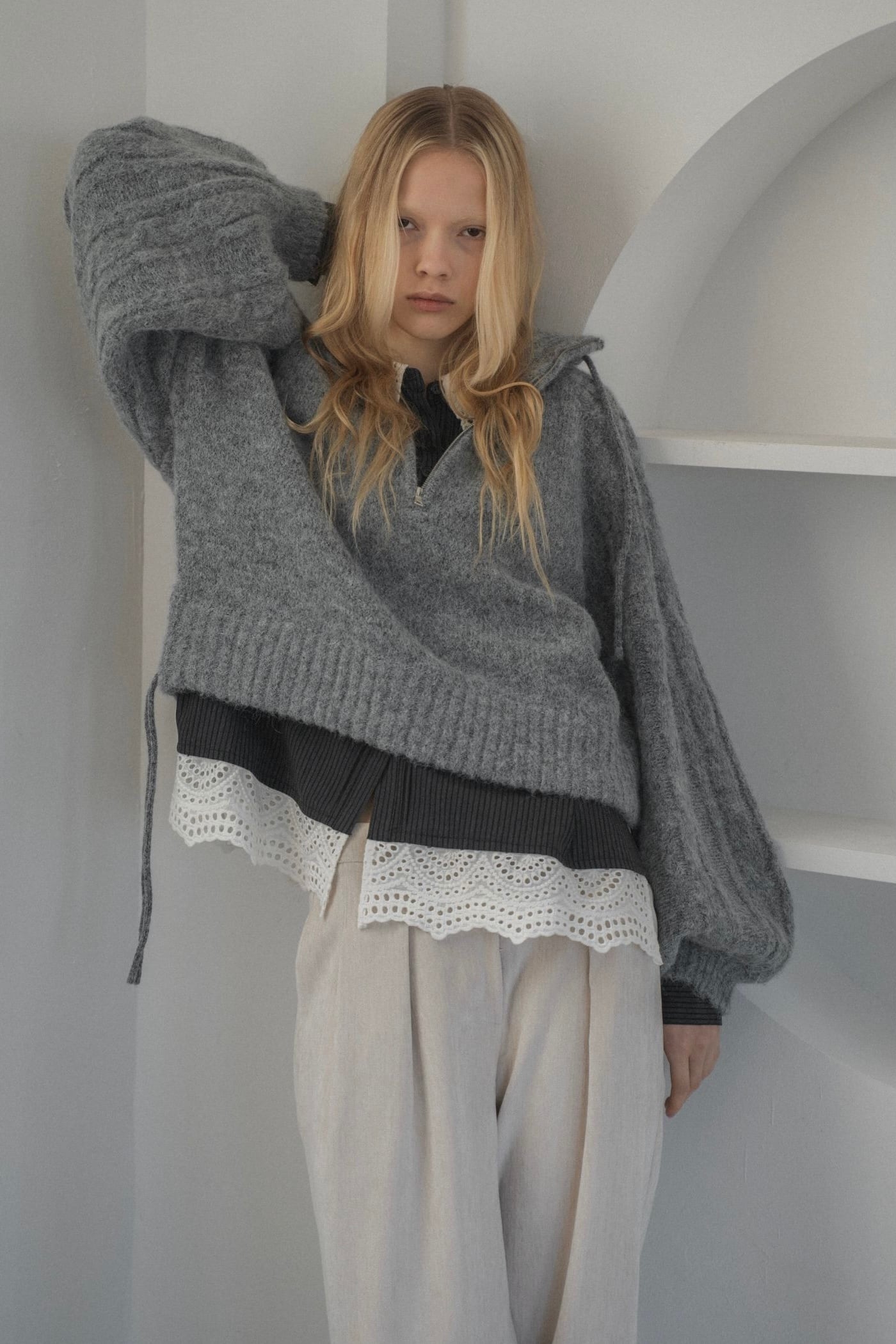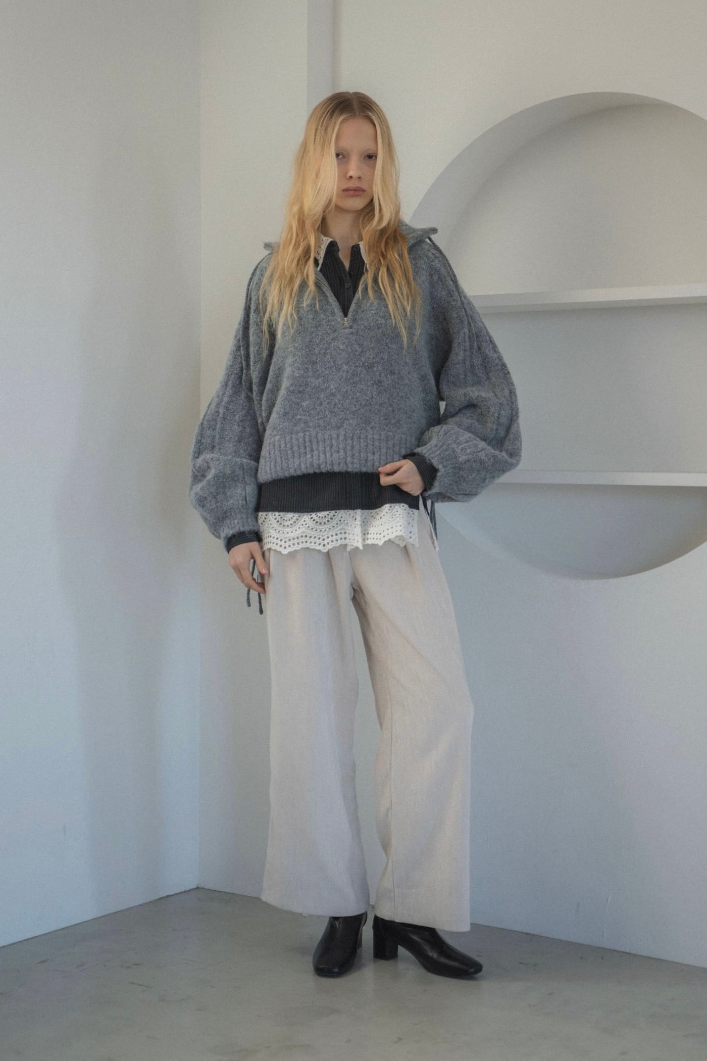 WILLFULLY half zip cropped knit pullover ハーフジップクロップドニットプルオーバー Gray