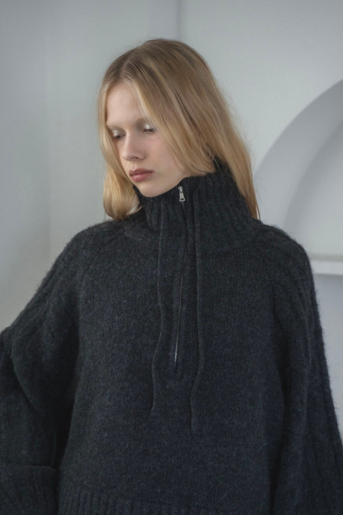 ・ウォームタッチなメランジ糸を使用したハーフジップニット