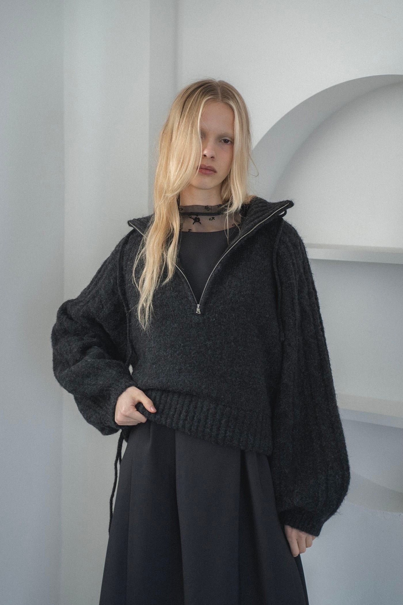 WILLFULLY half zip cropped knit pullover ハーフジップクロップドニットプルオーバー Black