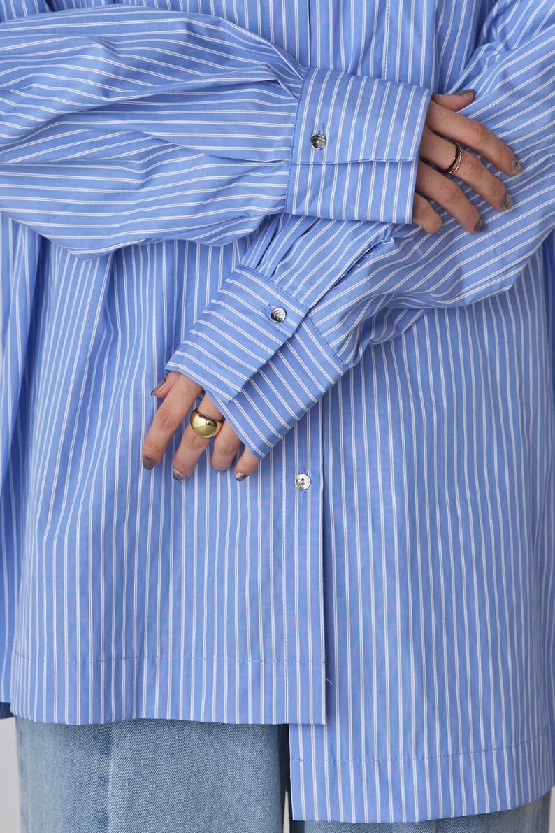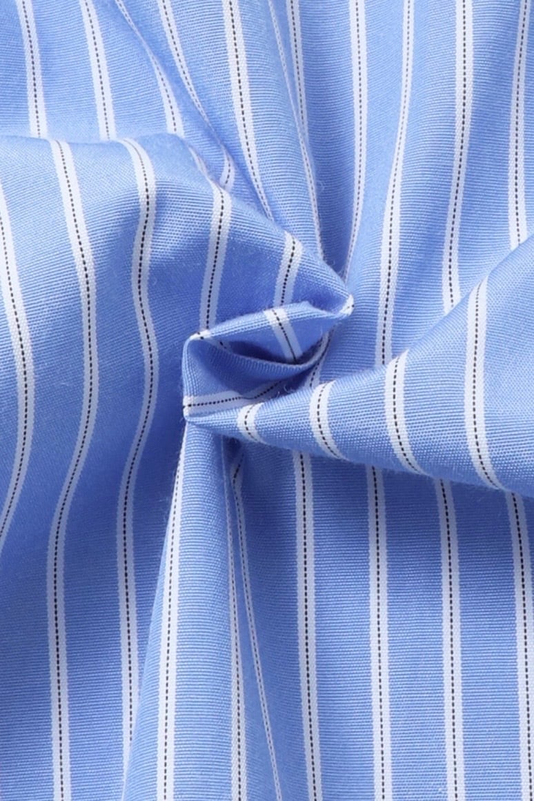 ストライプは、ポリエステル混素材を使用し、カジュアルすぎないきれいめな印象になる素材を使用しています。