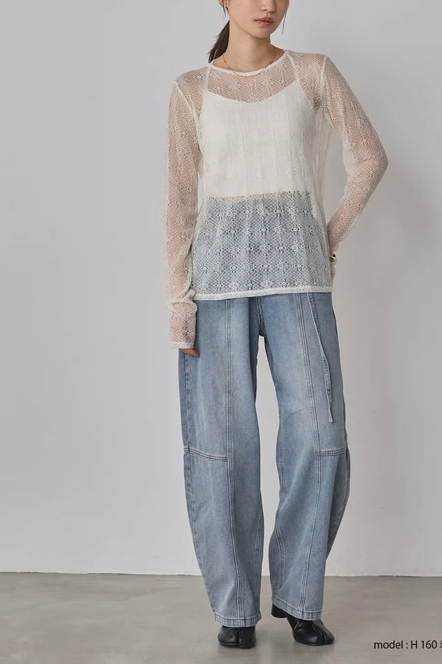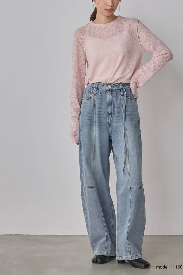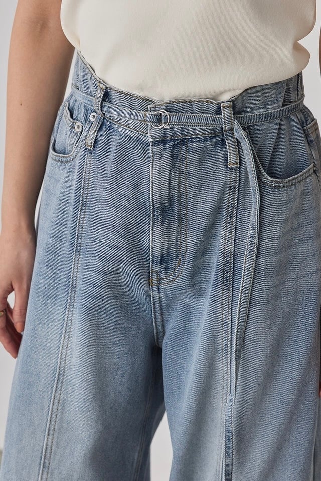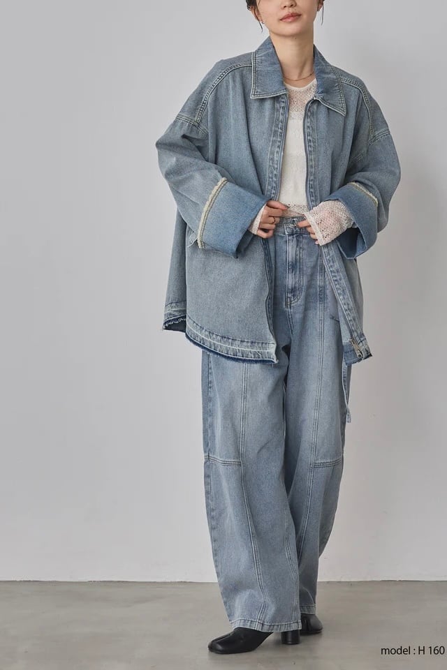 トレンド感あるアイテムですが、通年使えるデニムアイテムなので、ベーシックなシルエットのパンツとは違ったスタイリングが楽しめるアイテムです。