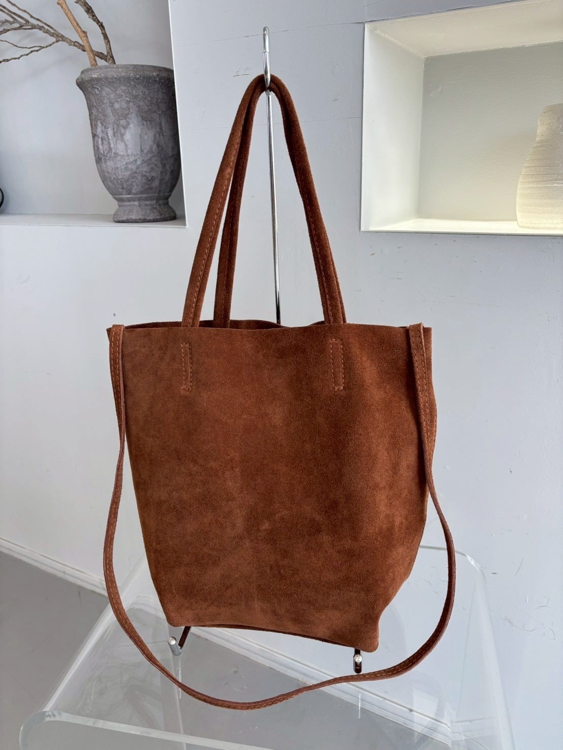 無駄のないシンプルなシルエットでデイリーユースしやすいデザイン。使い勝手の良いマチ付きで、底板を付けることで形が崩れにくいのも嬉しいポイント。内側はワンフロアのコンパートメントにオープンポケットが備えられています。ショルダーストラップも付属しているので、スタイリングや気分に合わせて2wayでお使いいただけます。
