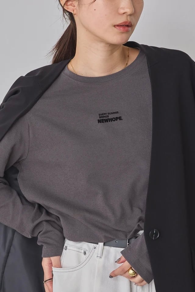 flocking print Tshirt フロッキープリントロングTシャツ Charcoal