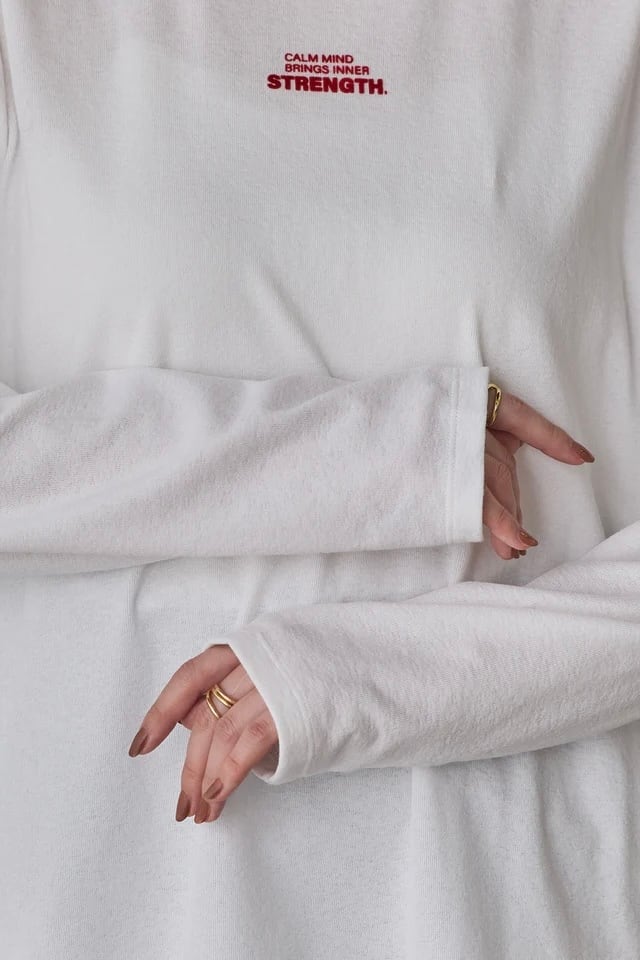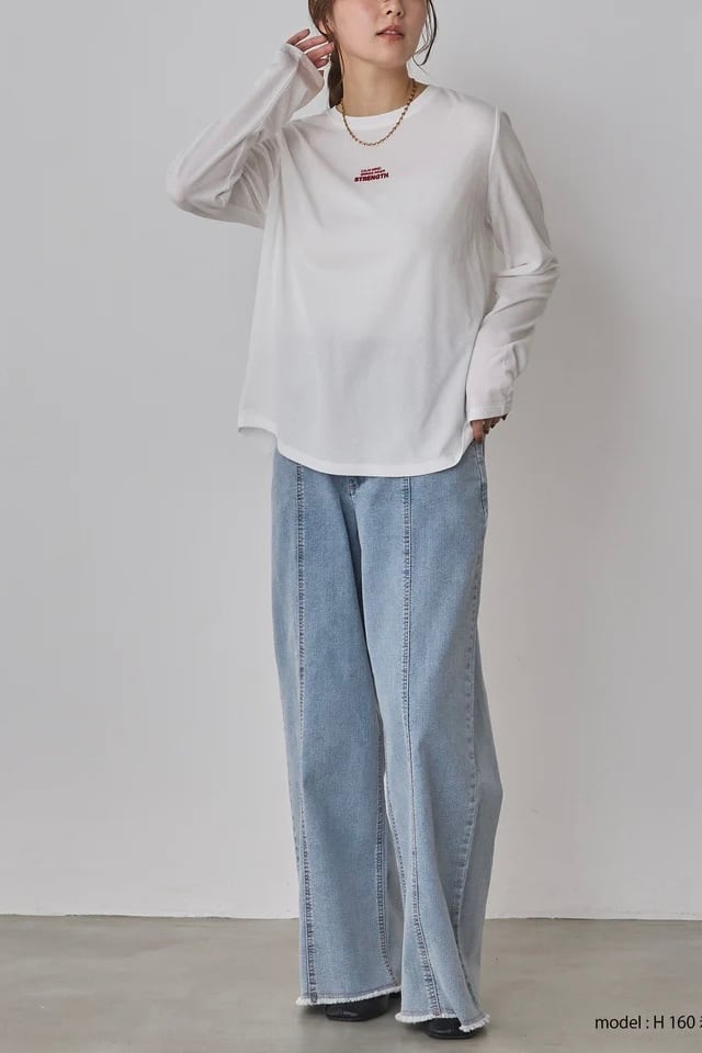 柔らかいラウンドのヘムラインで、レイヤードしたときに裾からさり気なく覗くように仕上げました。