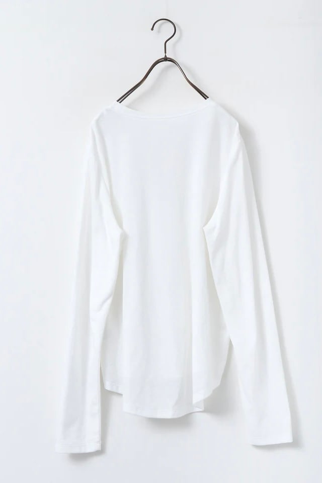 トレンドの深いVネックアイテムや、ヘンリーネックと合わせて着たいロンT。