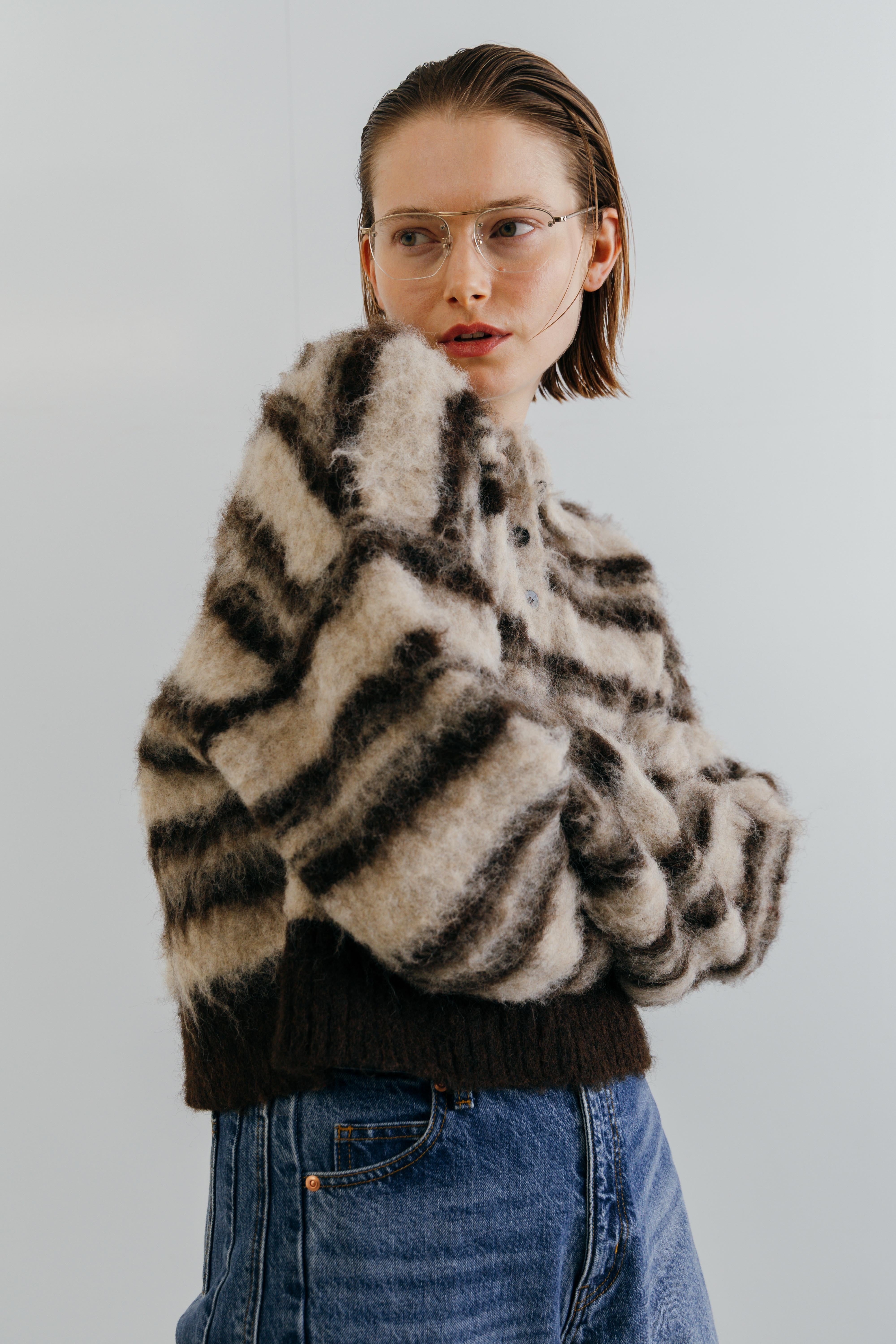 モヘア特有の奥行きのある表情と柔らかな毛足が、