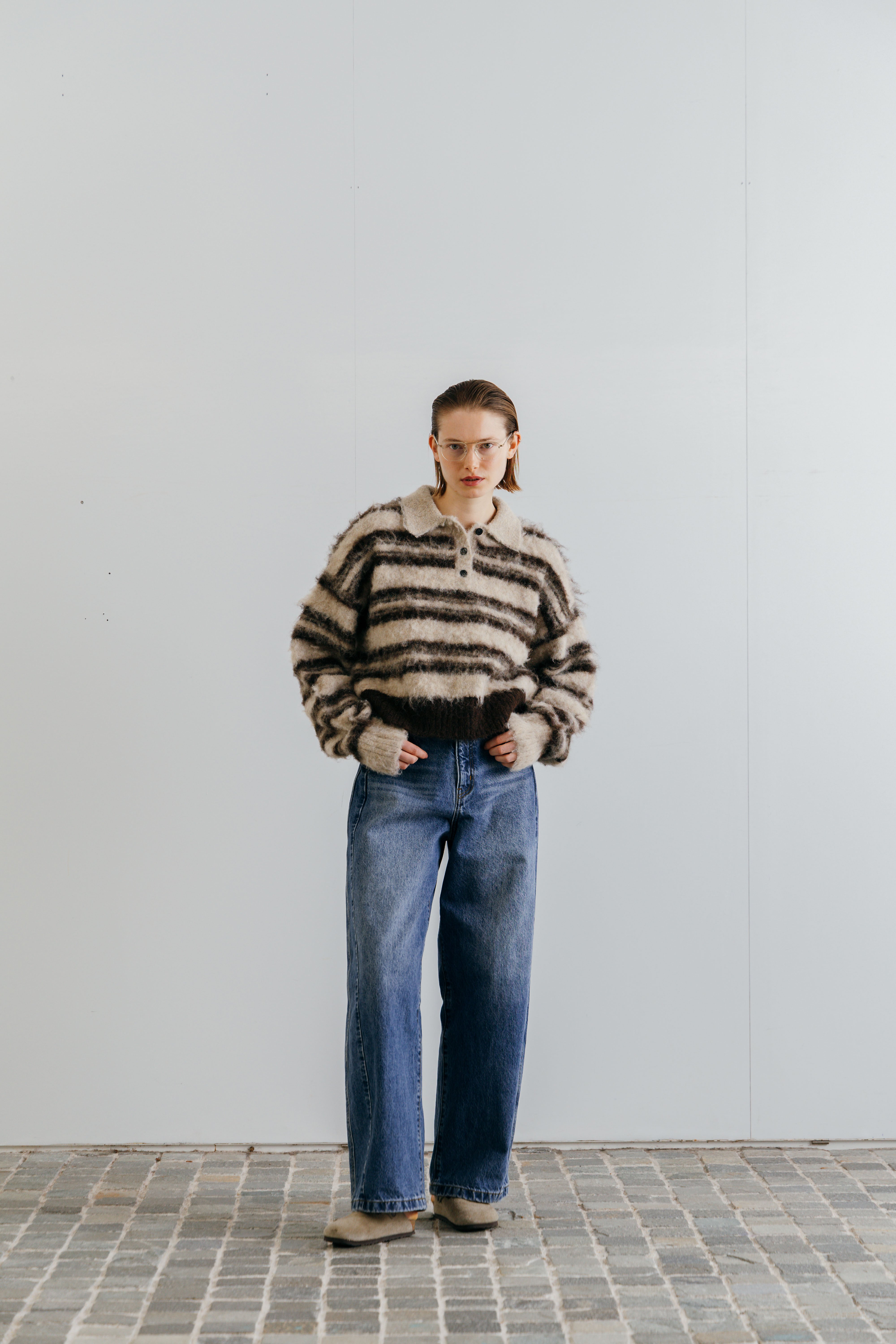 CREDONA MOHAIR BORDER KNIT モヘアボーダーニット Beige