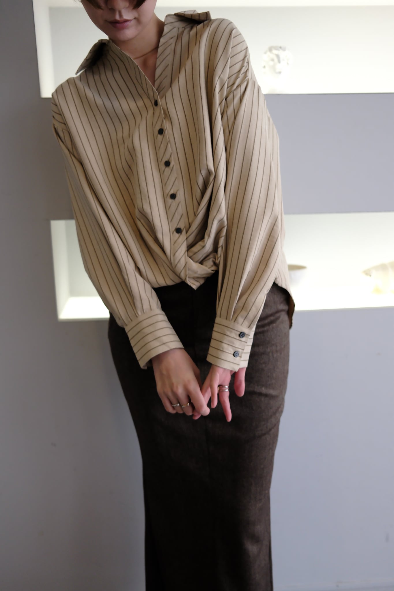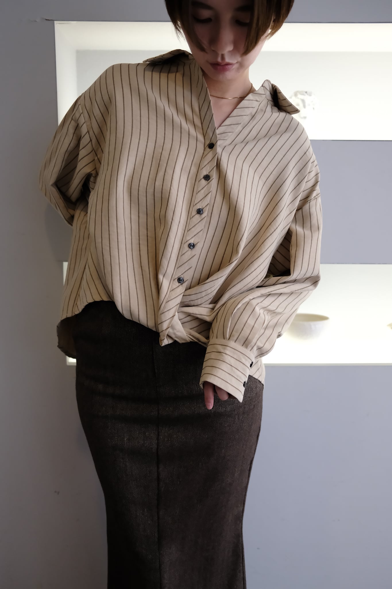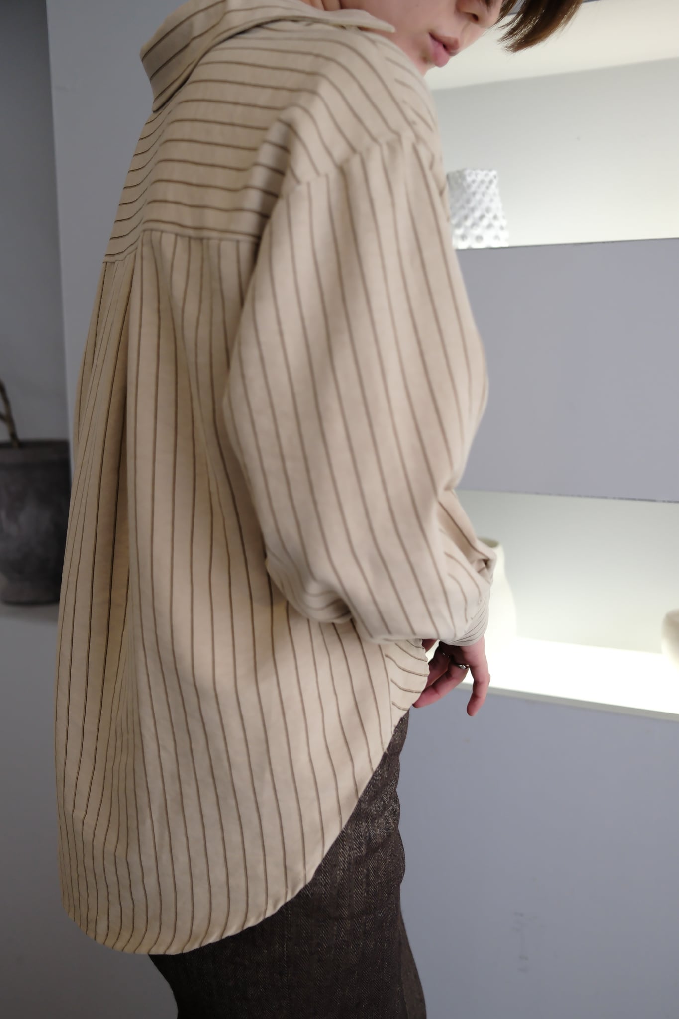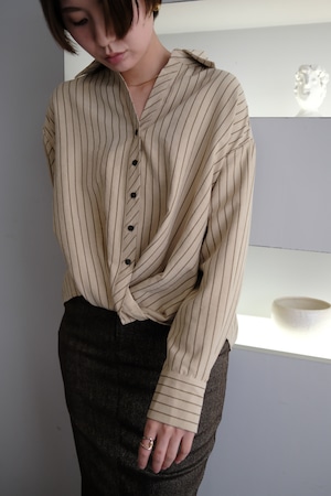 Peach Skin Stripe Waist Cross Shirts ピーチスキンストライプウエストクロスシャツ Beige