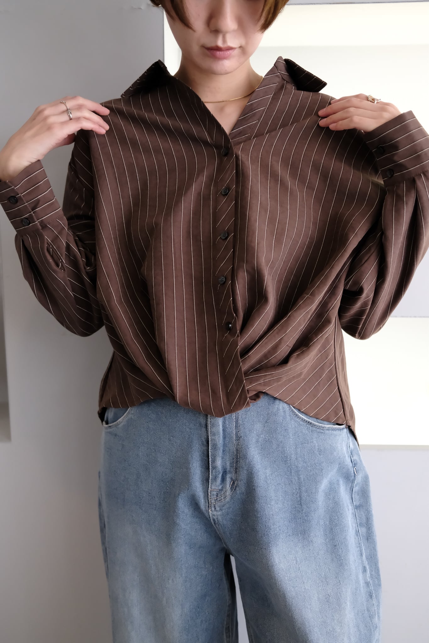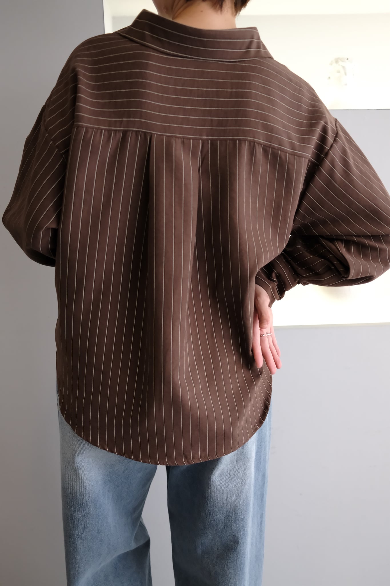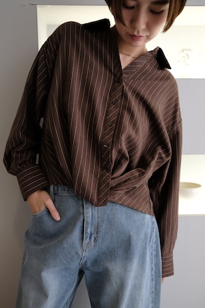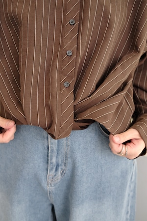 Peach Skin Stripe Waist Cross Shirts ピーチスキンストライプウエストクロスシャツ Brown
