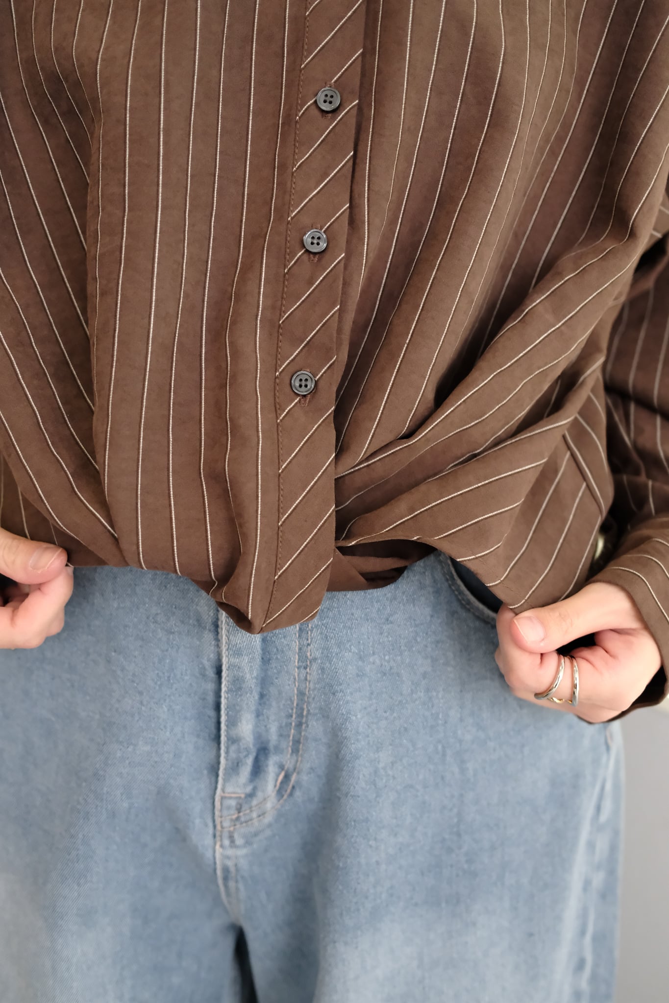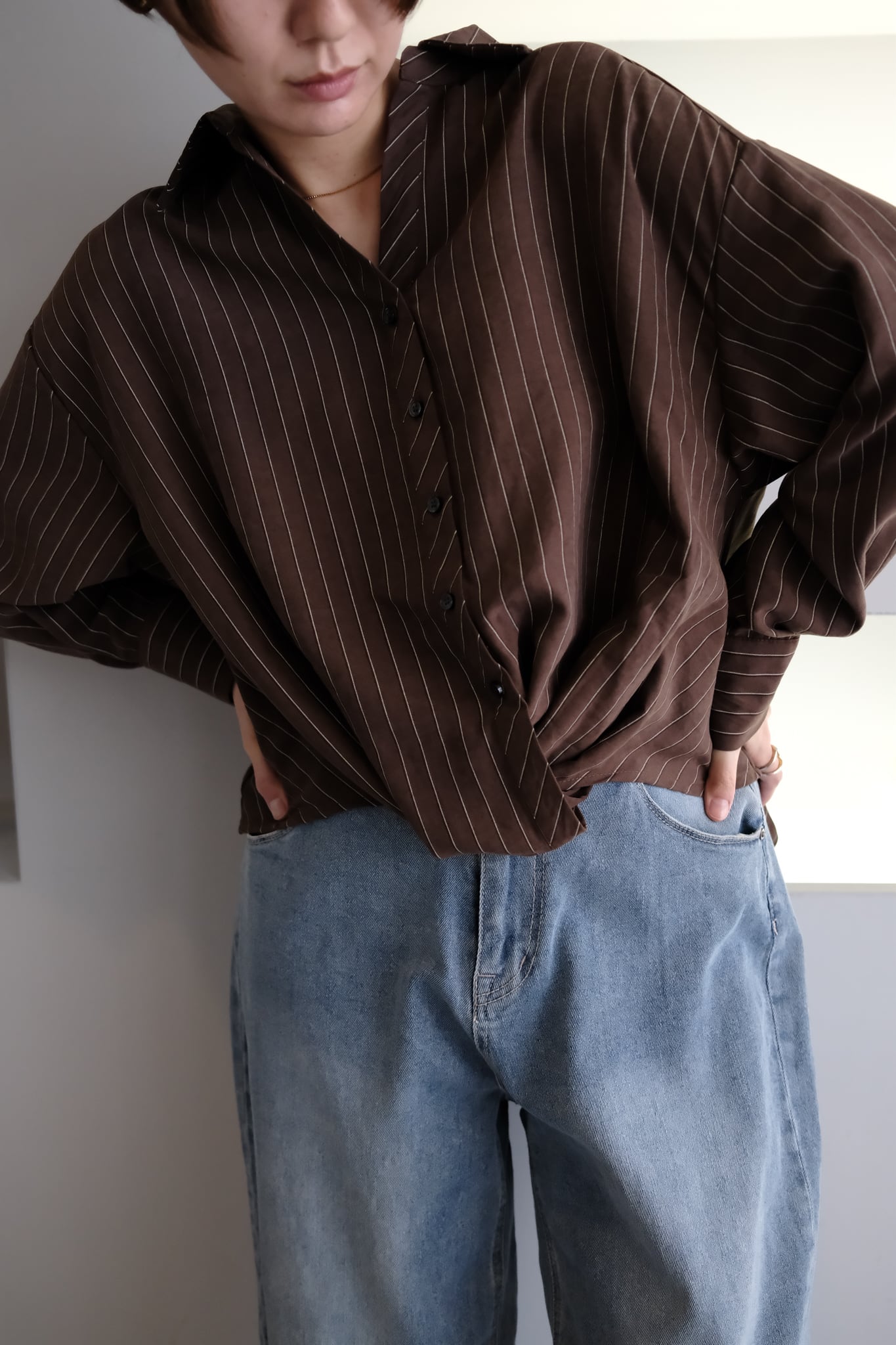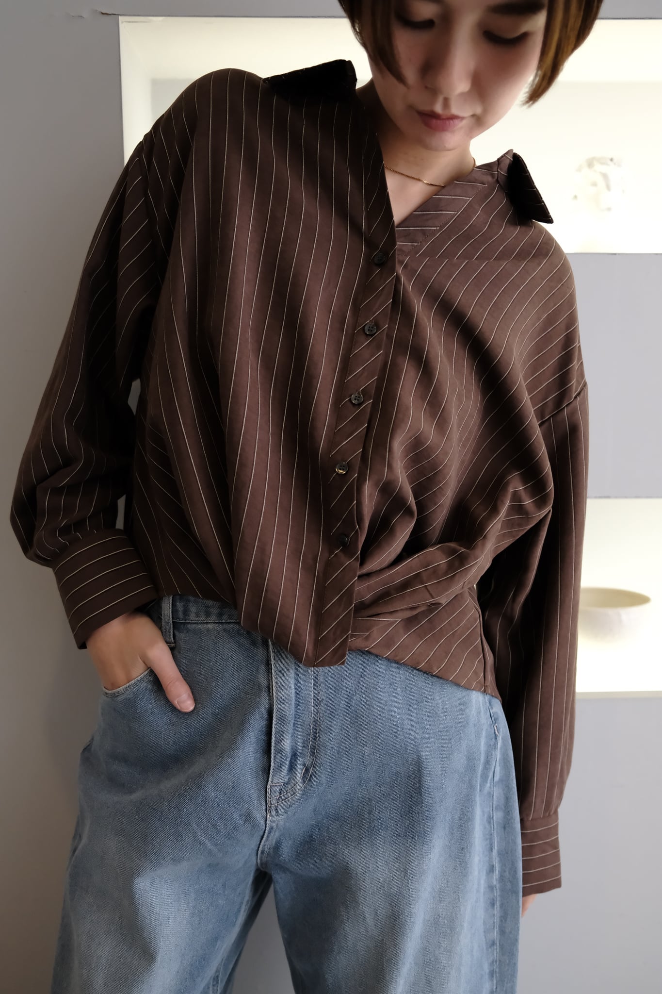 Peach Skin Stripe Waist Cross Shirts ピーチスキンストライプウエストクロスシャツ Brown