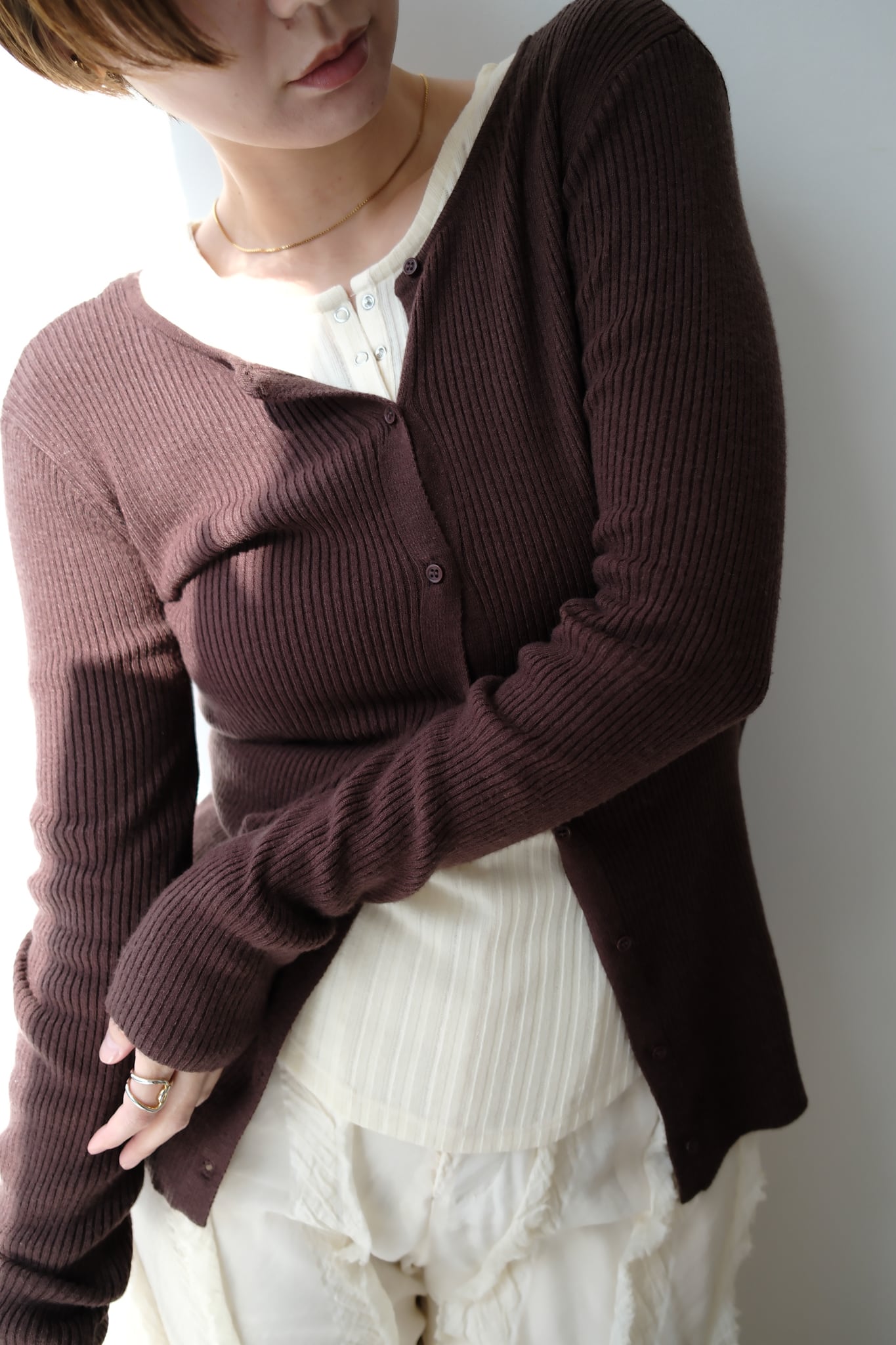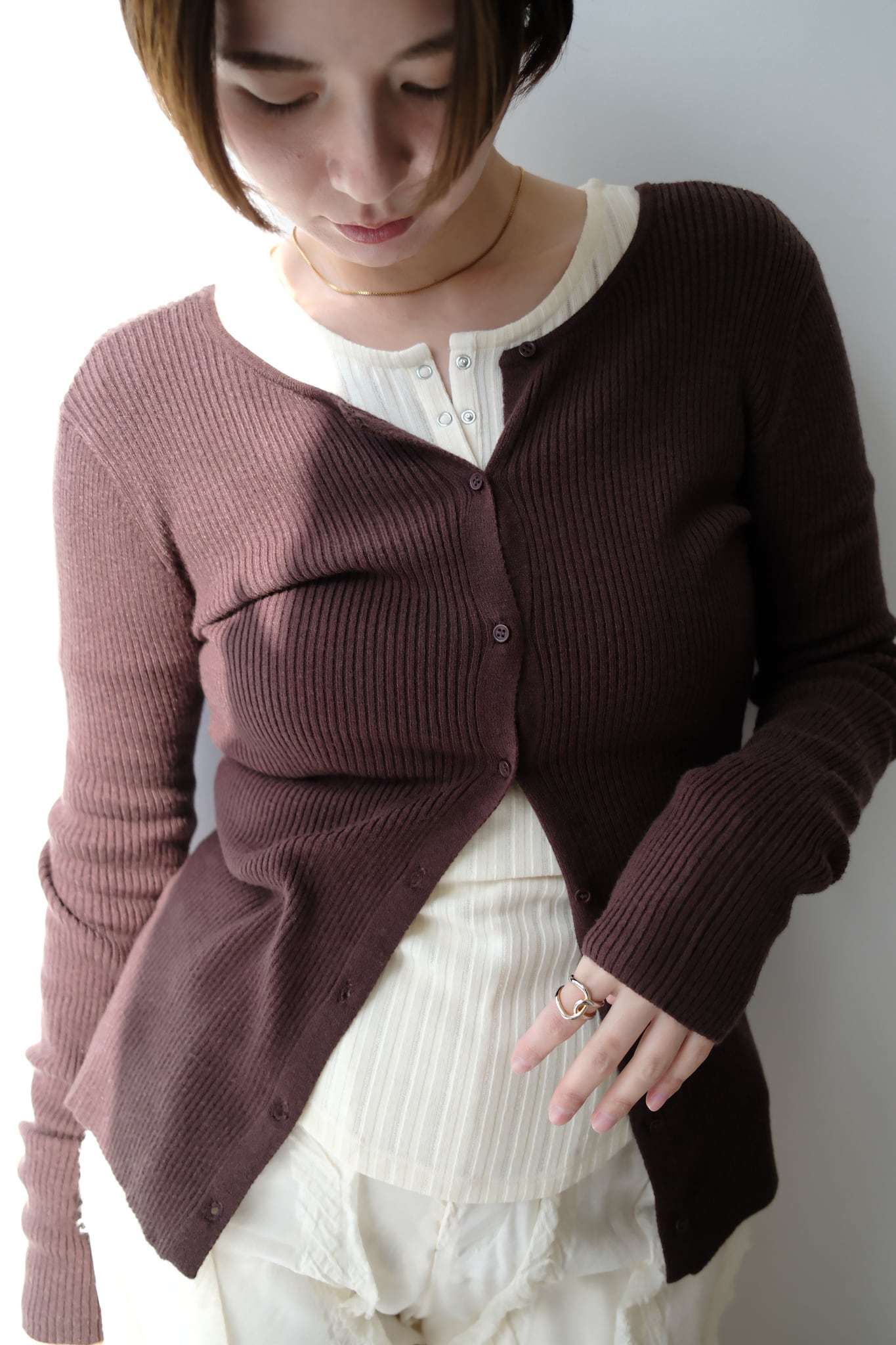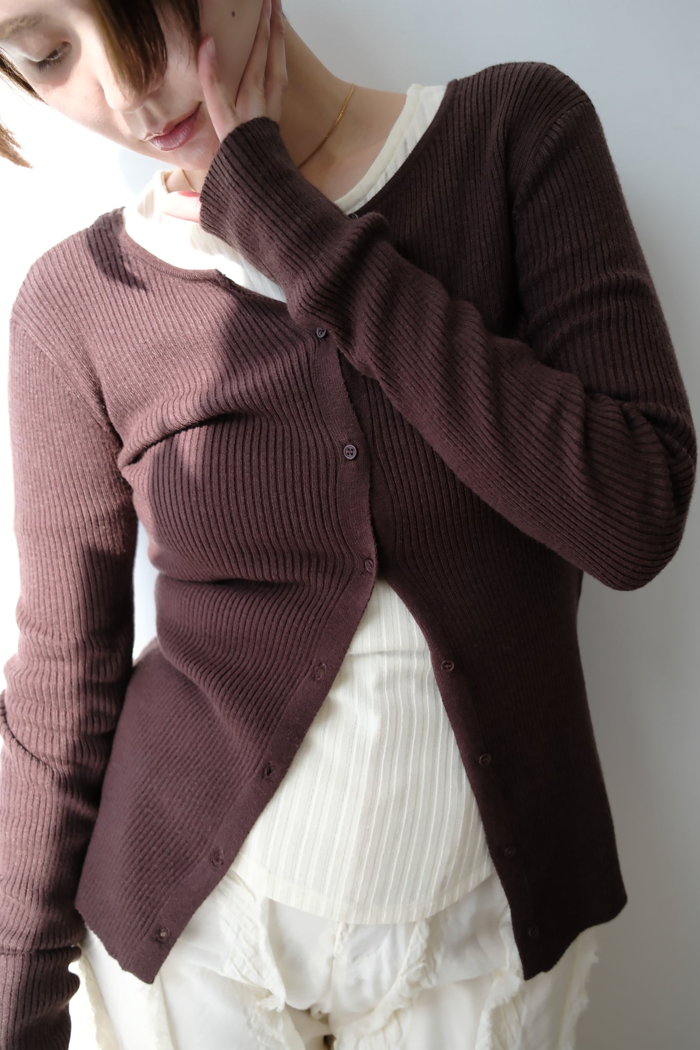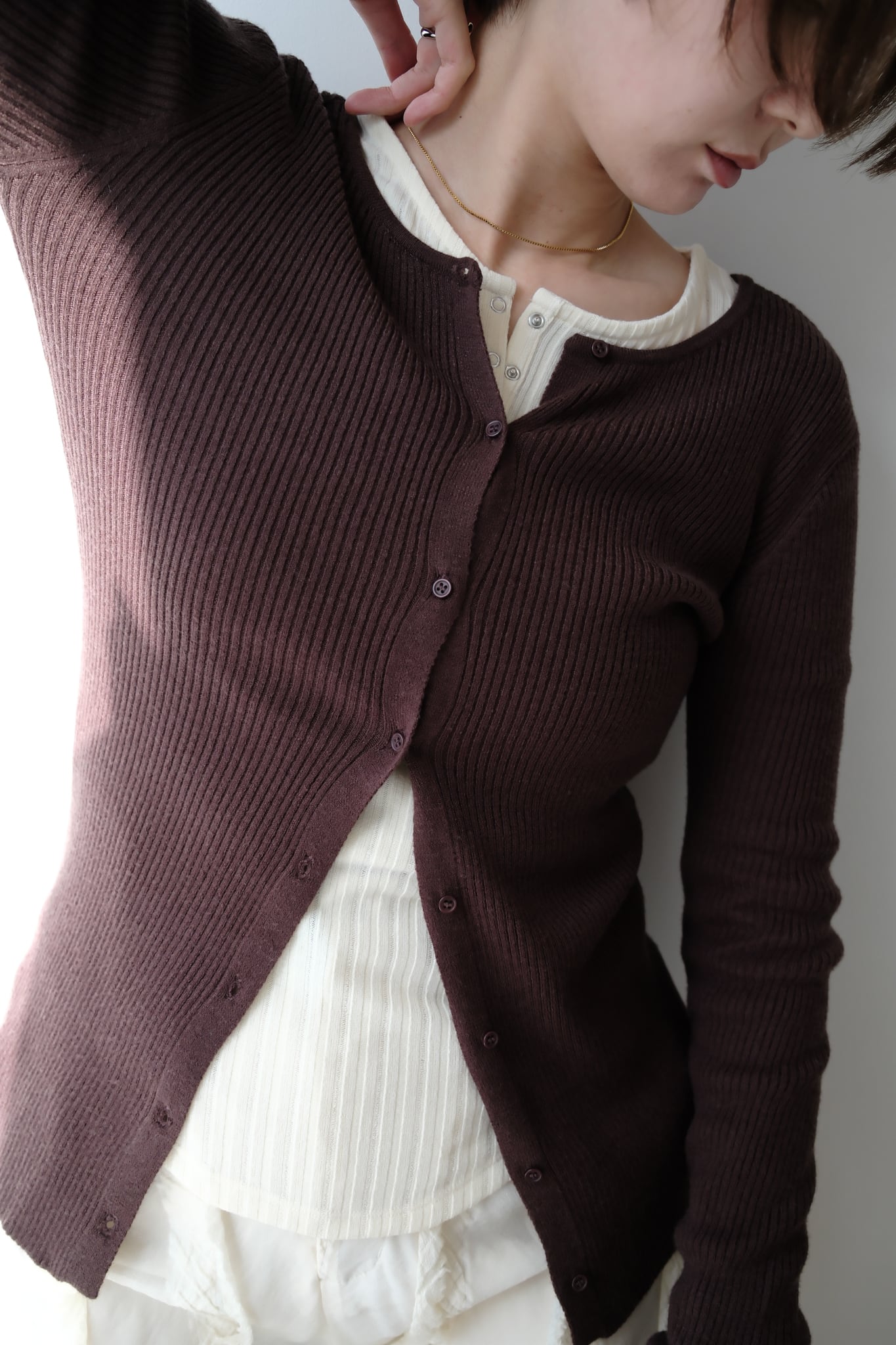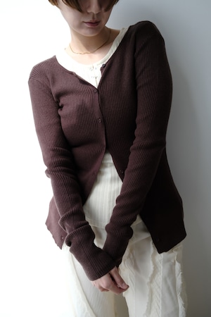 2WAY Rib Crew Neck Cardigan 前後2WAYリブ編みクルーネックカーディガン Brown