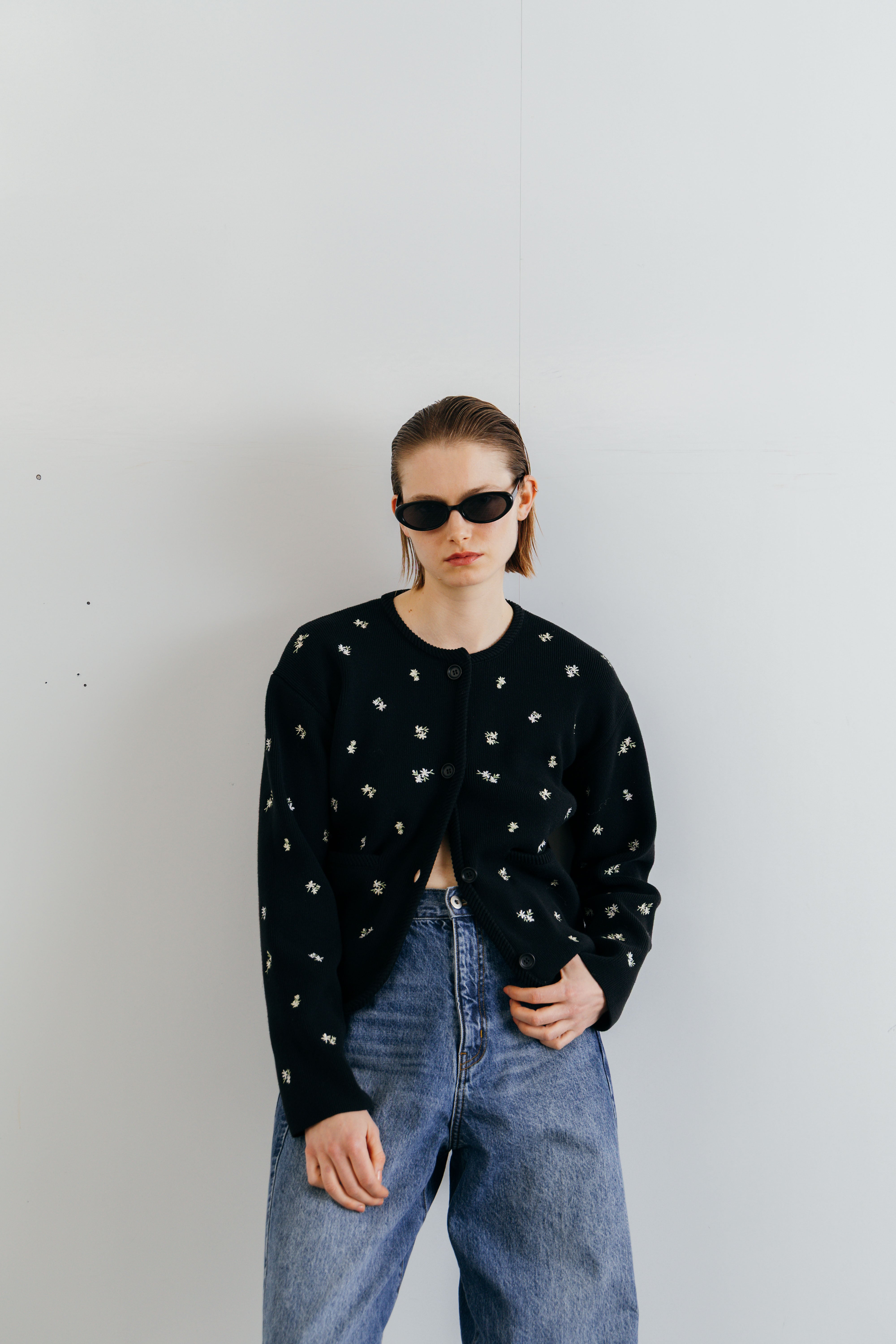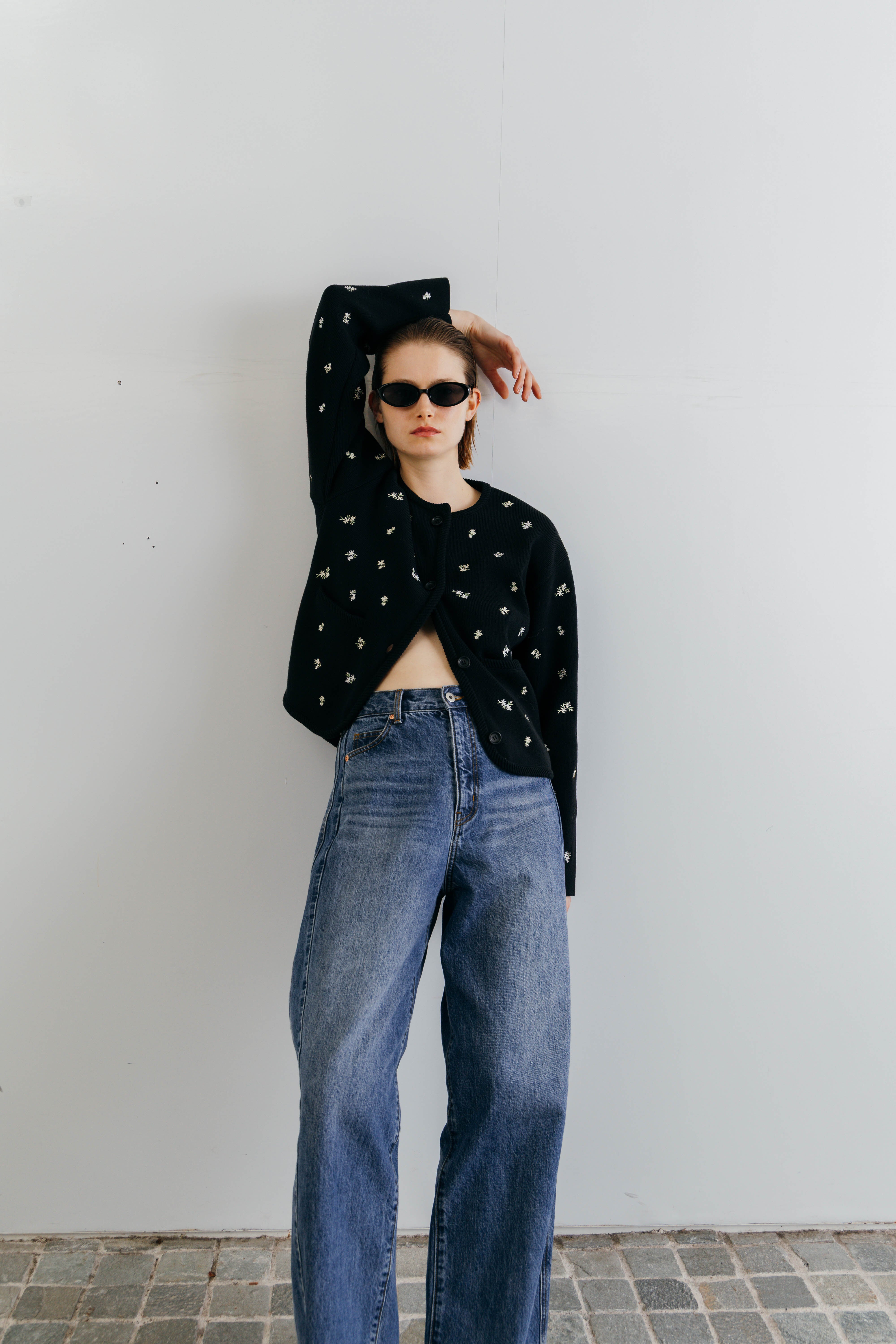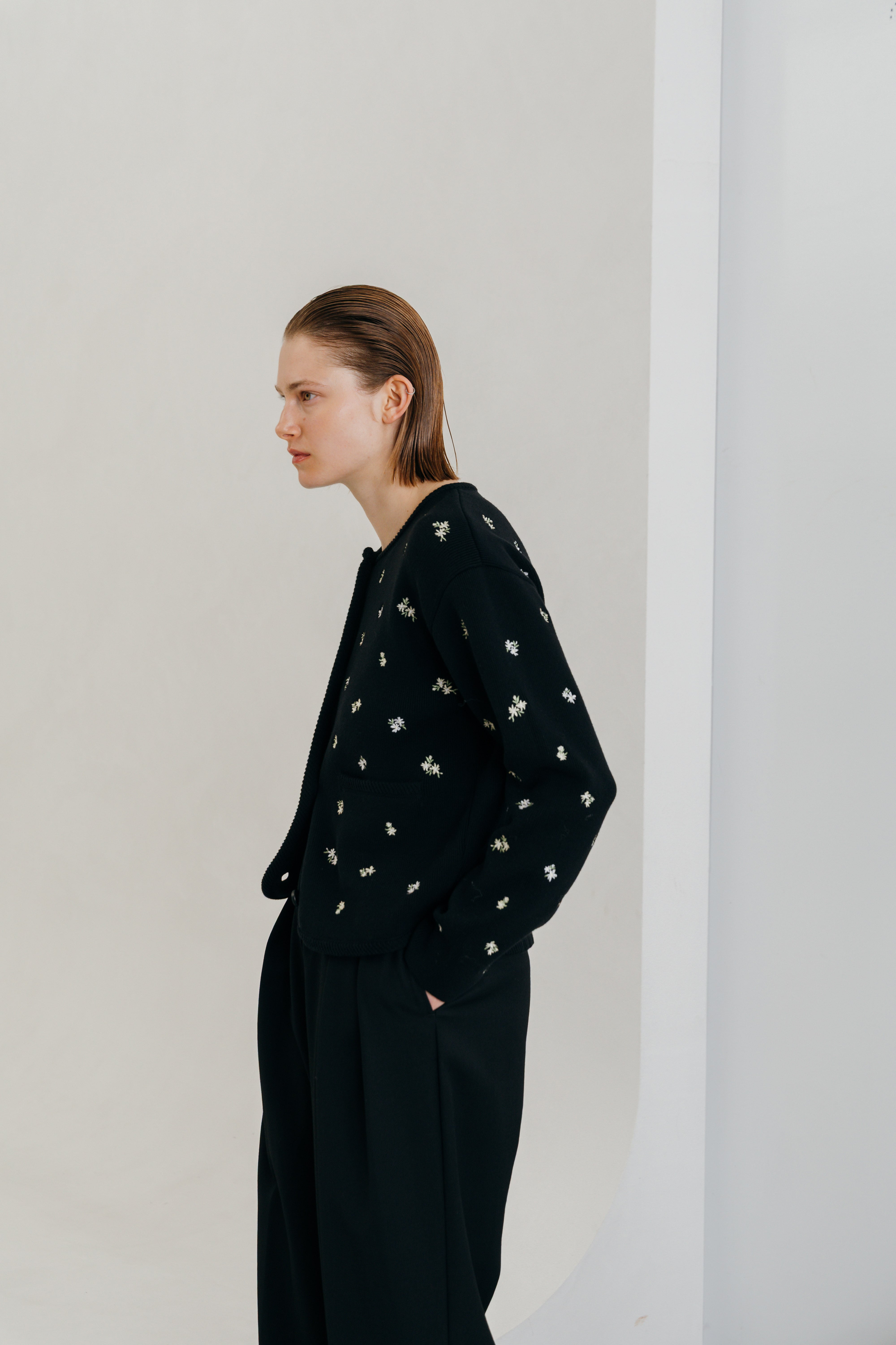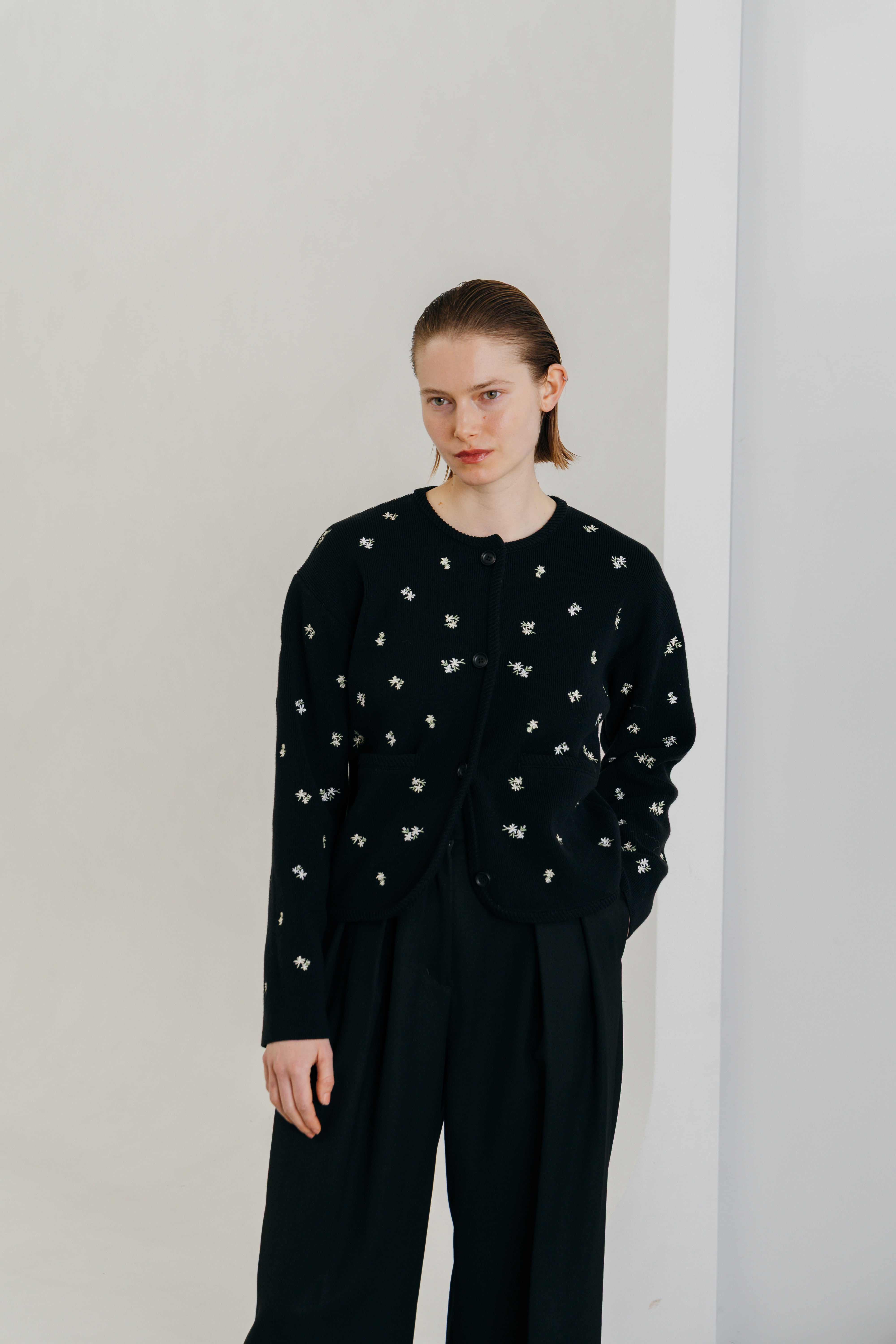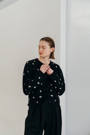 CREDONA FLOWER EMBROIDERY CARDIGAN フラワーエンブロイダリーカーディガン BLACK