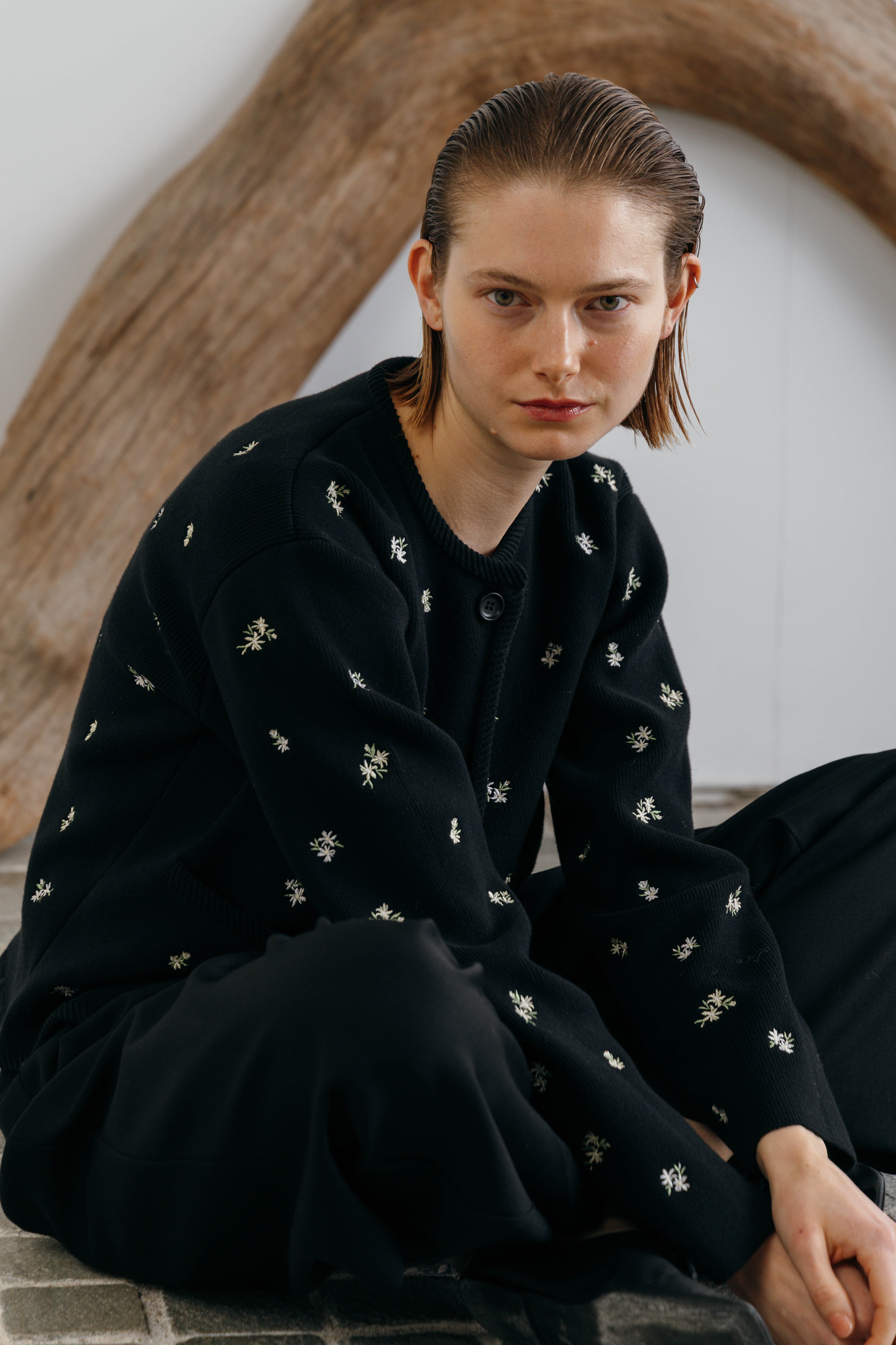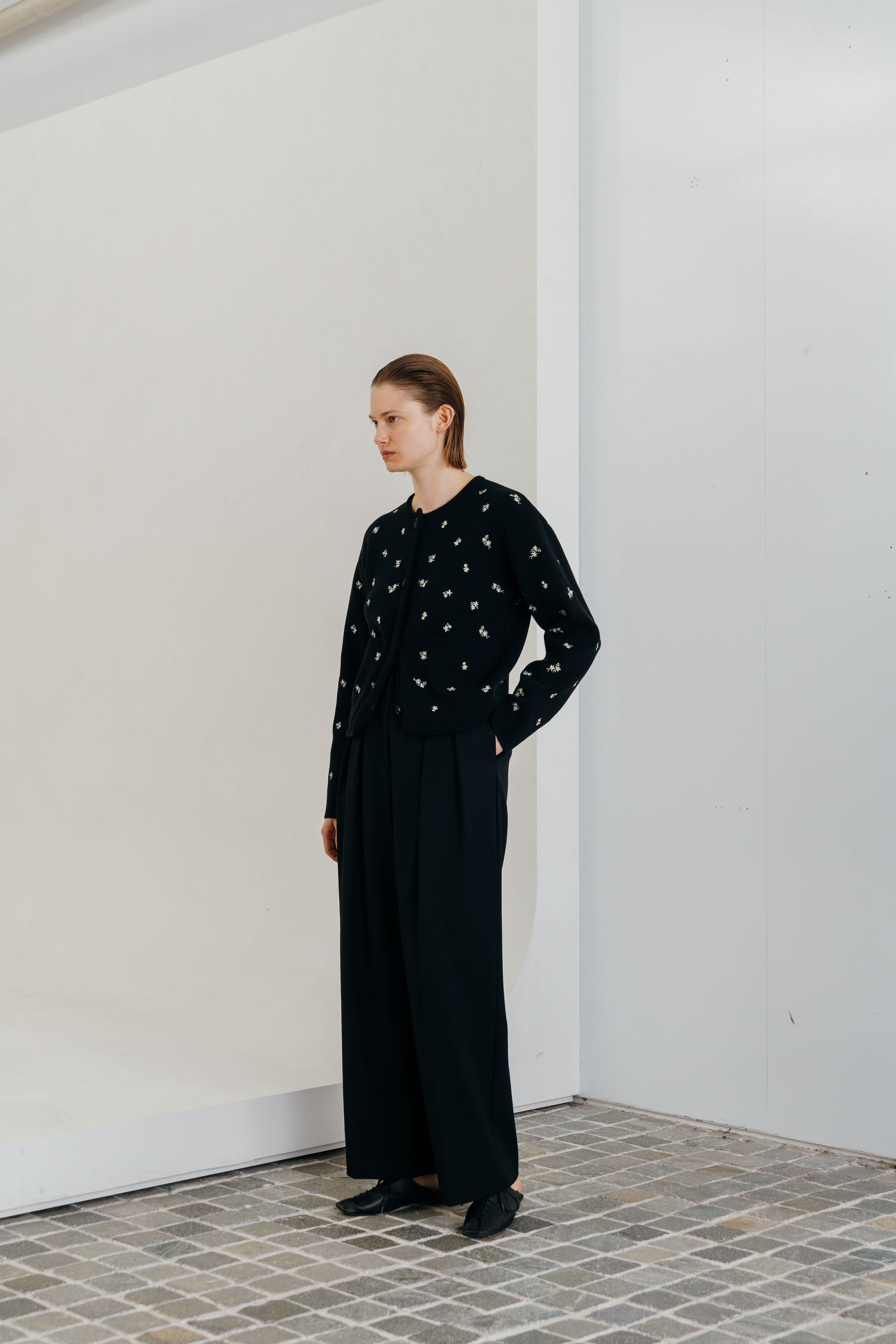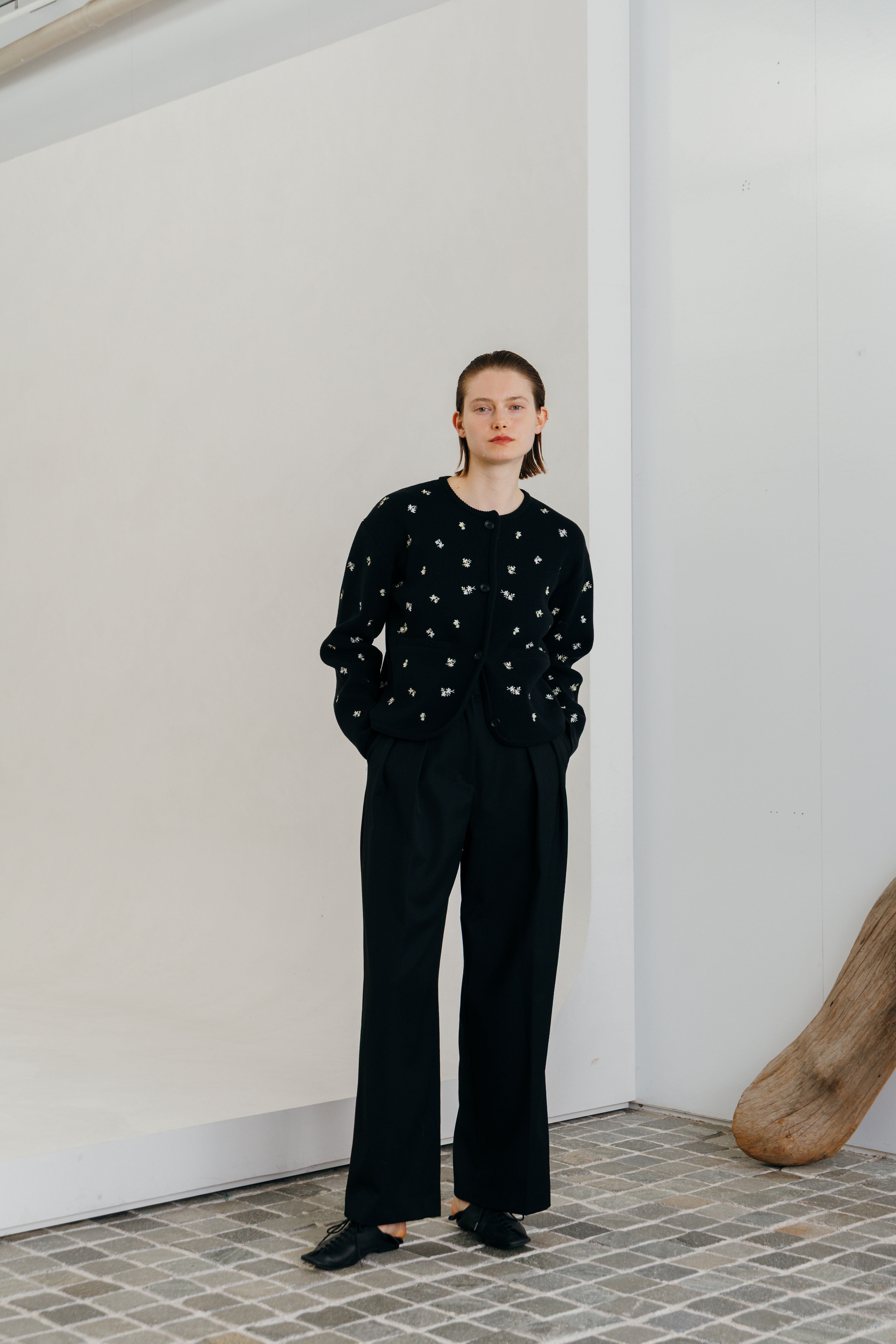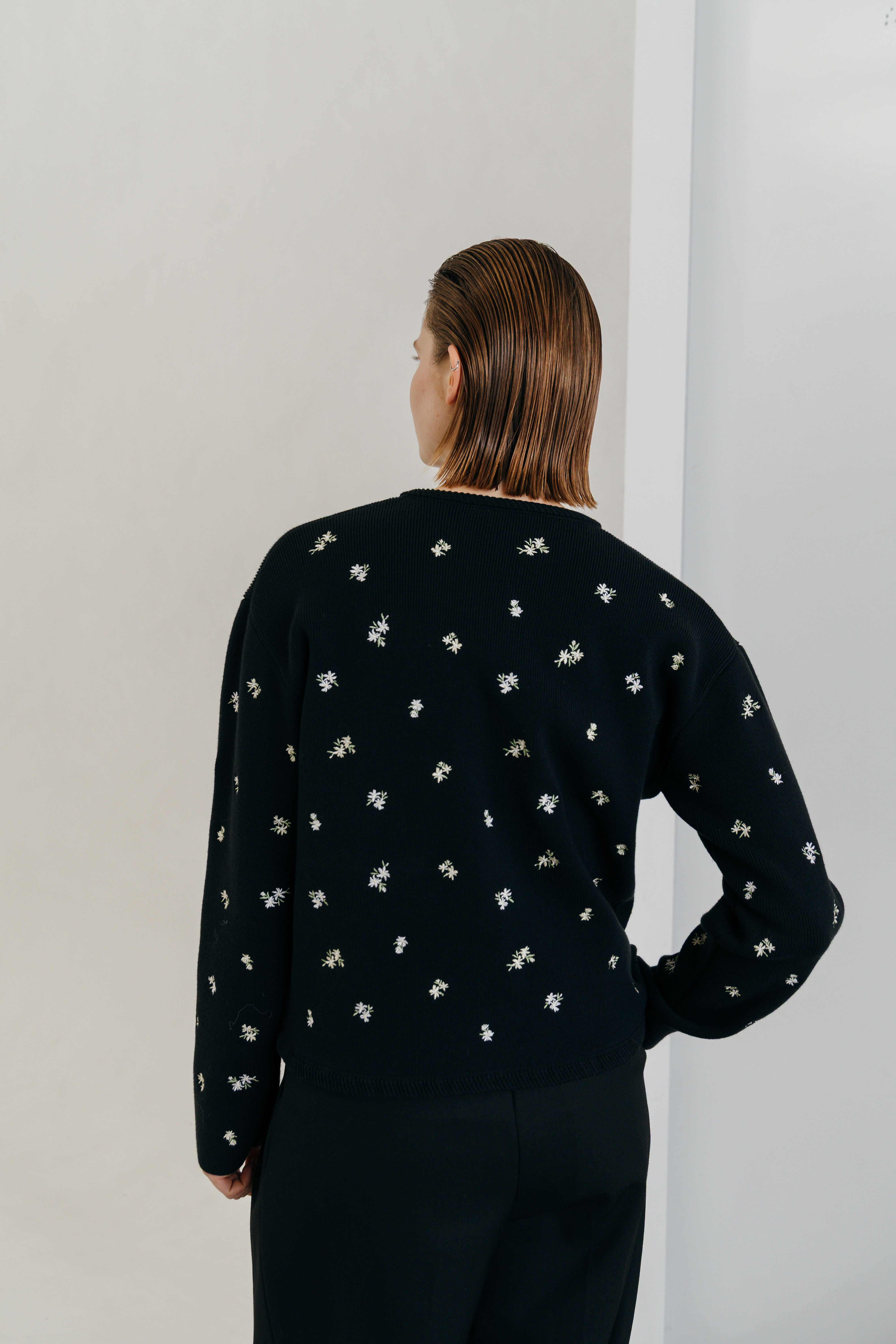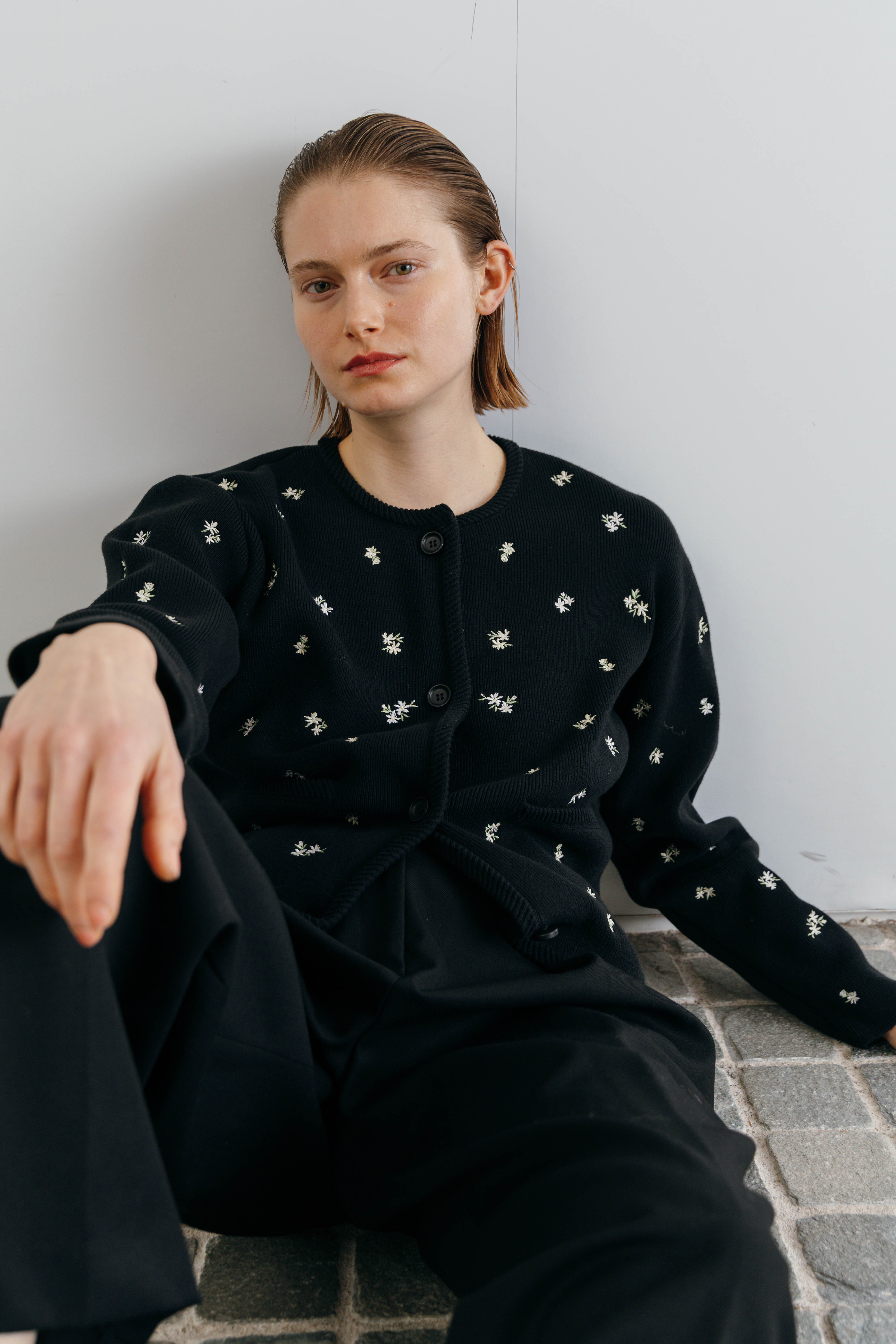 CREDONA FLOWER EMBROIDERY CARDIGAN フラワーエンブロイダリーカーディガン BLACK