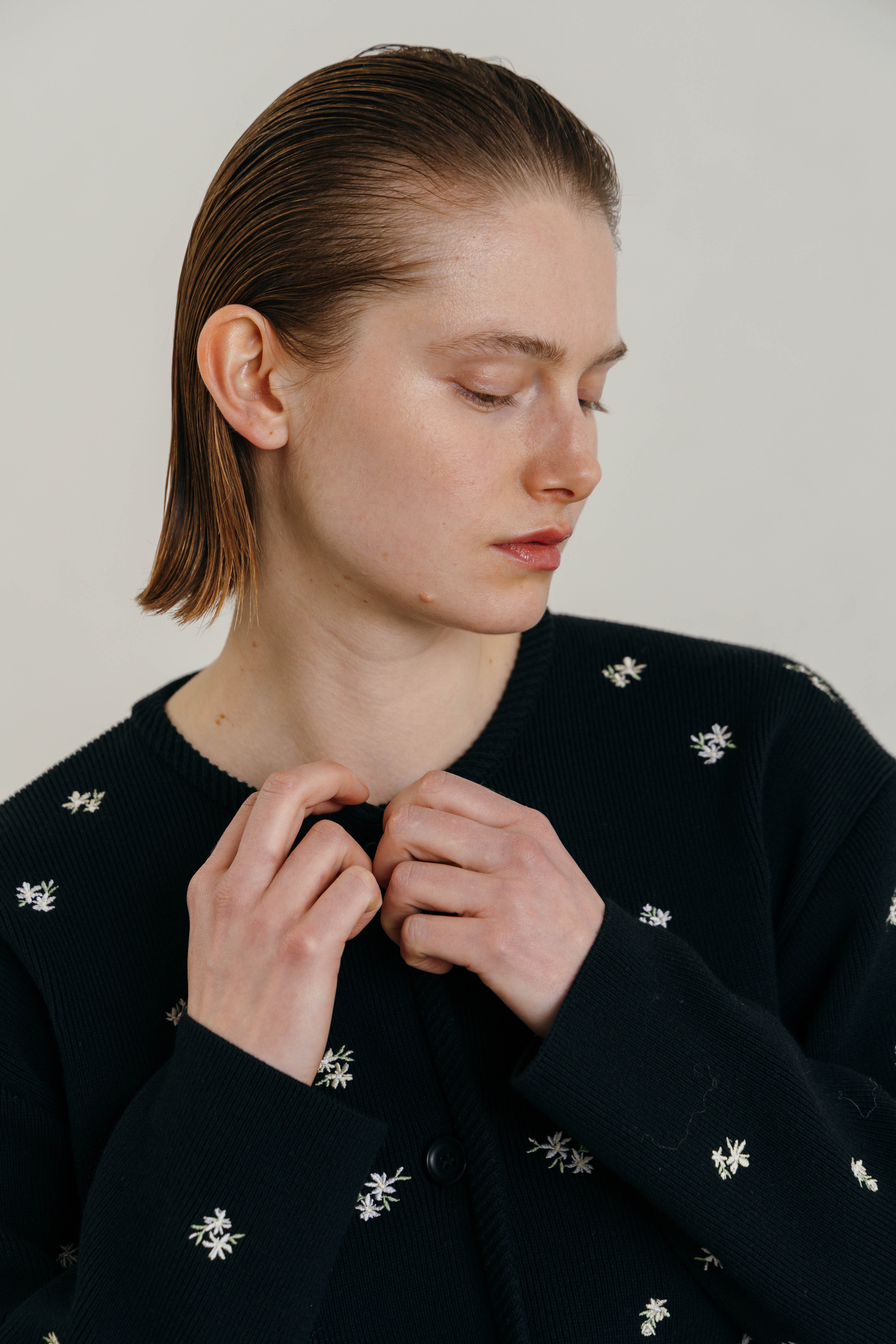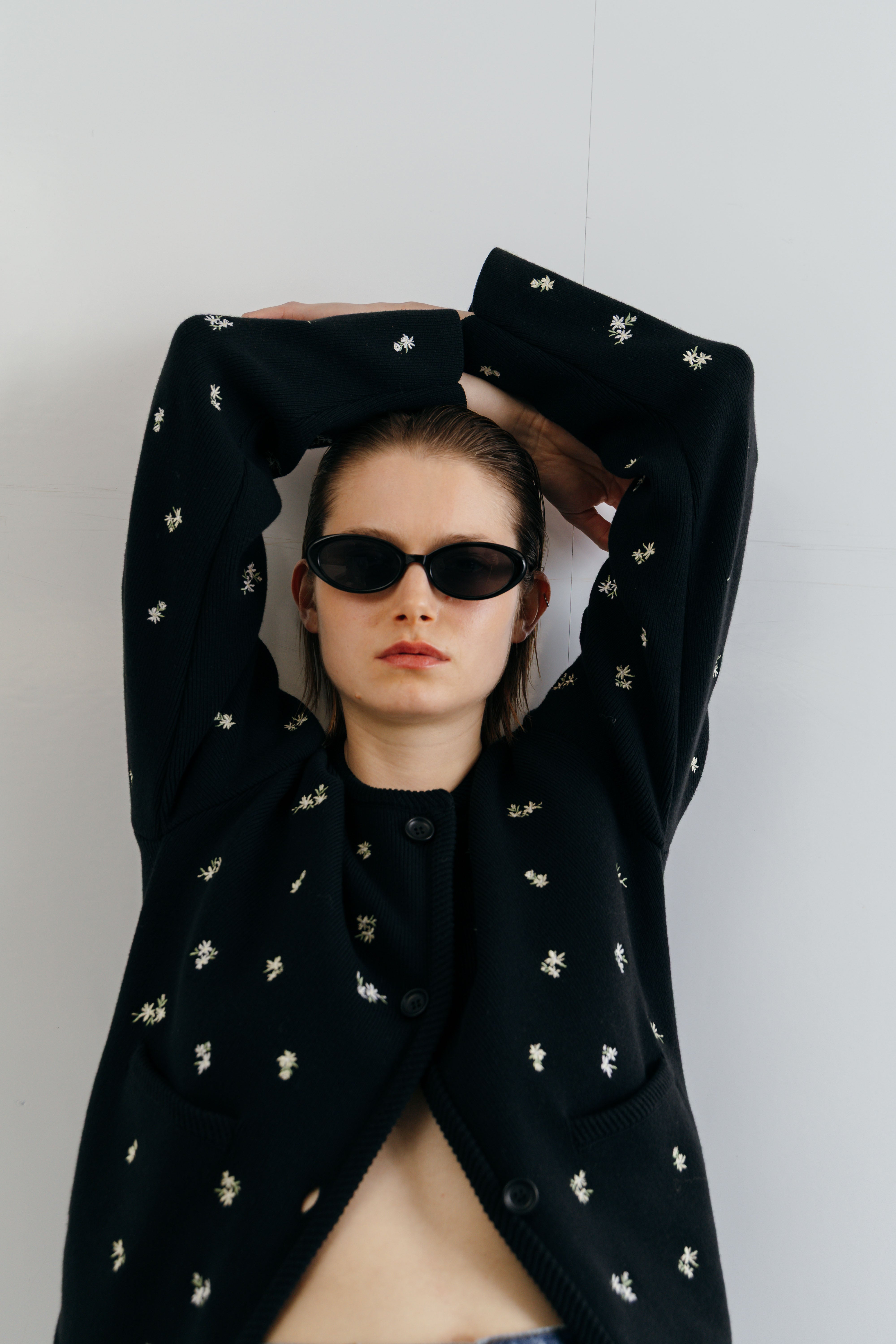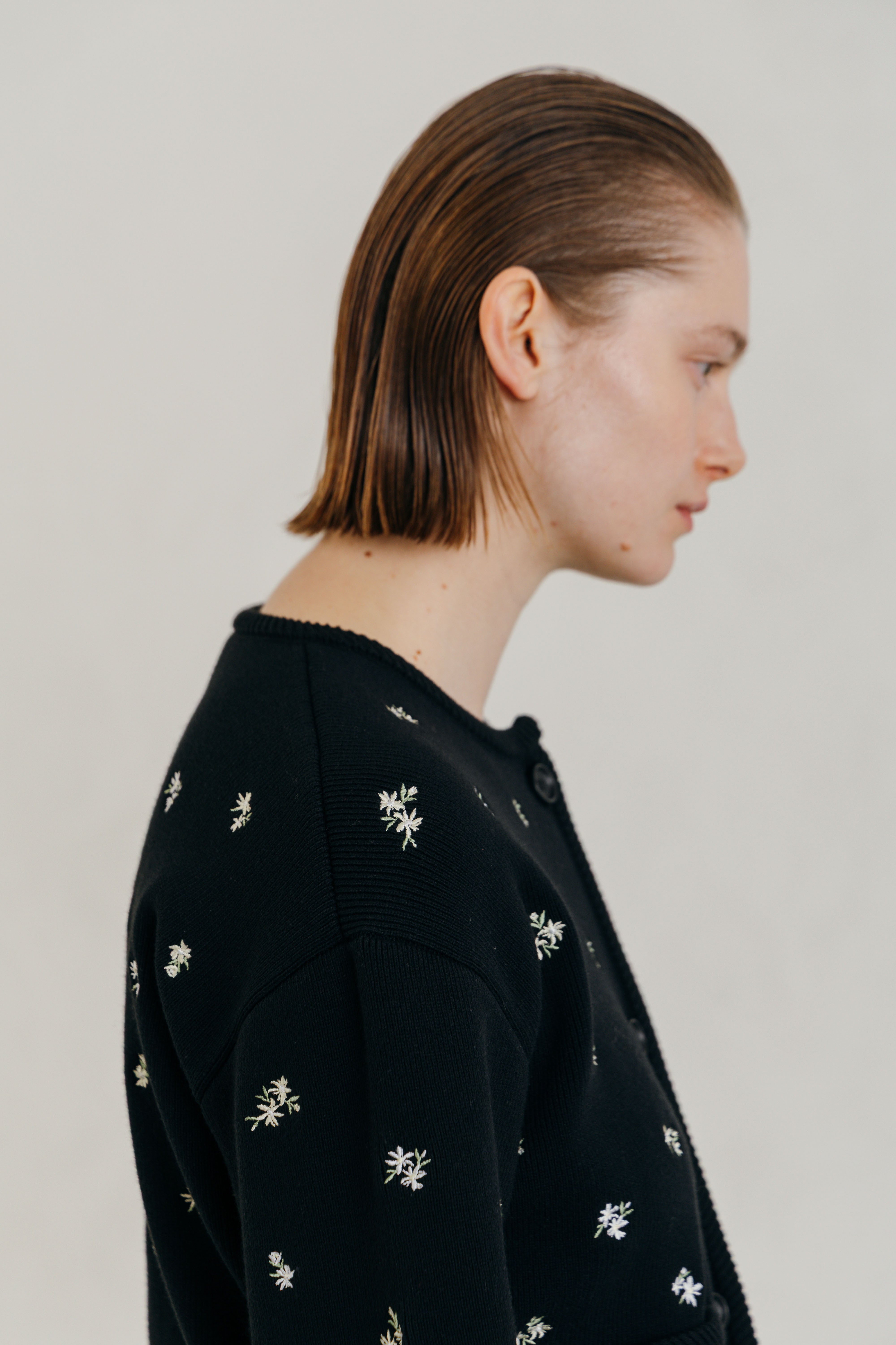 アーティスティックな小花の刺繍を散りばめ、羽織るだけで華やぎを添える一枚です