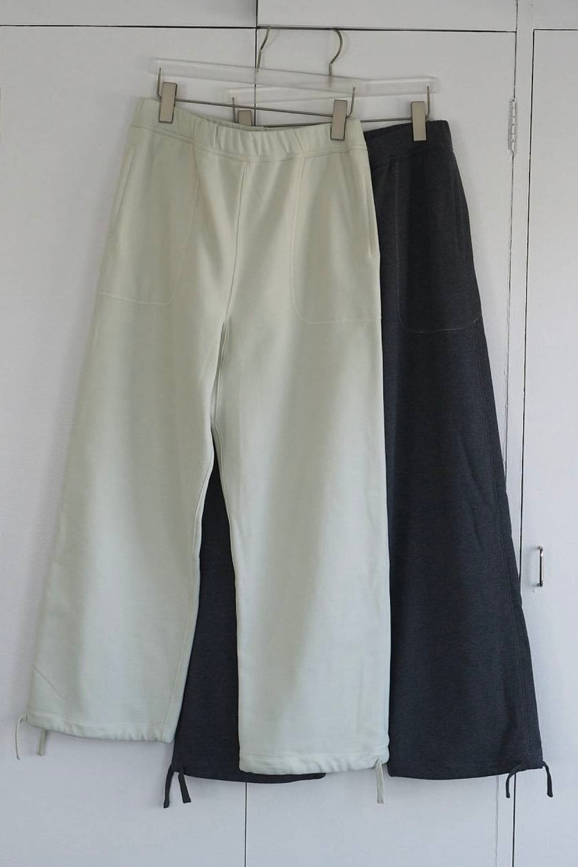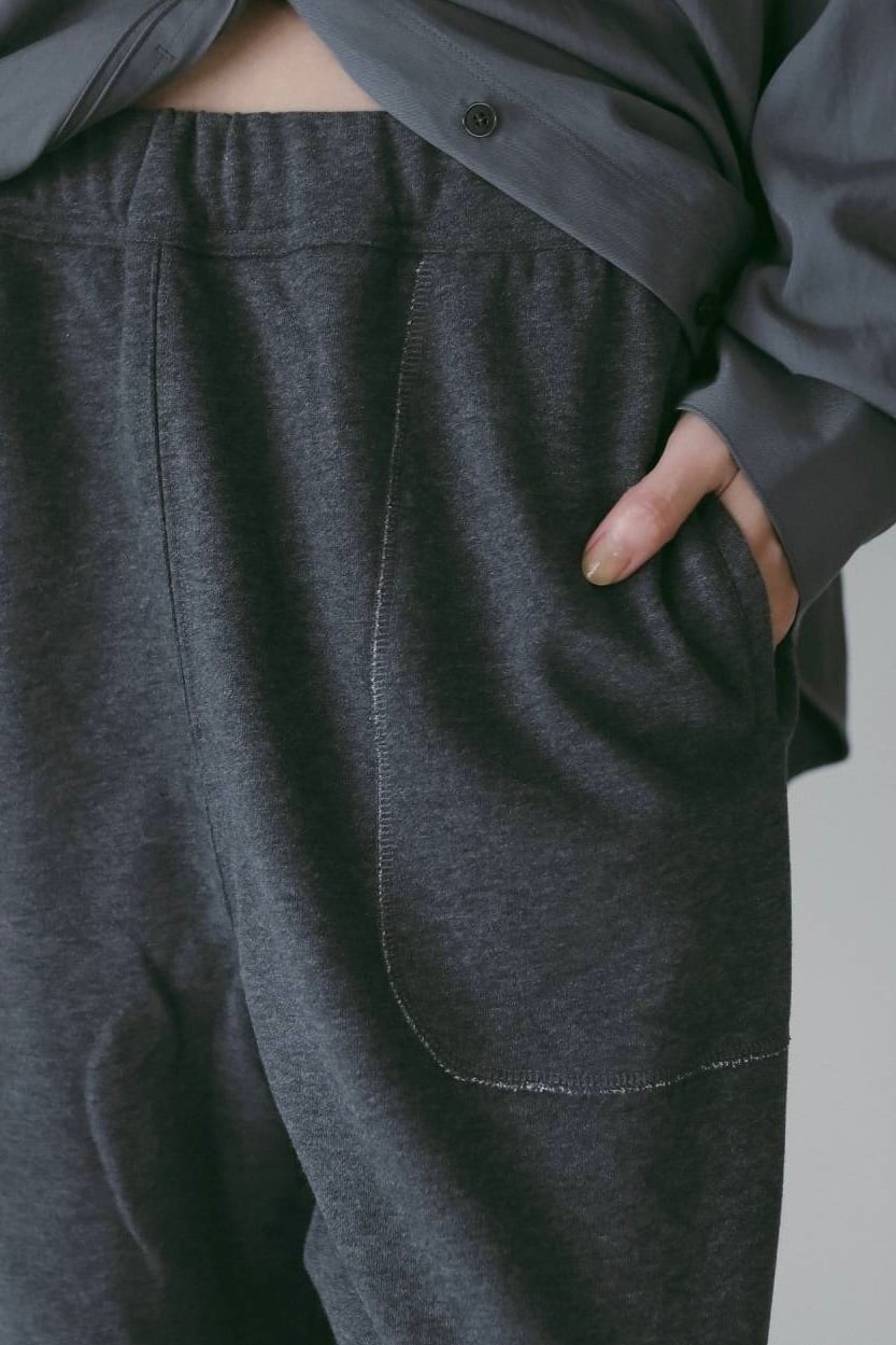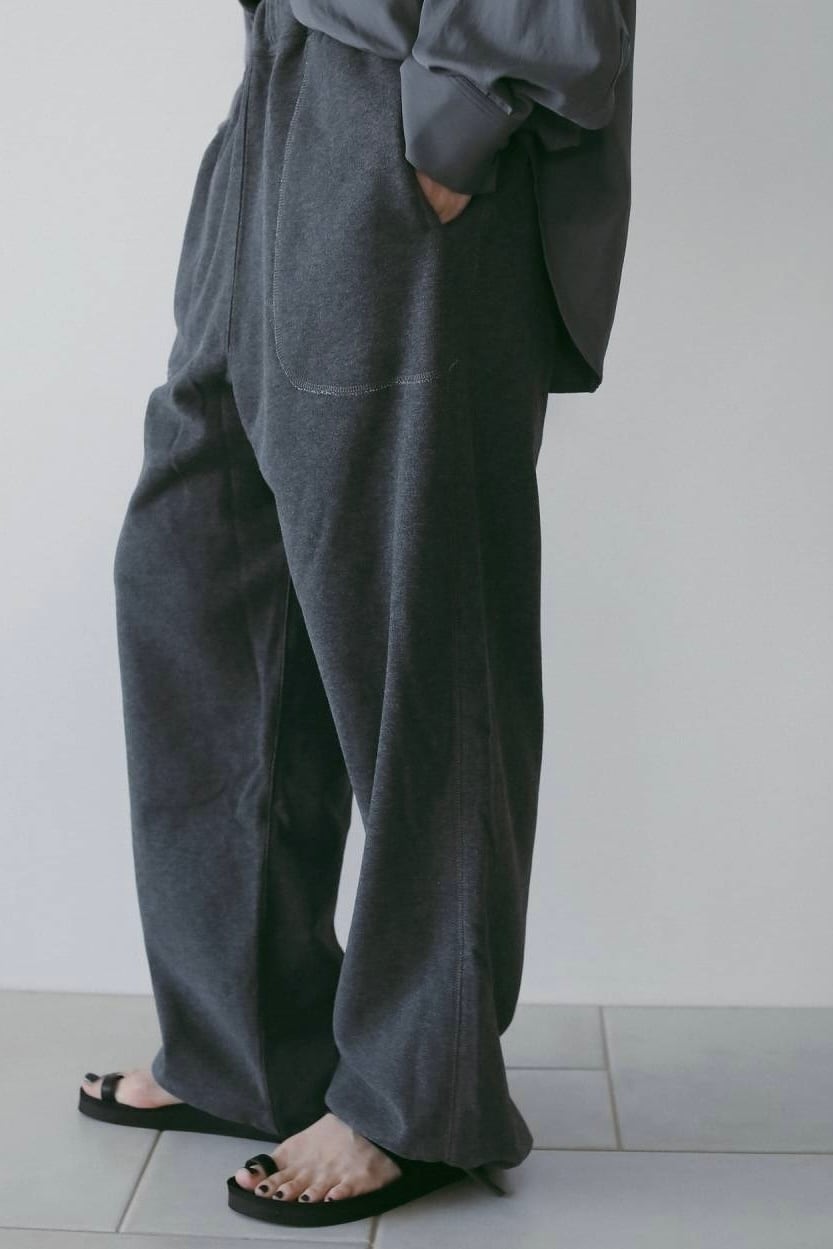裏起毛素材を使用した、抜け感あるスウェットパンツ。ラフなシルエットがスタイリングの程よい外しとなり、こなれた印象を演出します。サイドやポケットに施したステッチデザインがさりげないアクセントに。裾はドローストリング仕様で、ワイドにも絞っても着用でき、気分やコーディネートに合わせたシルエットアレンジが可能です。綺麗目なジャケットやシャツ、あえて甘さのあるトップスと合わせたスタイリングがおすすめ。