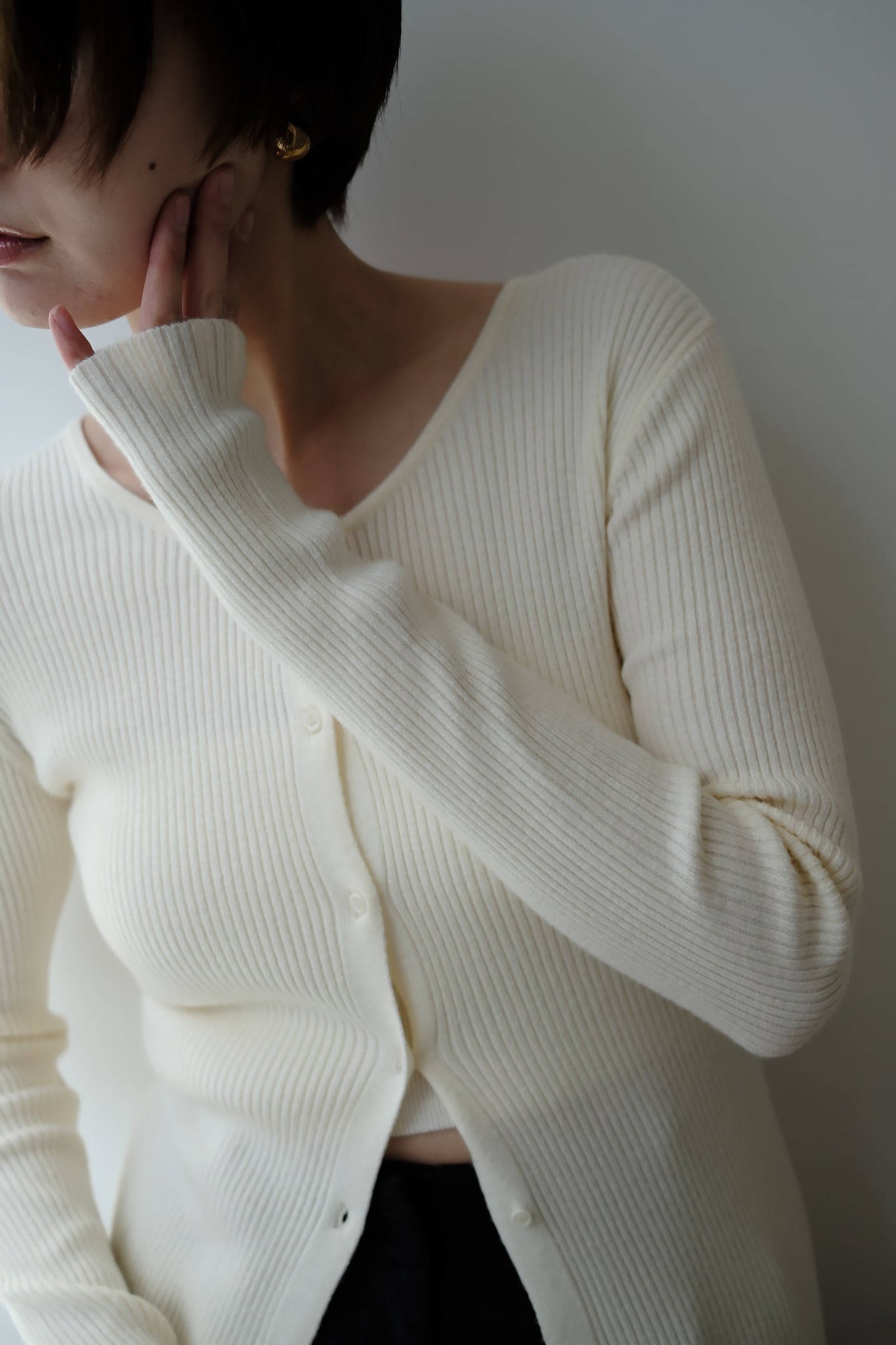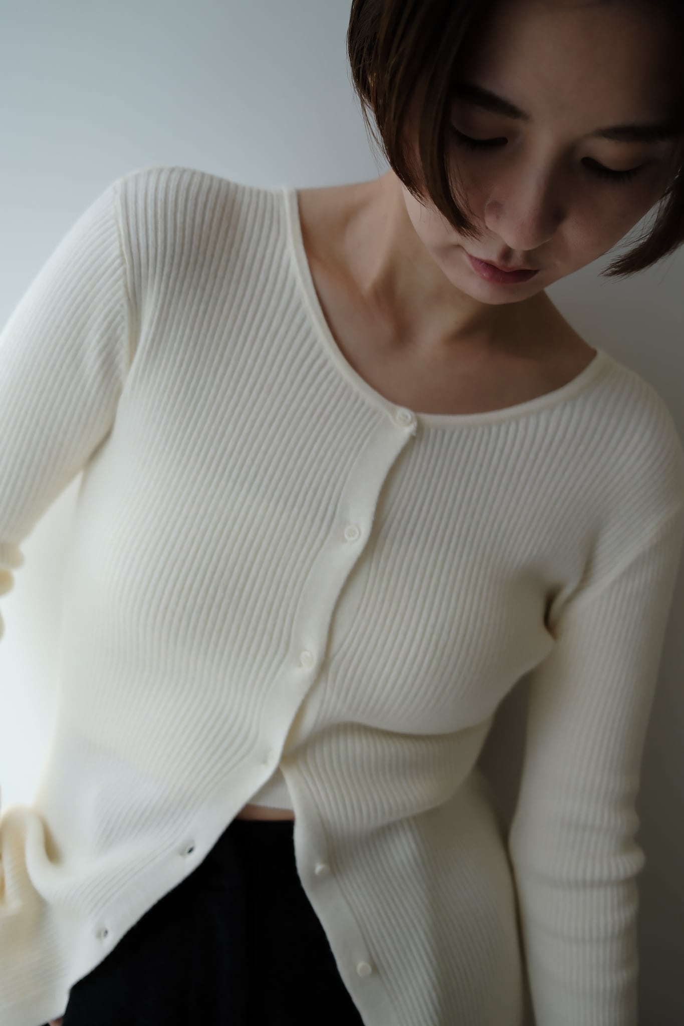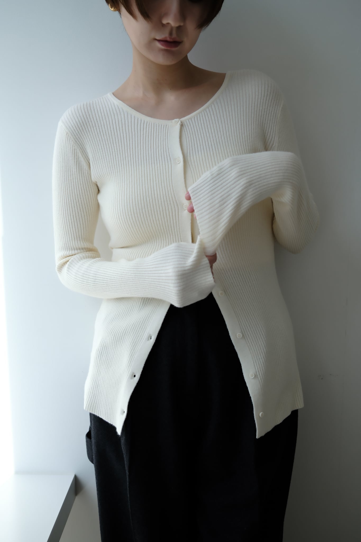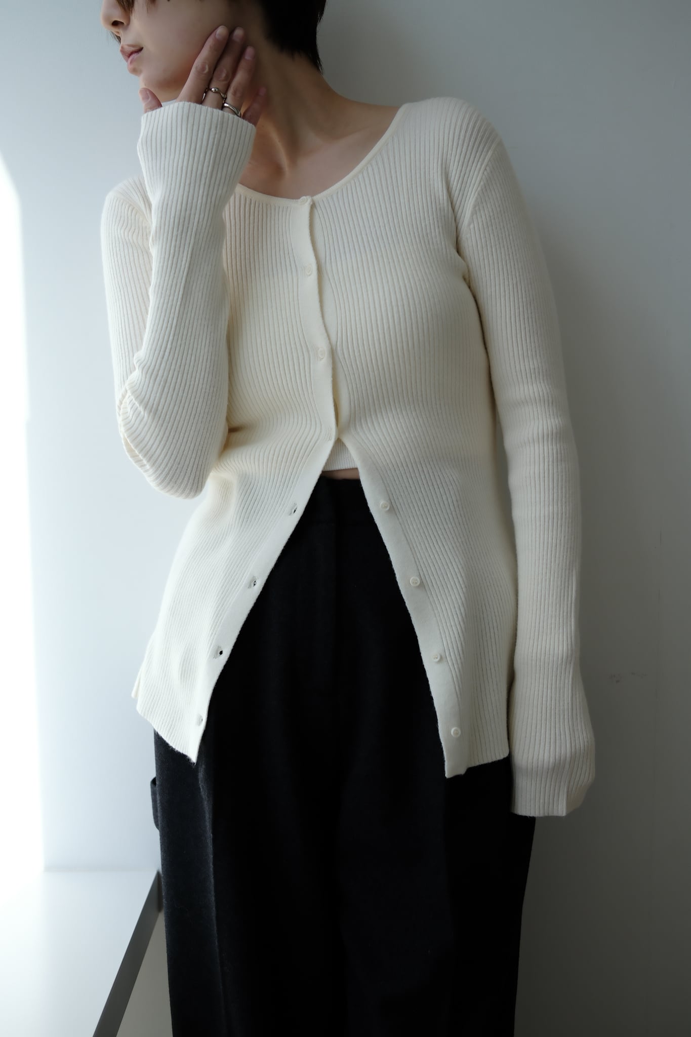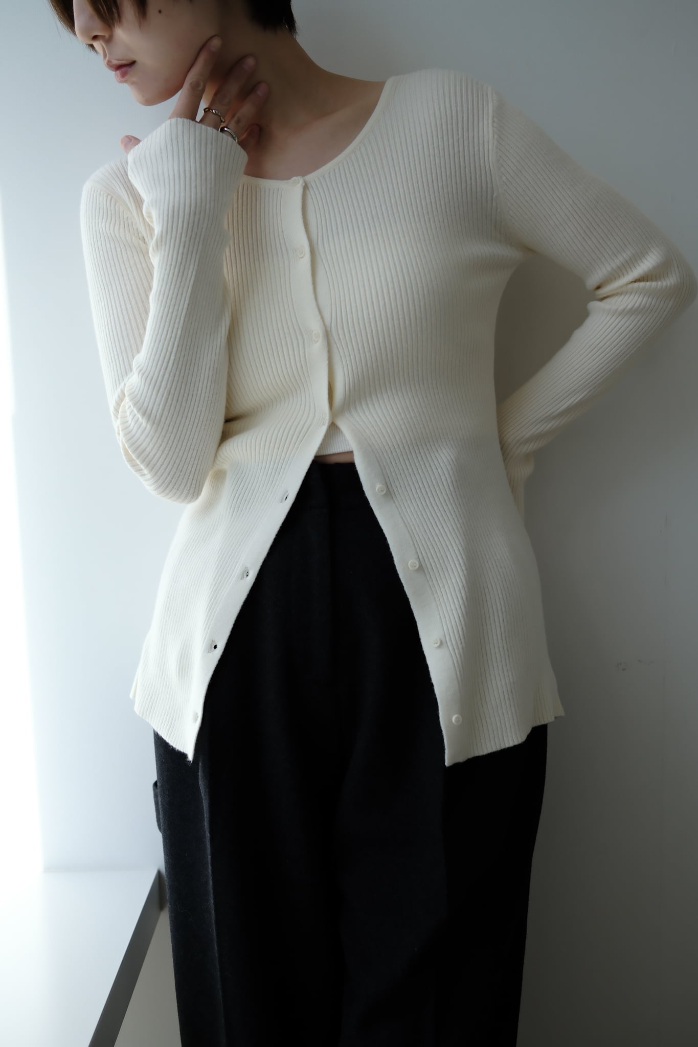 2WAY Rib Crew Neck Cardigan 前後2WAYリブ編みクルーネックカーディガン Ivory