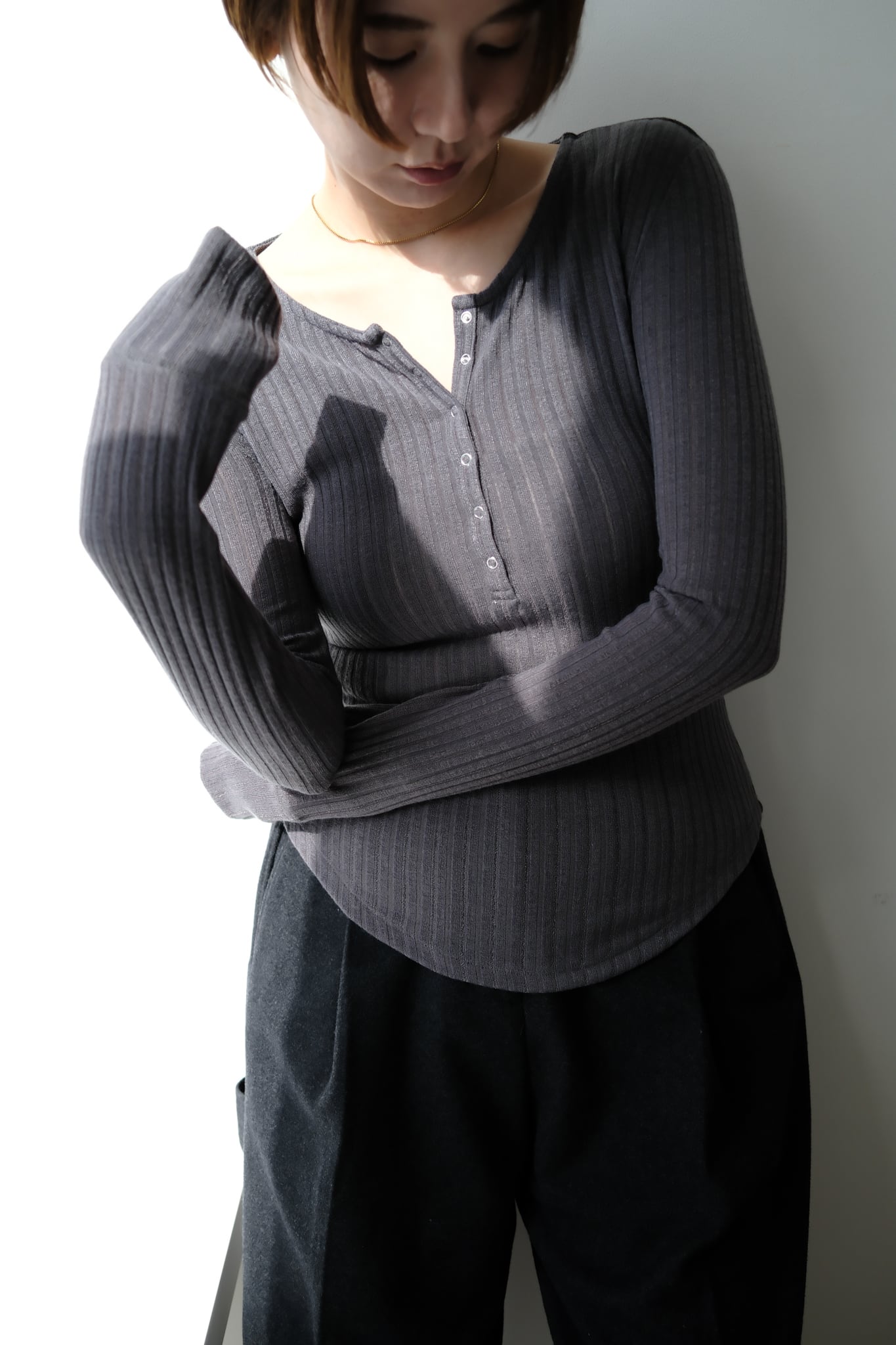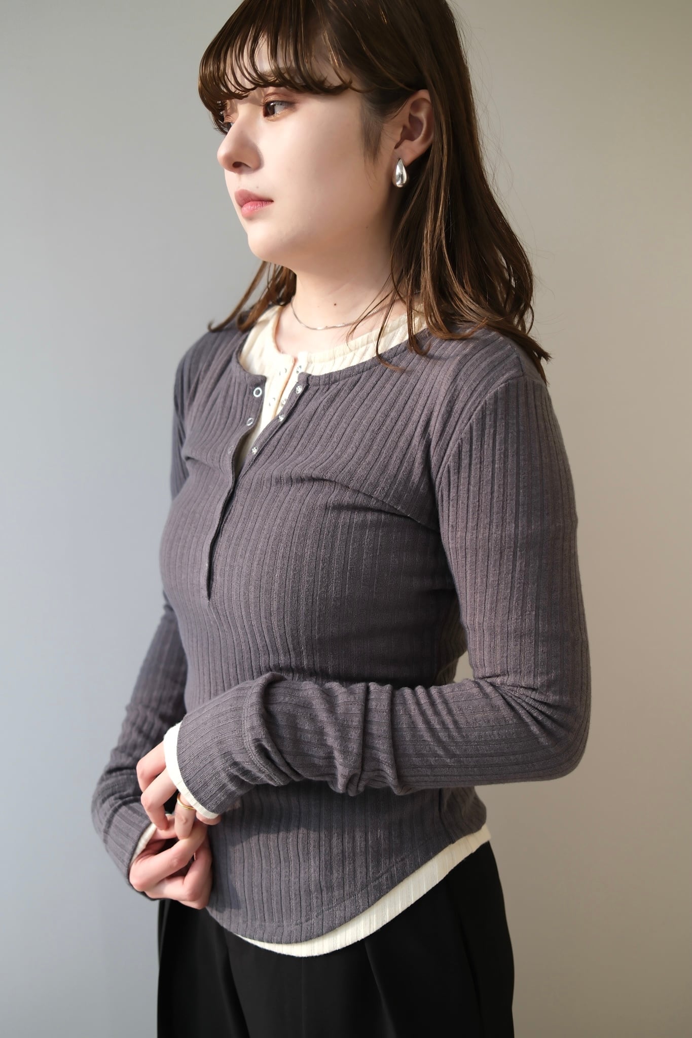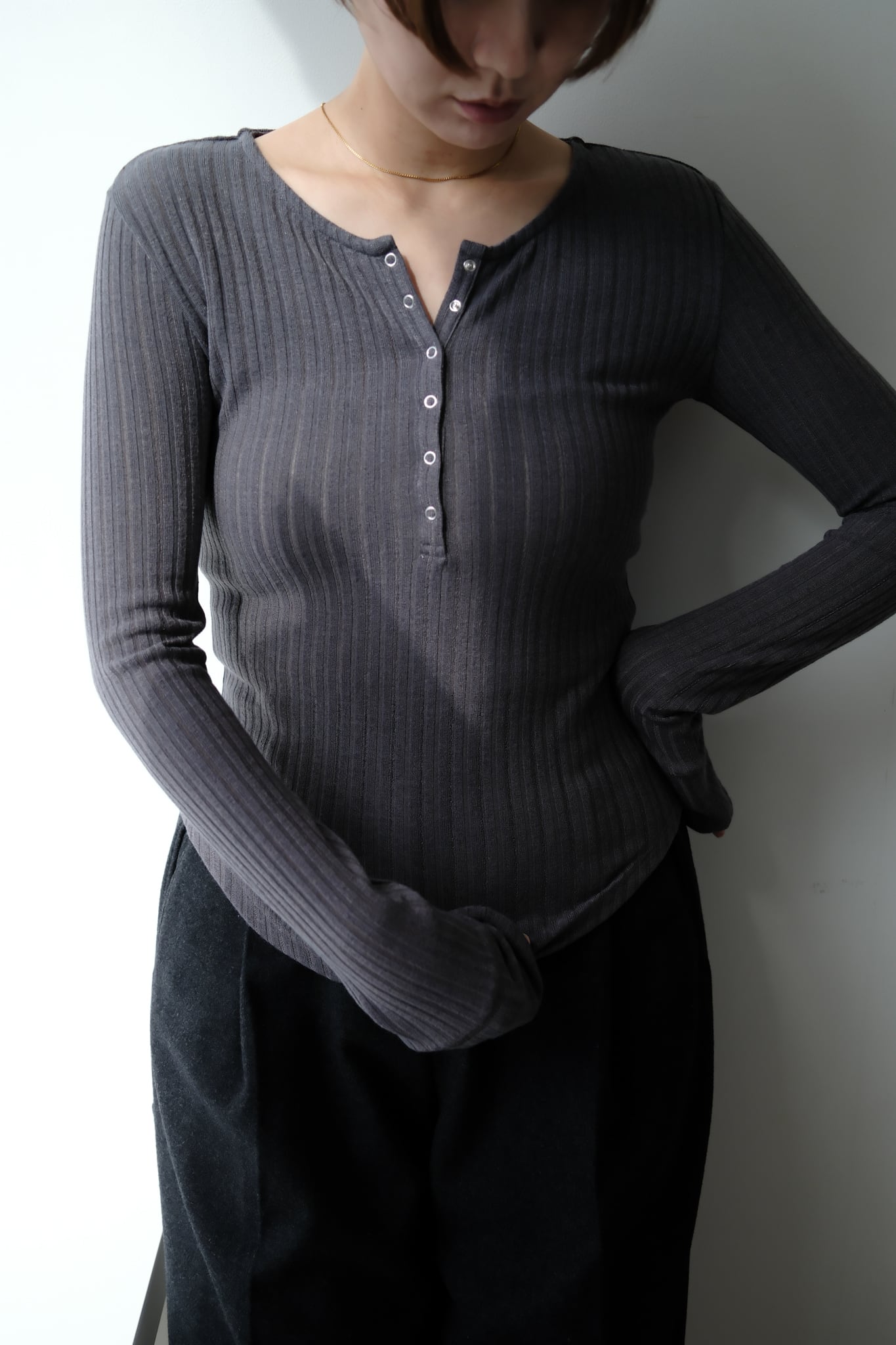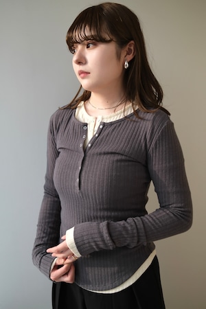 Random Teleco Henley Neck Pullover ランダムテレコヘンリーネックプルオーバー Gray