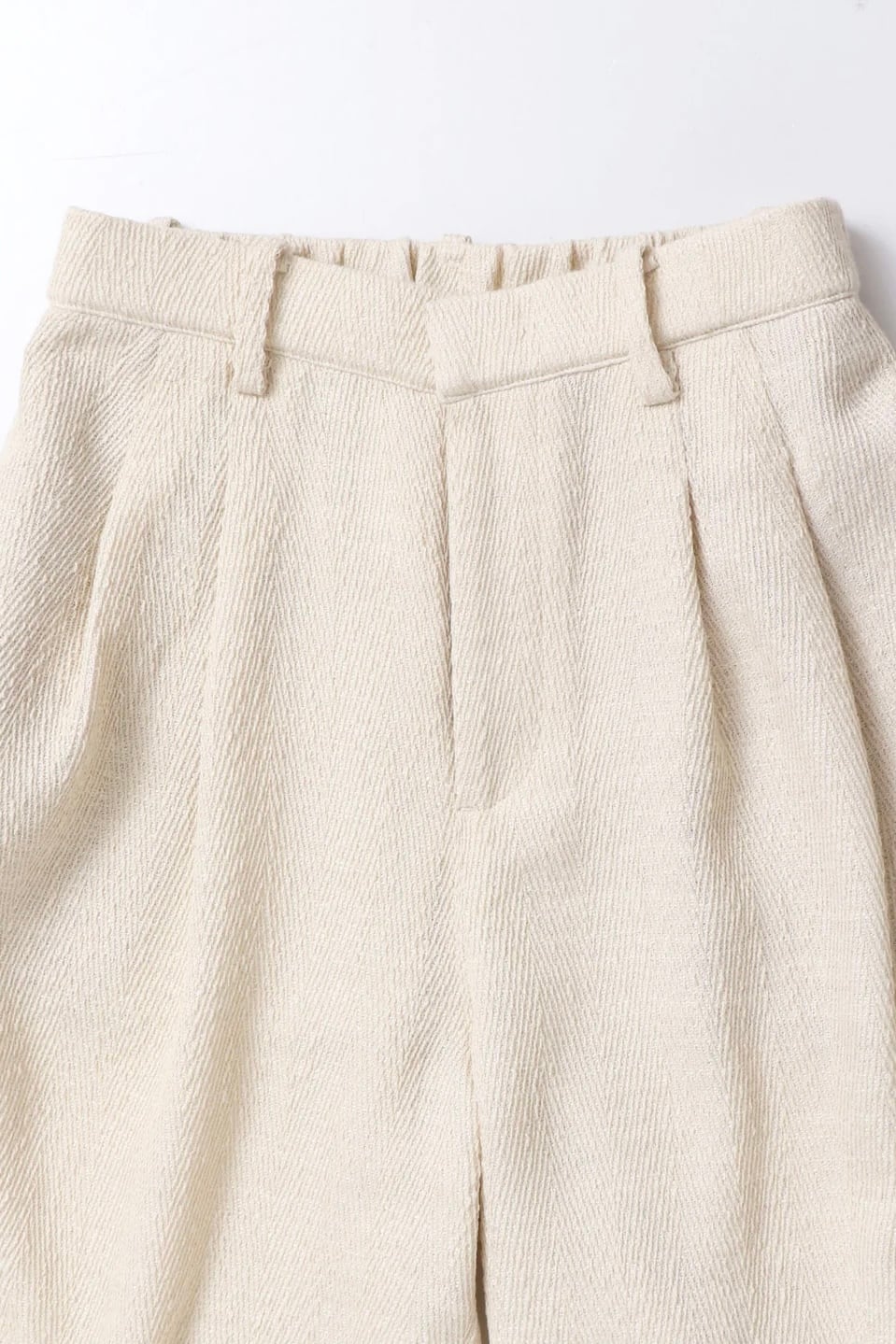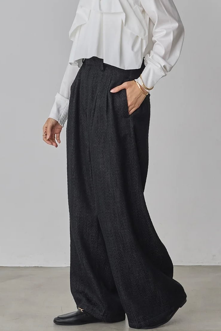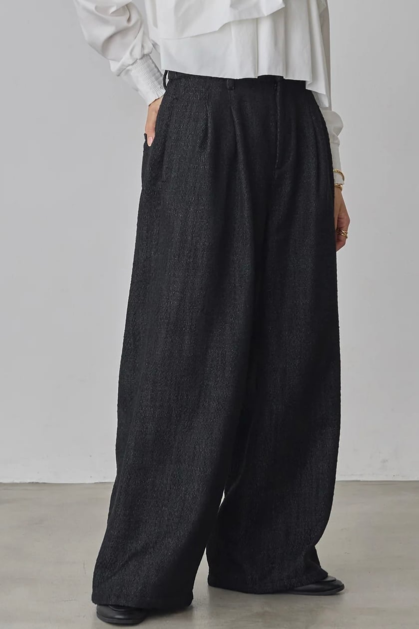ウエスト部分に2タックを入れ込み、太すぎず細すぎないシルエット感が魅力のタックパンツ。