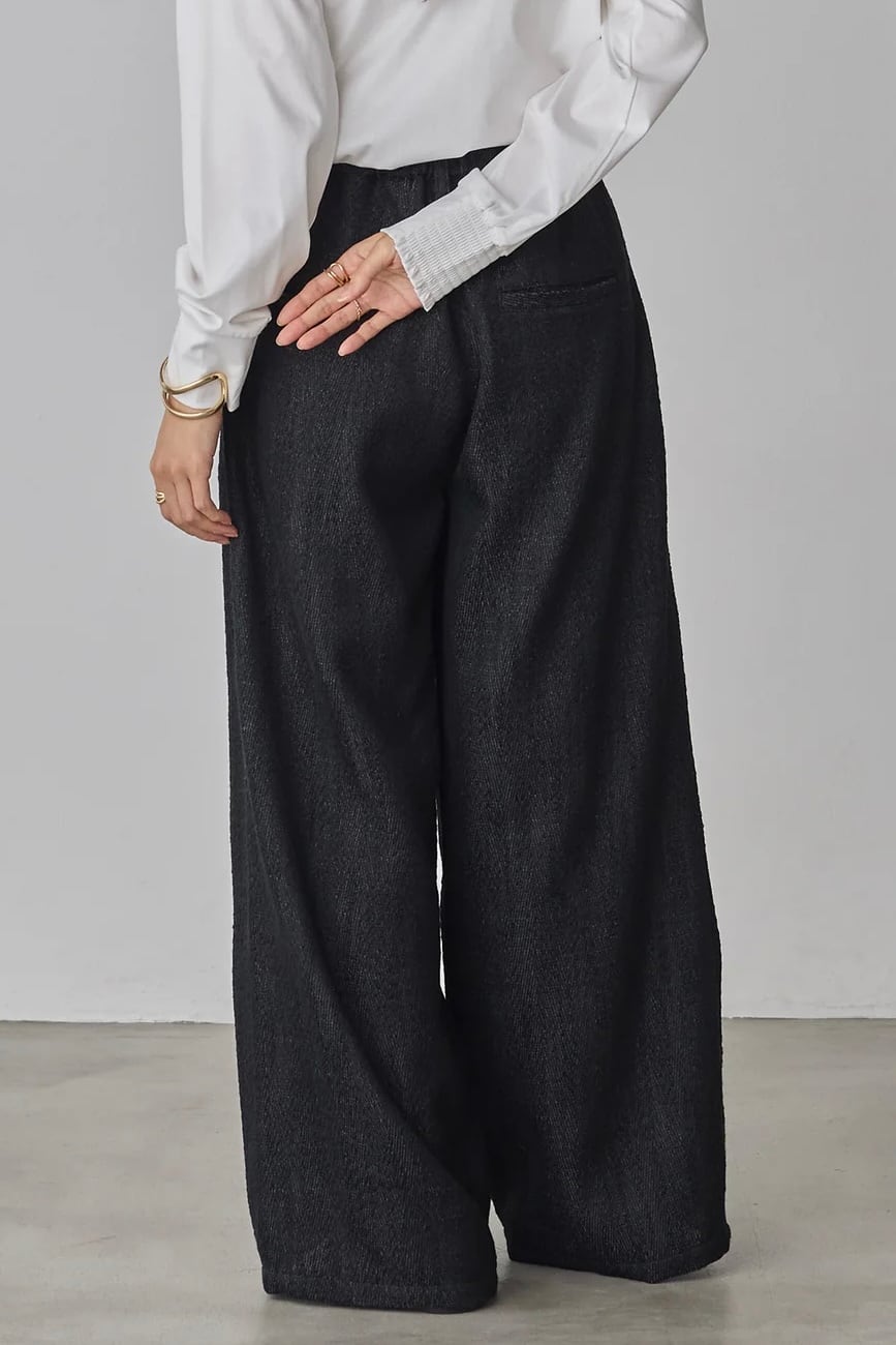 Denim Like Herringbone Tuck Pants デニムライク ヘリンボーンタックパンツ Black
