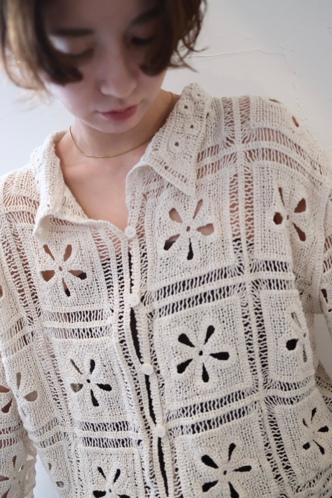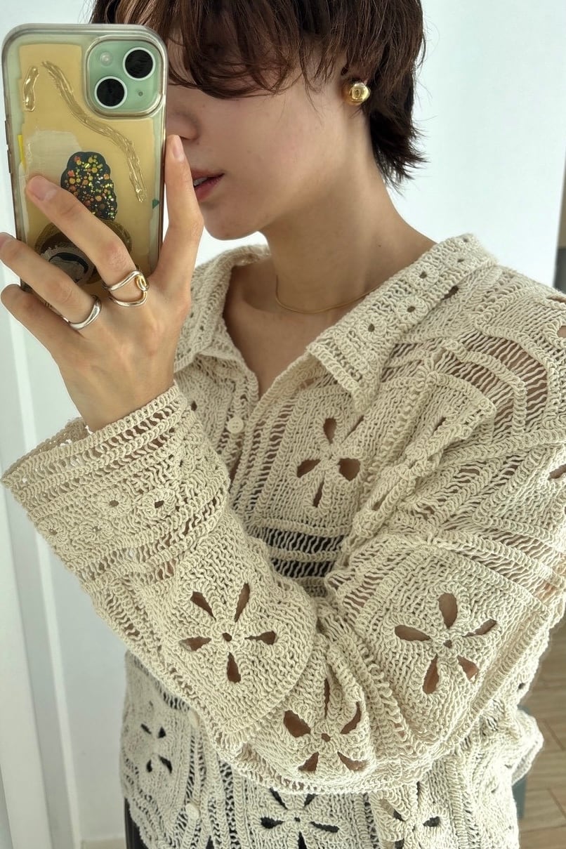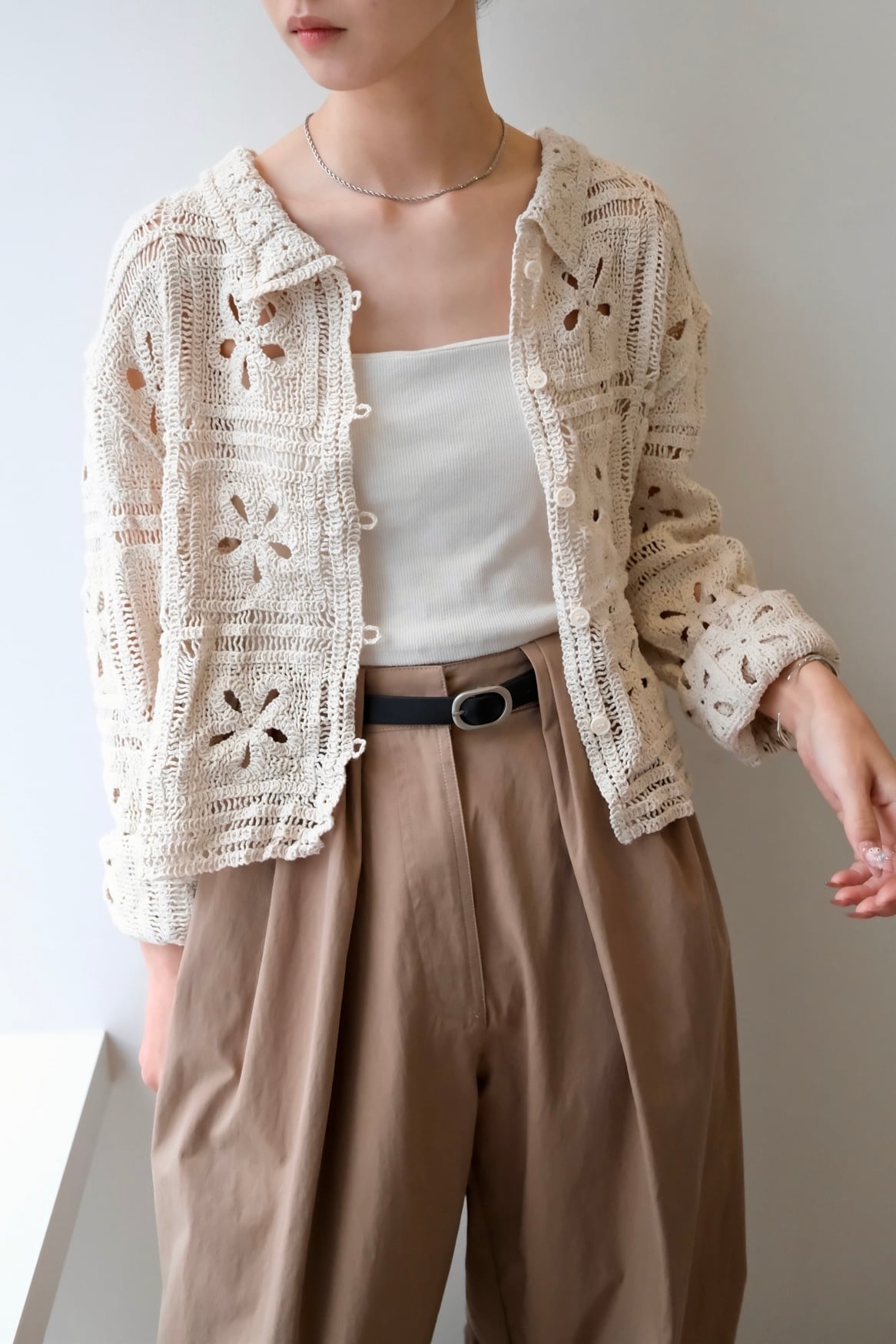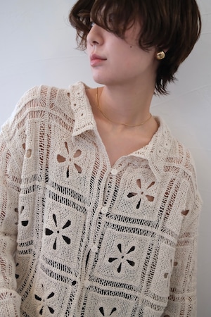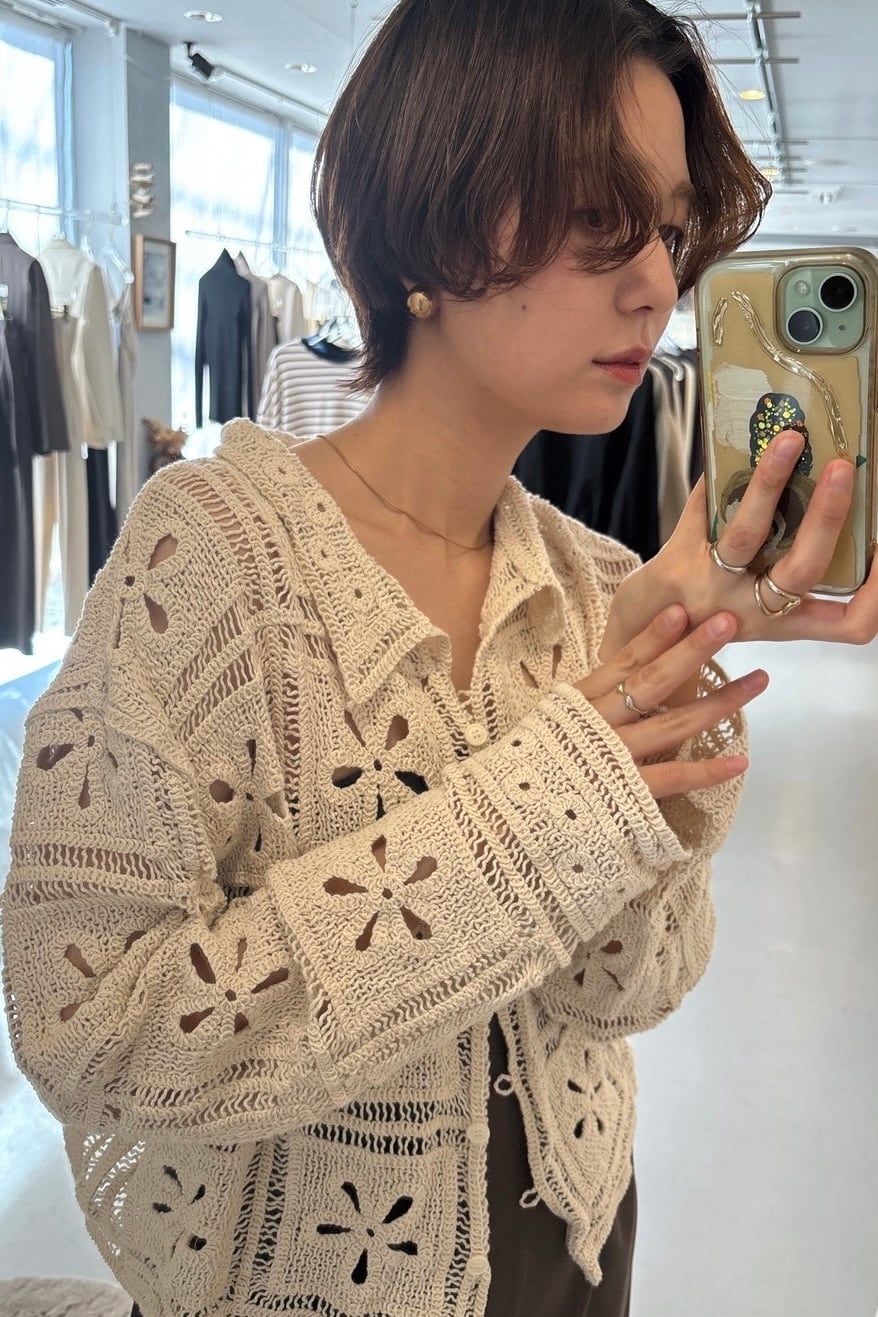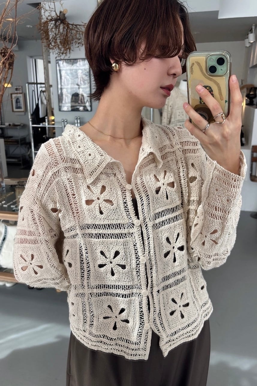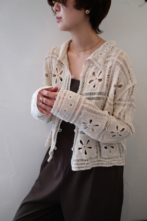Crochet Knit Cardigan カギ編みニットカーディガン White