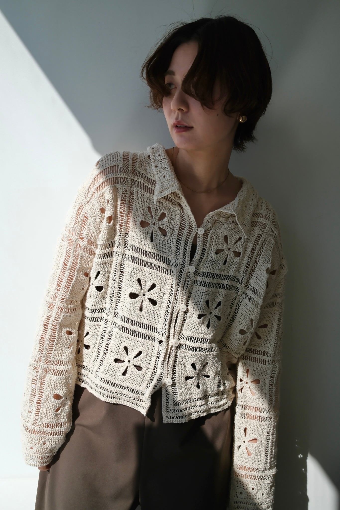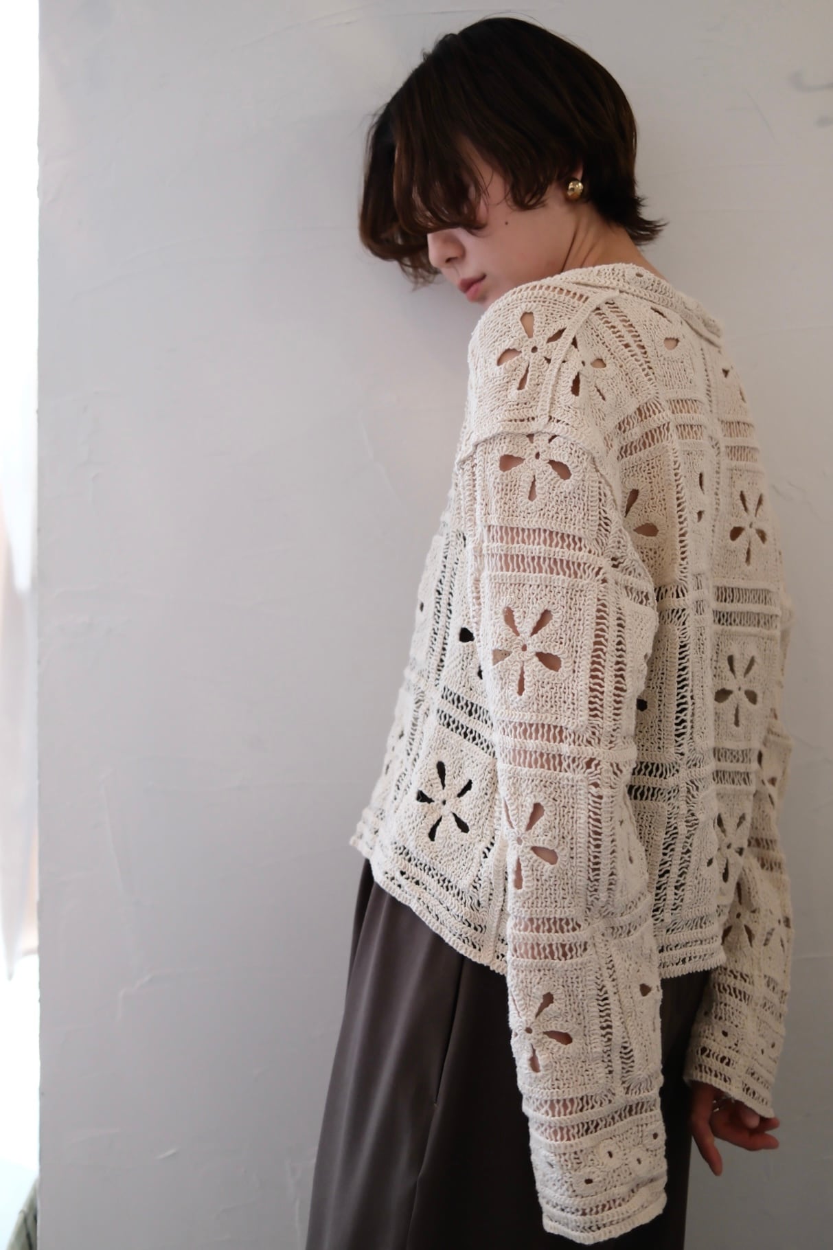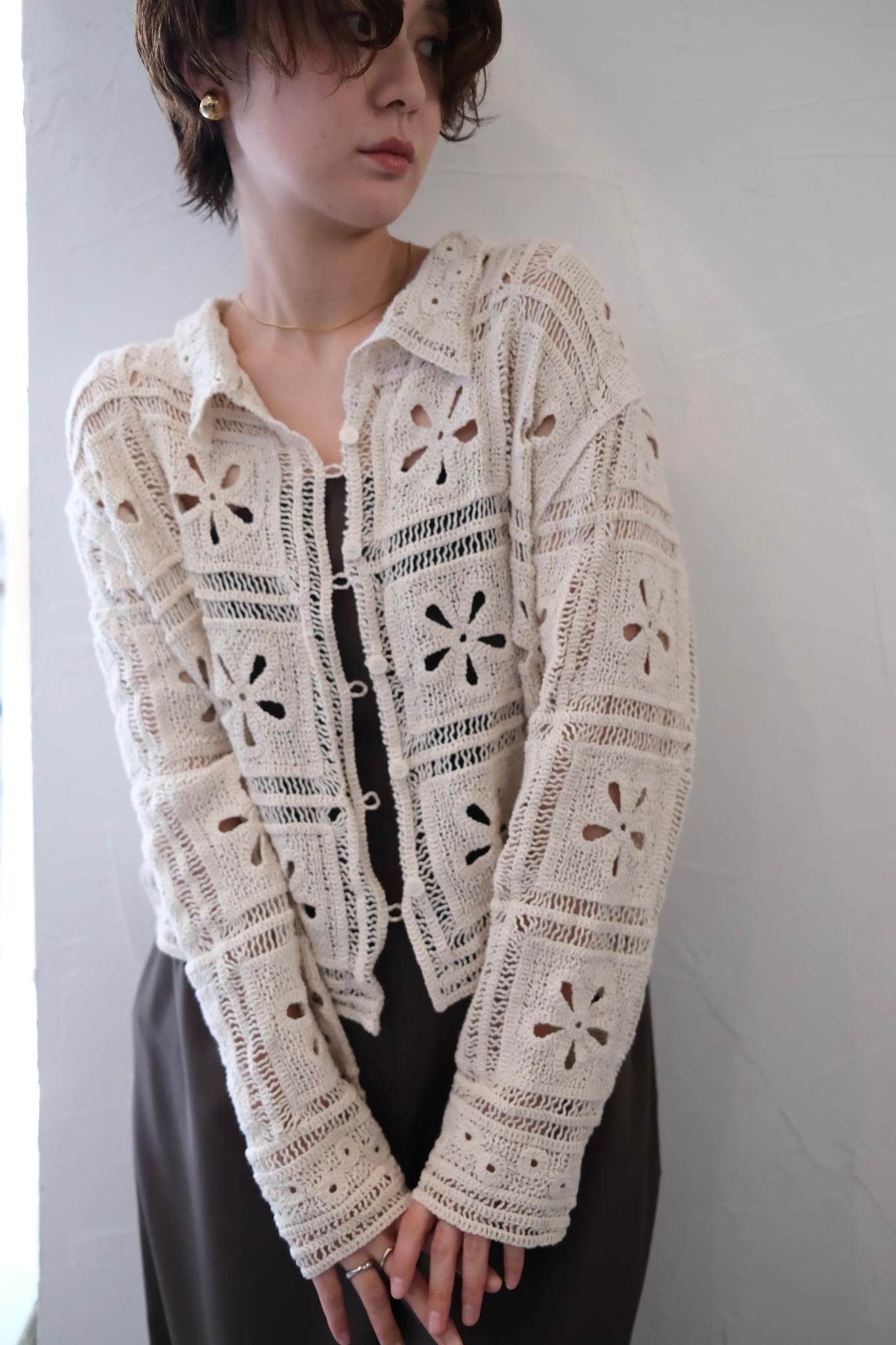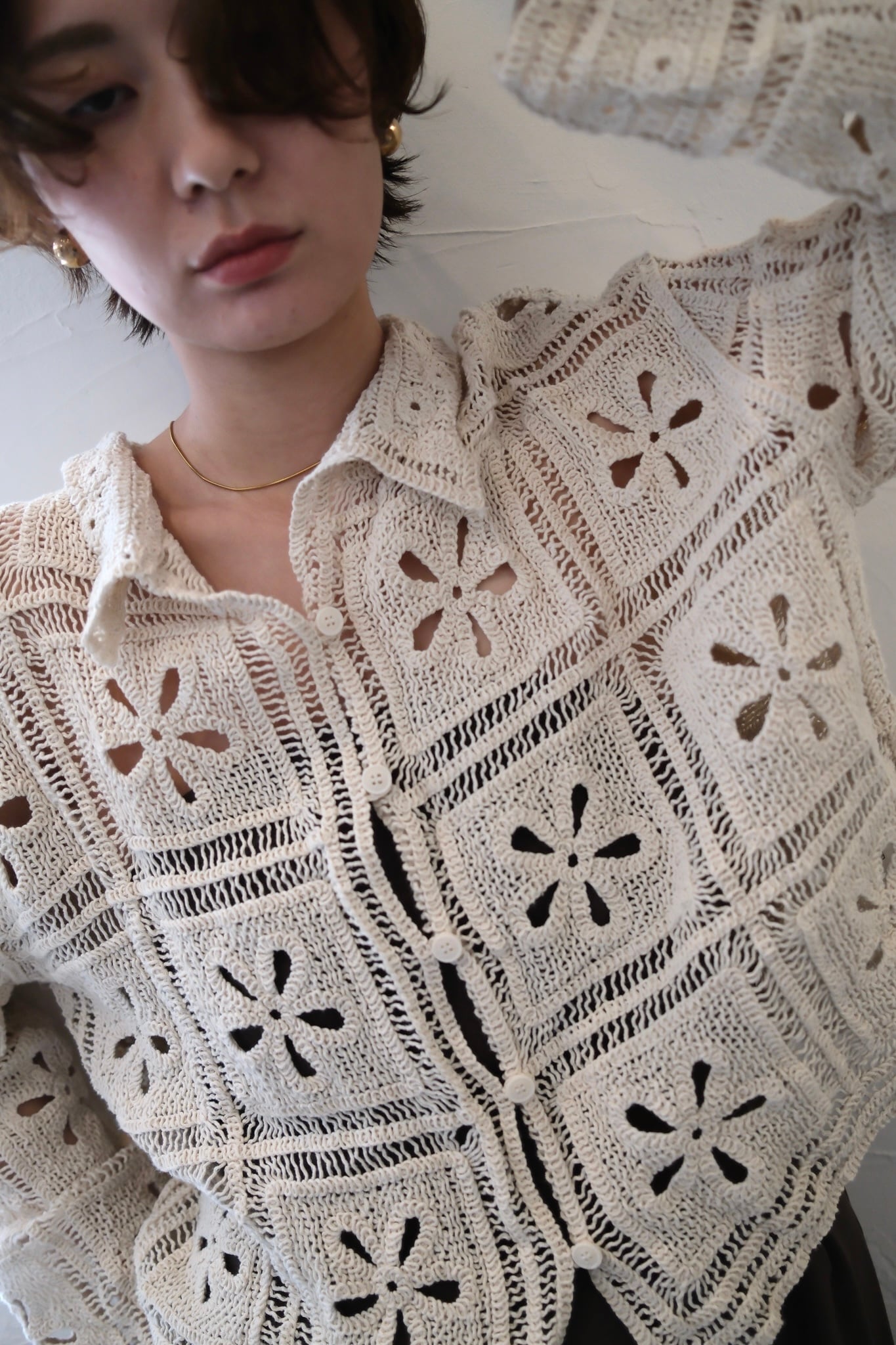 Crochet Knit Cardigan カギ編みニットカーディガン White