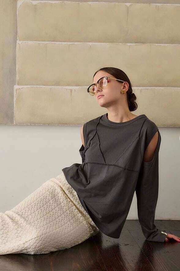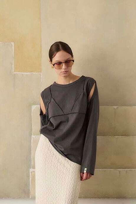 春先にも秋にも使えるビスチェデザインのロングTシャツ。