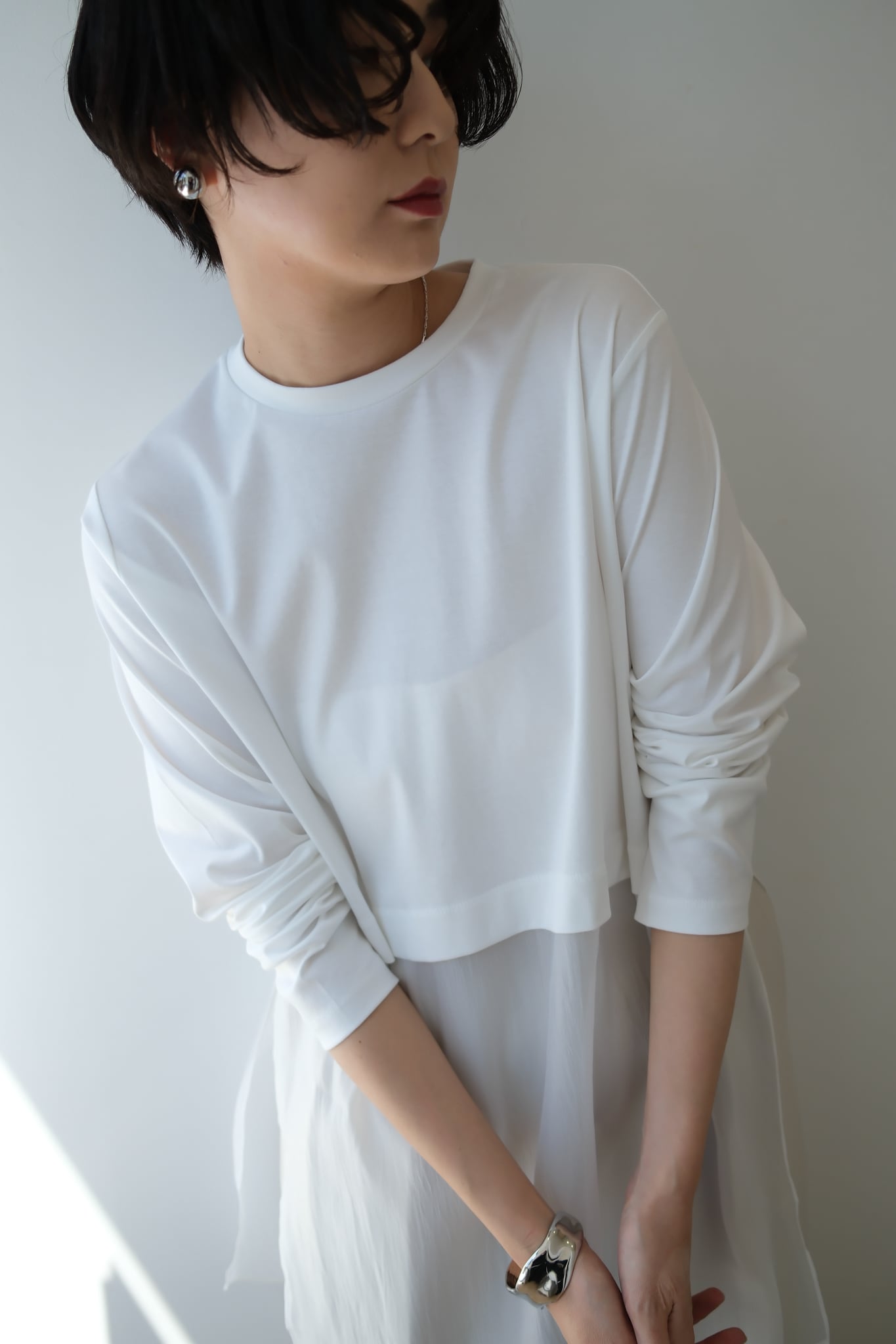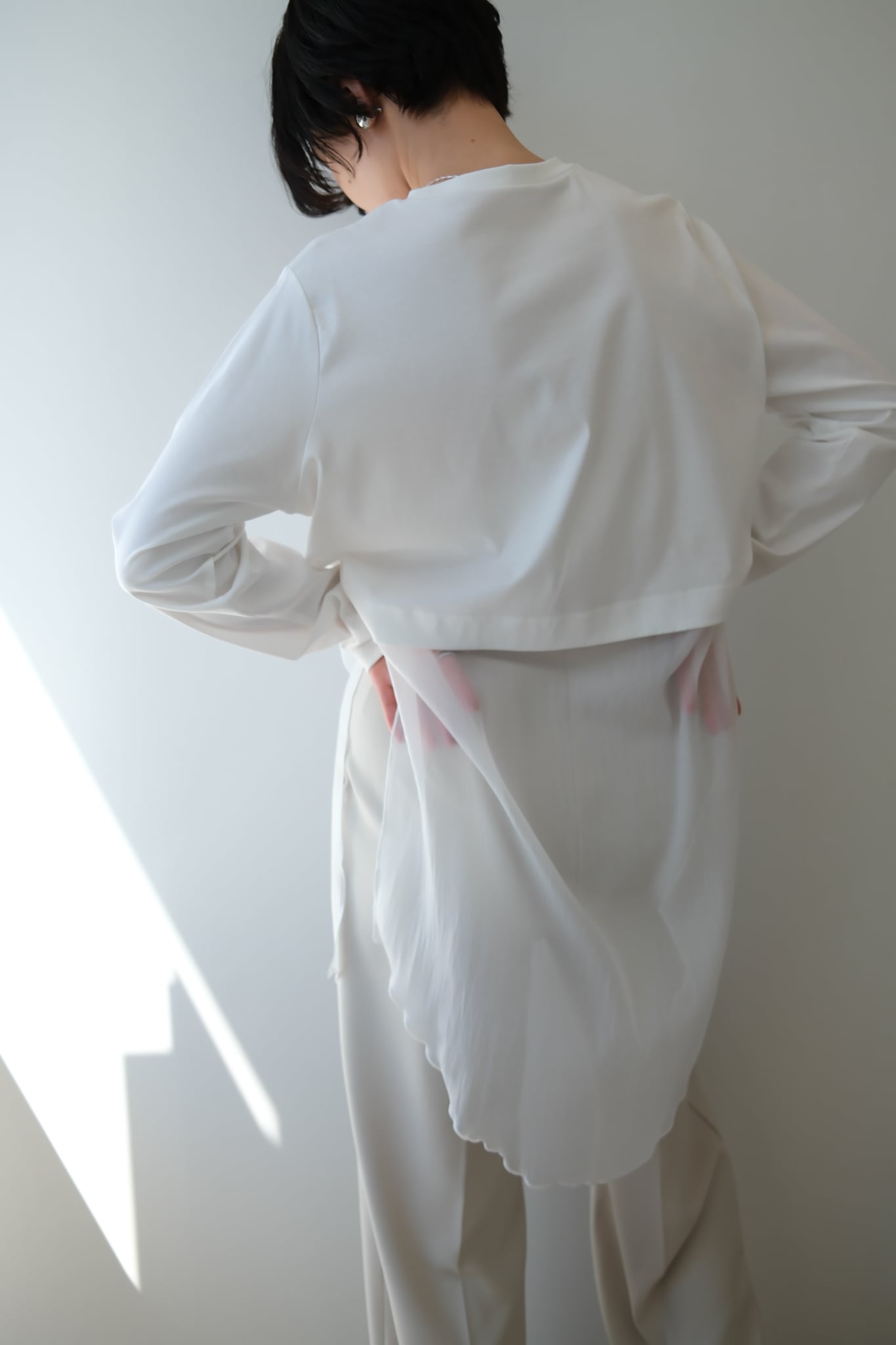 シボ感があって高見えするオーガンジー素材をドッキングさせており、エアリーな着心地と見た目が特徴です。