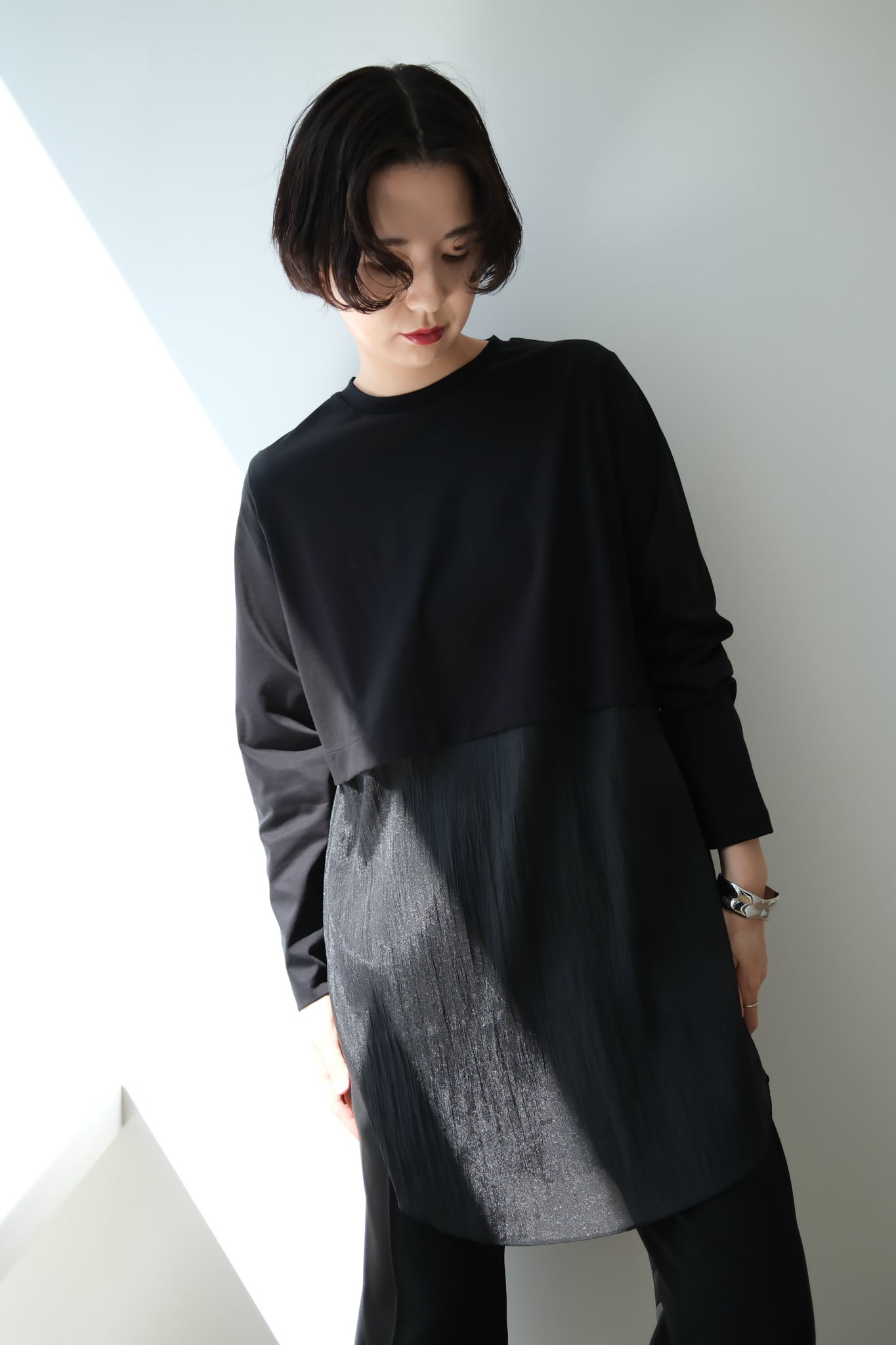 シボ感があって高見えするオーガンジー素材をドッキングさせており、エアリーな着心地と見た目が特徴です。