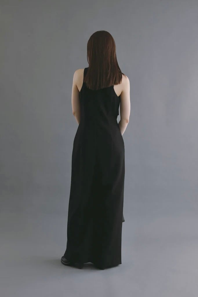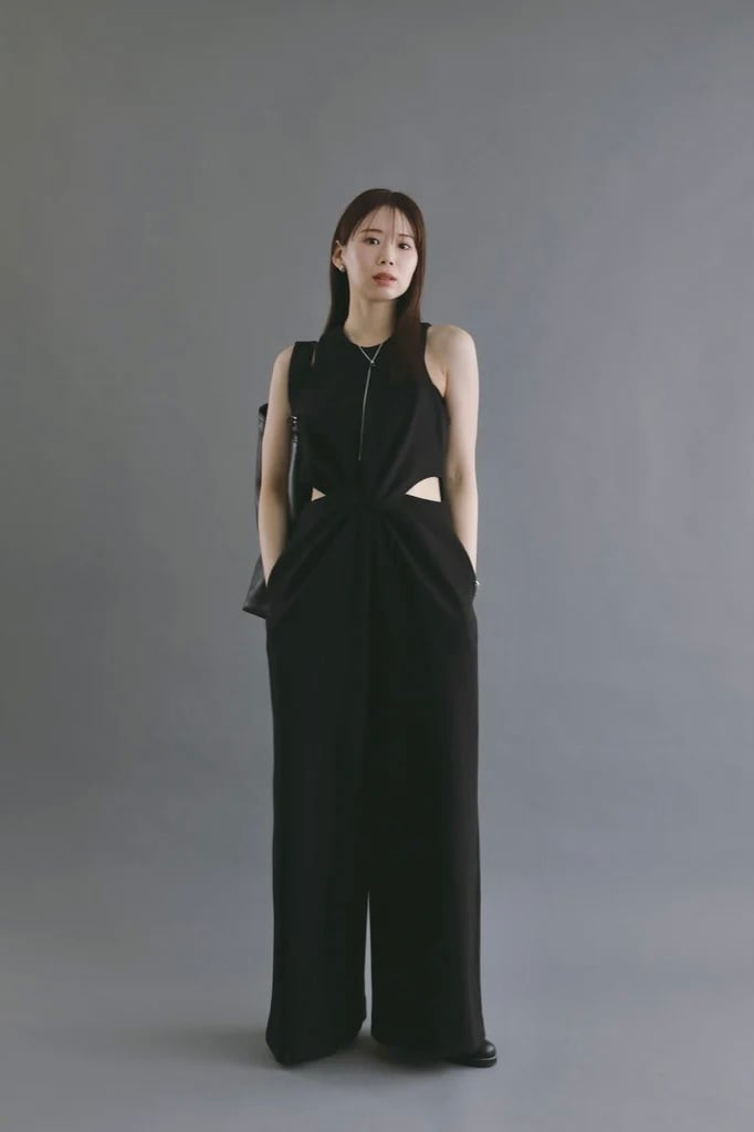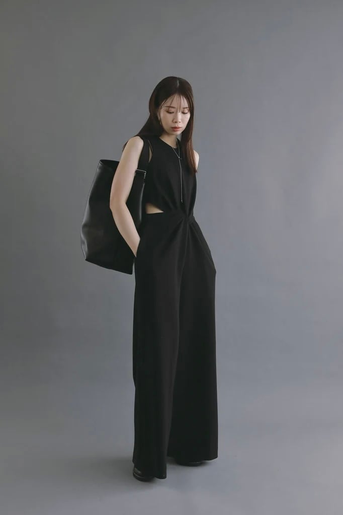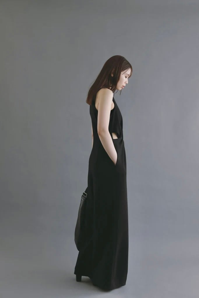 以前ご好評いただいた waist twist pencil dress のデザインをベースに、 一枚でスタイリングが完成するコンビネゾンとしてアップデートしました。
