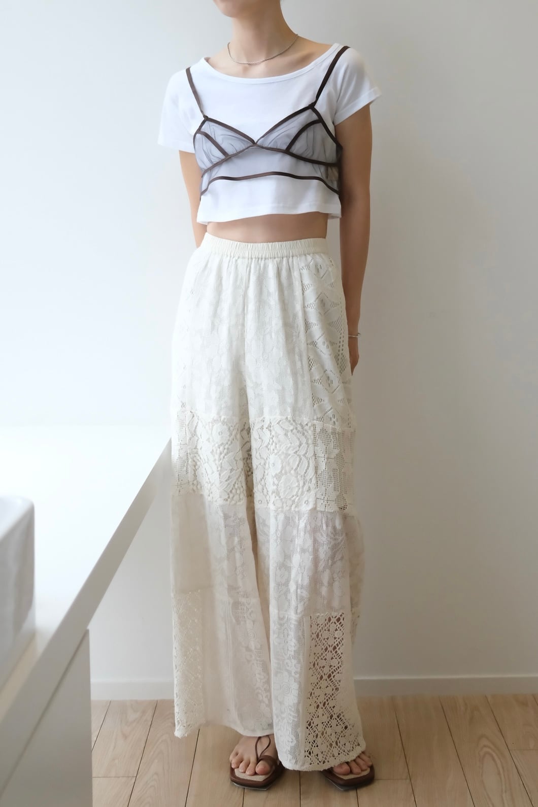 Patchwork Lace Trousers パッチワーク レース パンツ White