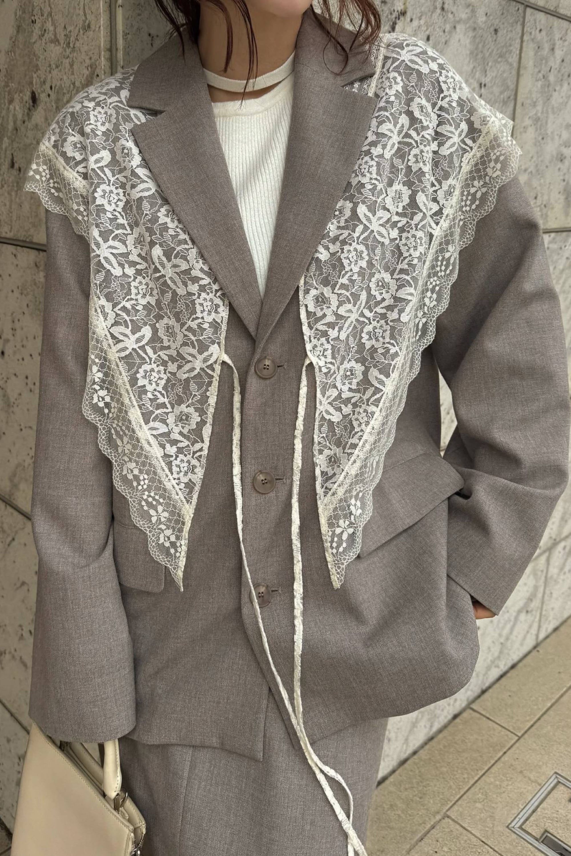 WILLFULLY Arrangement Lace Shawl Oversize JK アレンジメントレースショールオーバーサイズジャケット Mocha