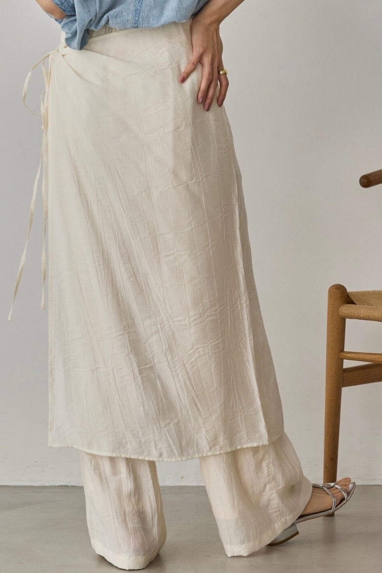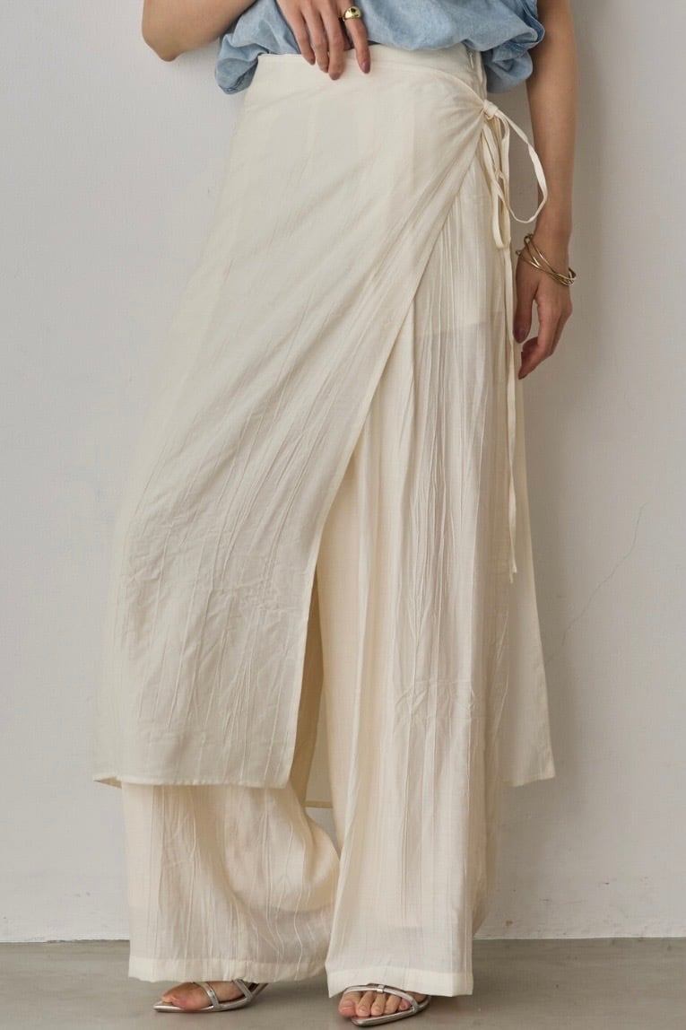 Washer Satin Layered Skirt Pants ワッシャーサテン レイヤードスカートパンツ Ivory