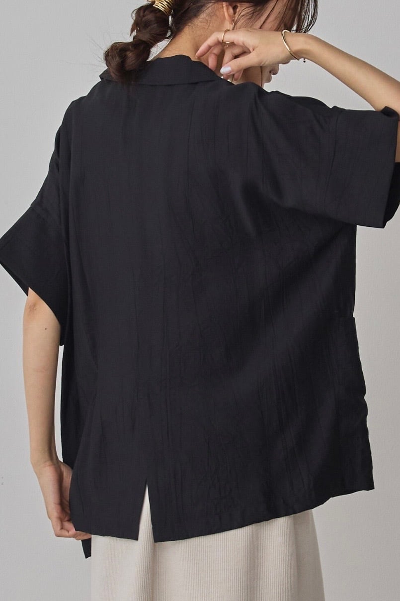 Washer Satin Shirt Jacket ワッシャーサテン シャツジャケット Black