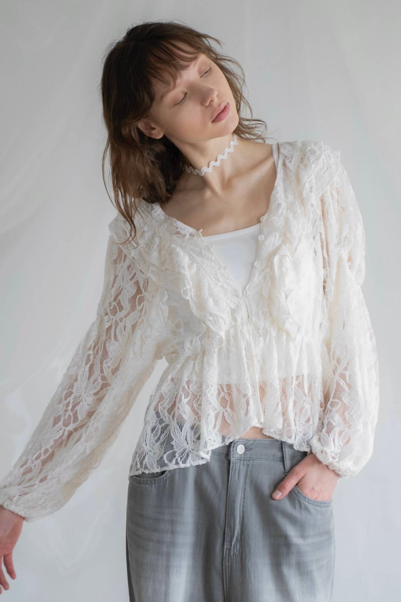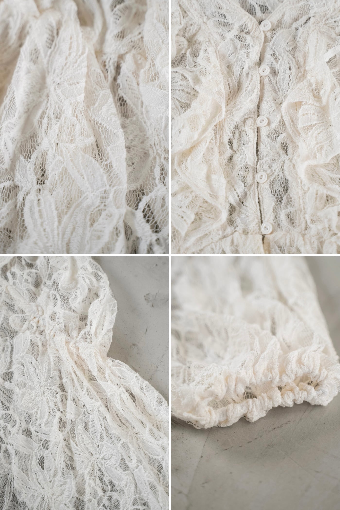 WILLFULLY tiered frill neck volume sleeve lace BL ティアードフリルネック ボリュームスリーブ レースブラウス Natural
