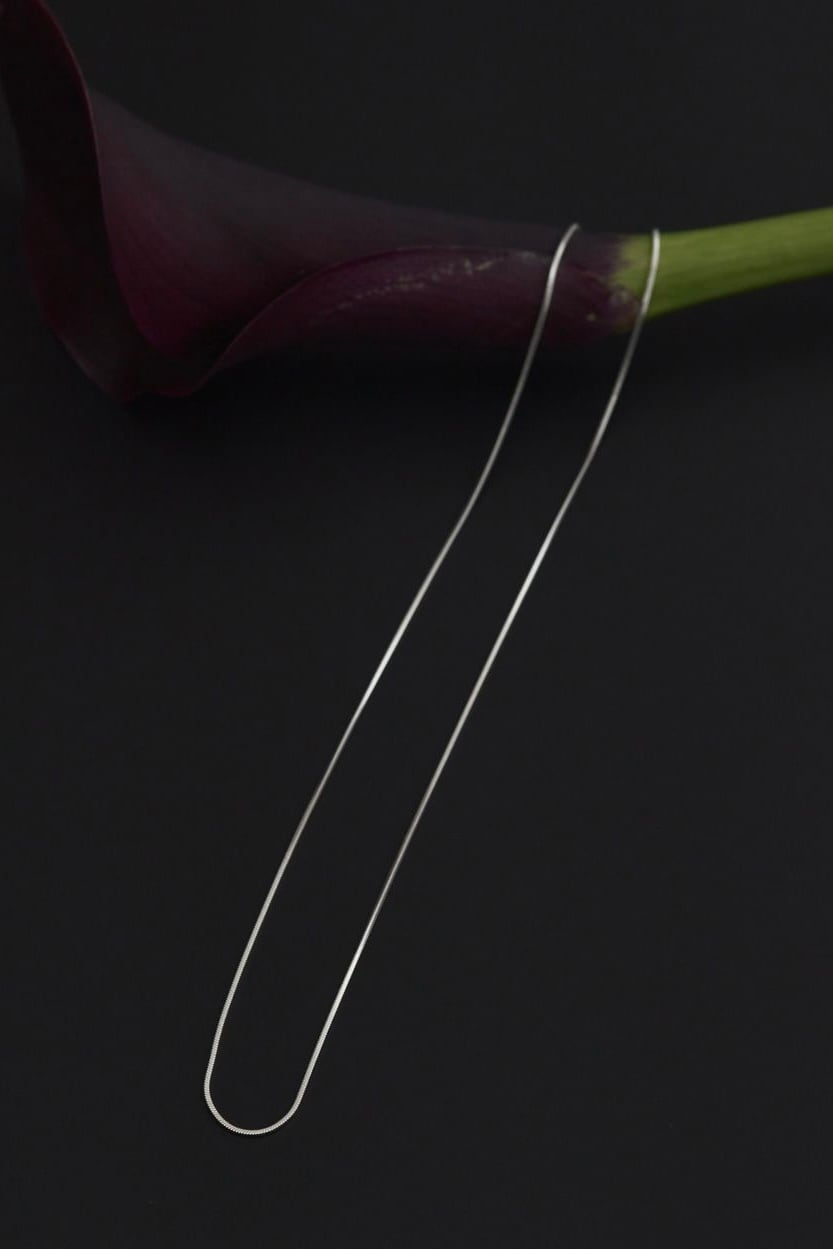 ミニマルなデザインのスネークチェーンネックレス。華奢で首に沿うデザインは女性らしさを際立たせてくれます。Silver925素材のため、独自のくすみなど経年変化を楽しんでもらえます。ゴールドはsilver925に24kコーティング。