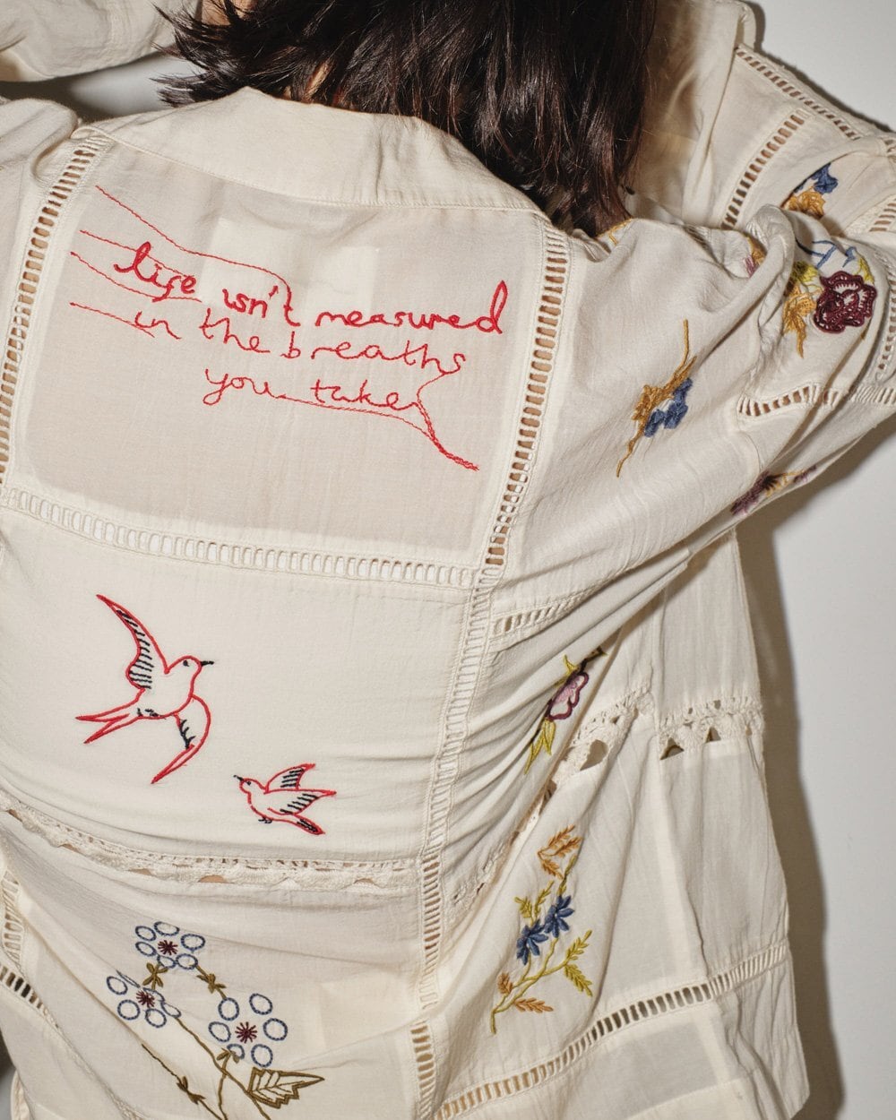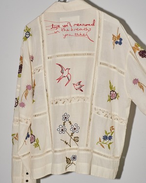 13種類もの刺繍をふんだんにあしらったパッチワークが目を惹く開襟シャツ。インドで一枚一枚に刺繍をあしらい、柄の配色や袖口のディテール等細部にまでこだわりの詰まったアイテム。シンプルなボトムスに合わせるだけでこなれた印象に。