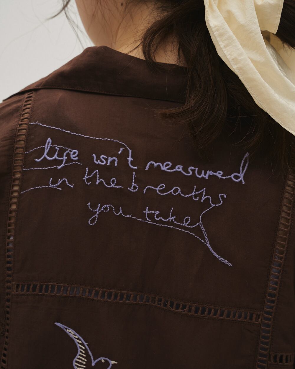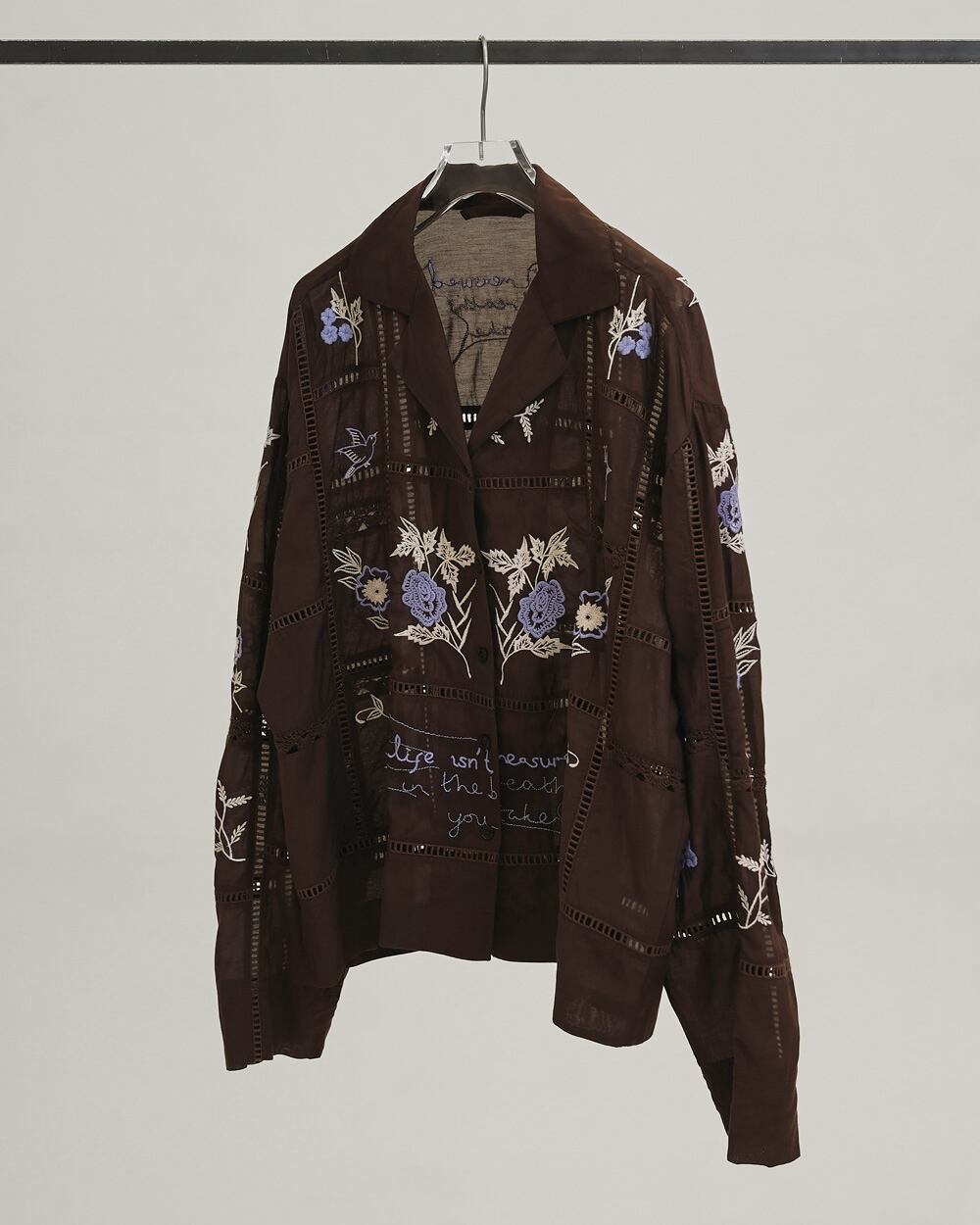 13種類もの刺繍をふんだんにあしらったパッチワークが目を惹く開襟シャツ。インドで一枚一枚に刺繍をあしらい、柄の配色や袖口のディテール等細部にまでこだわりの詰まったアイテム。シンプルなボトムスに合わせるだけでこなれた印象に。