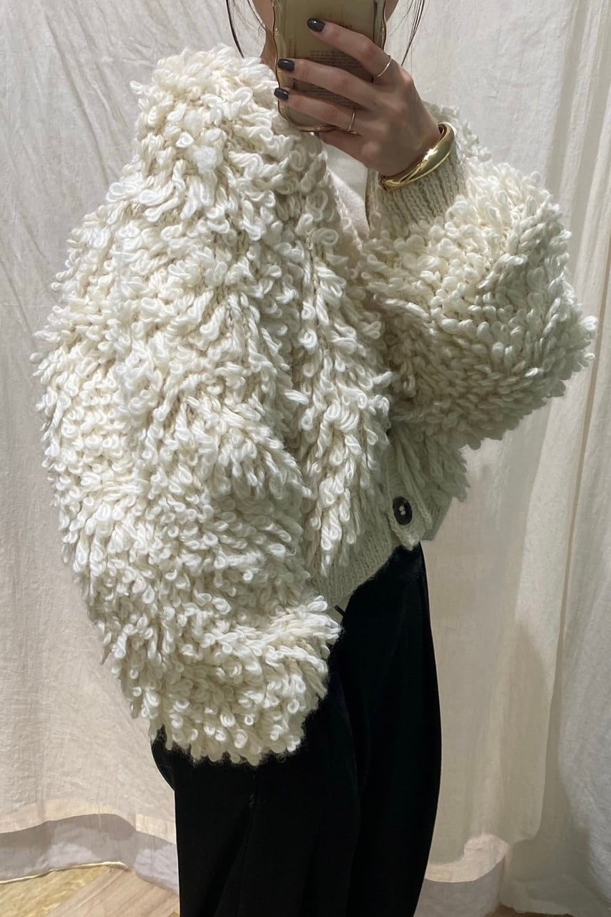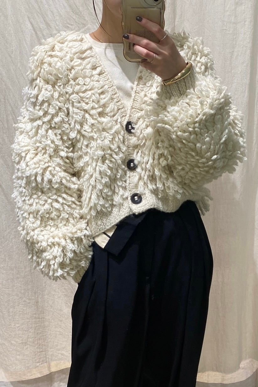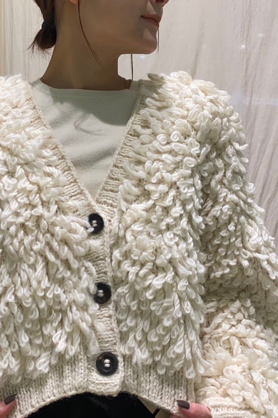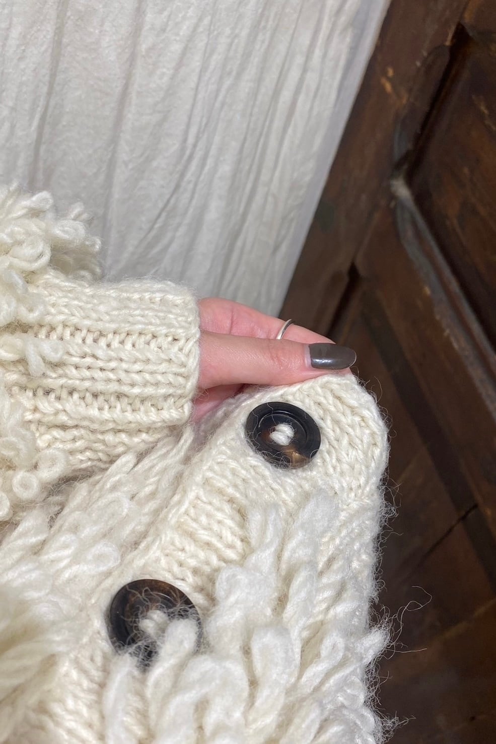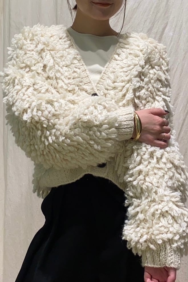 一点一点、ネパールにて丁寧に手編みで作られているニットカーディガンです。ループに編まれているところがボリューム感あってかわいいです。