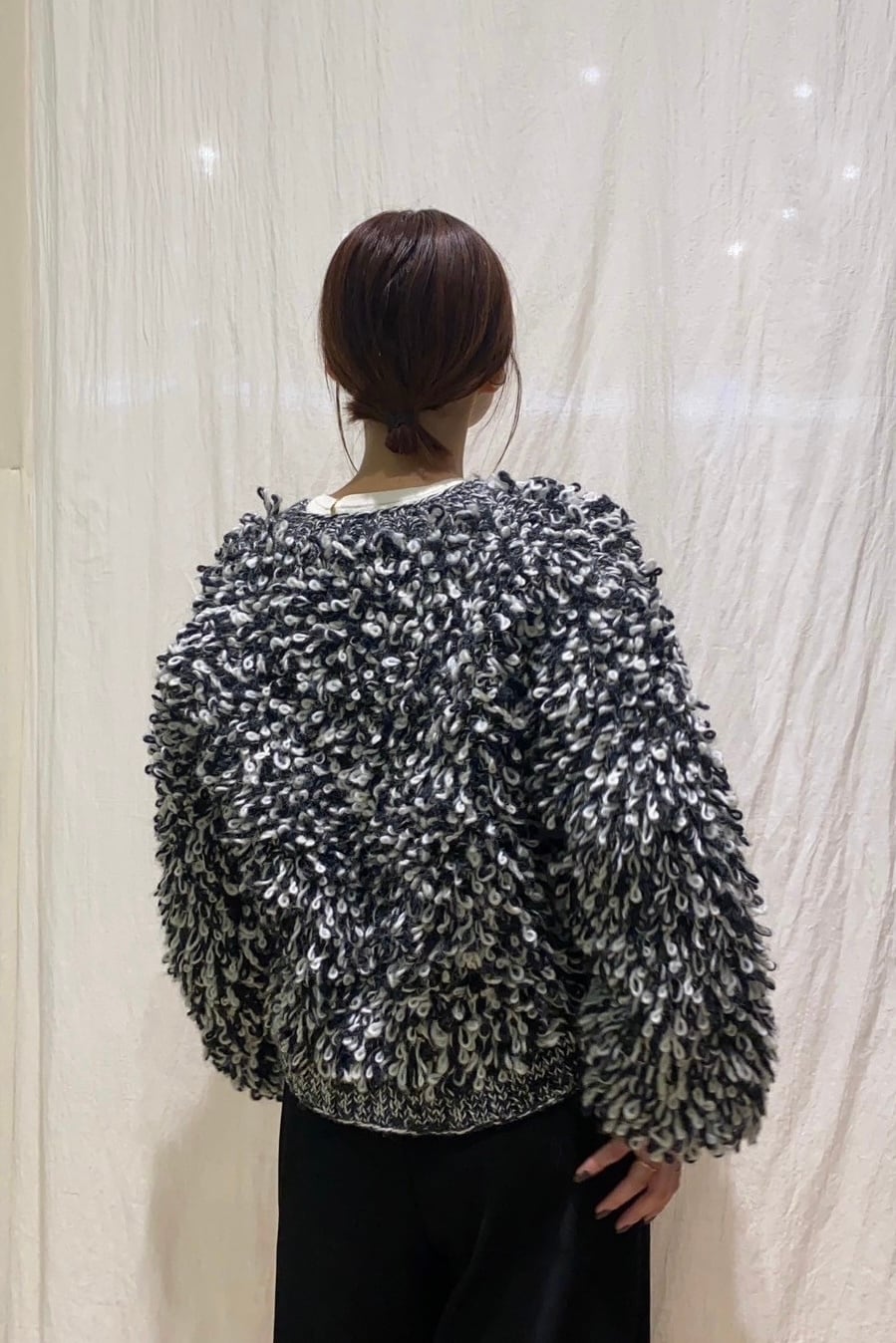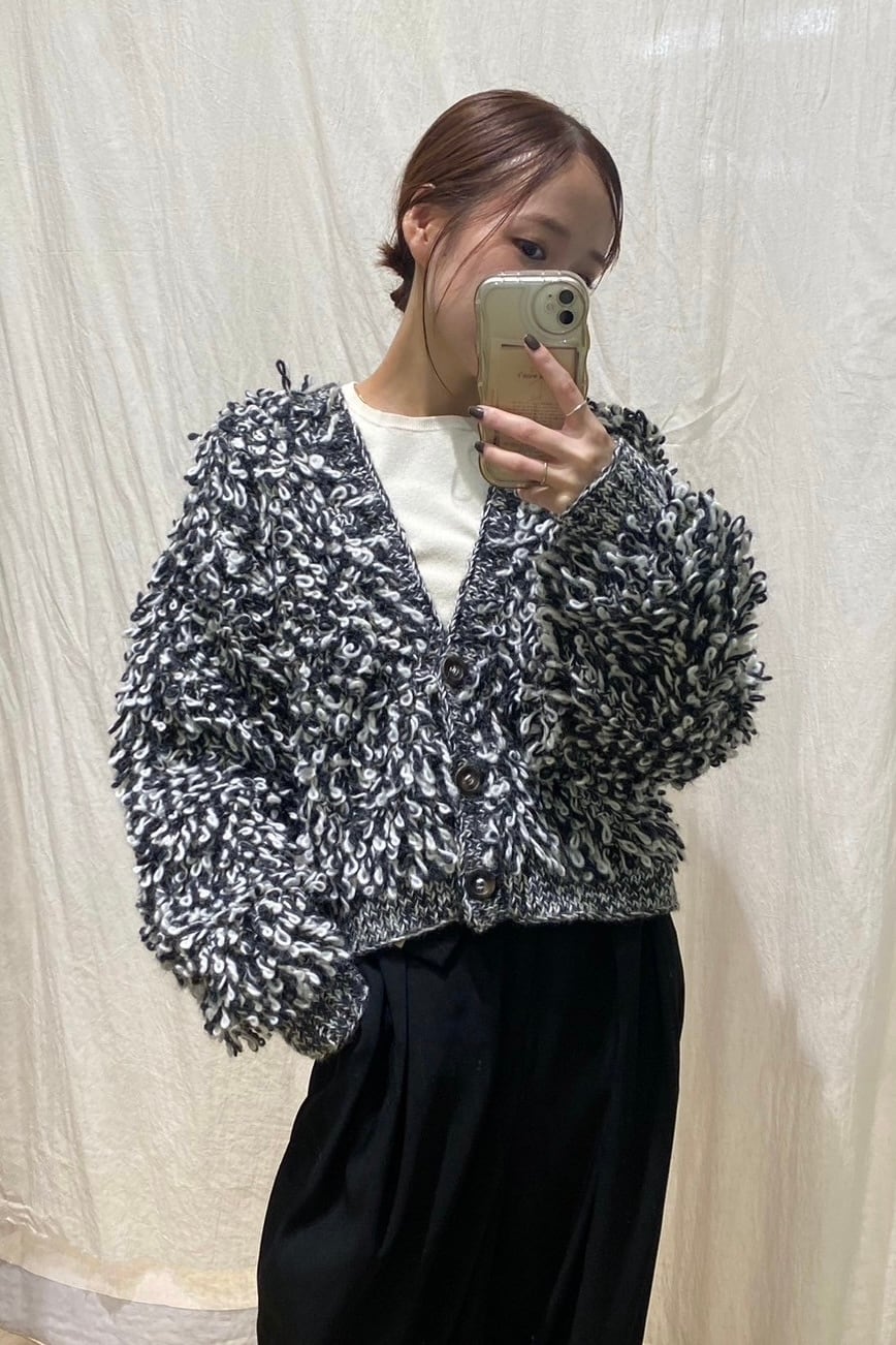 一点一点、ネパールにて丁寧に手編みで作られているニットカーディガンです。ループに編まれているところがボリューム感あってかわいいです。