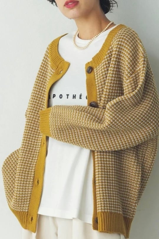 配色ニットカーディガン Yellow