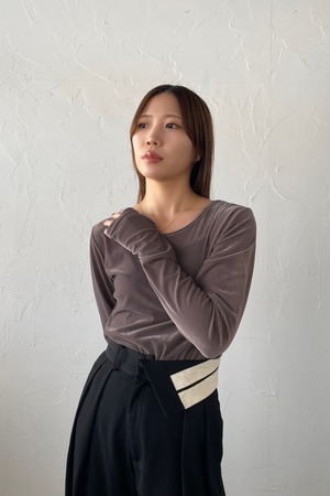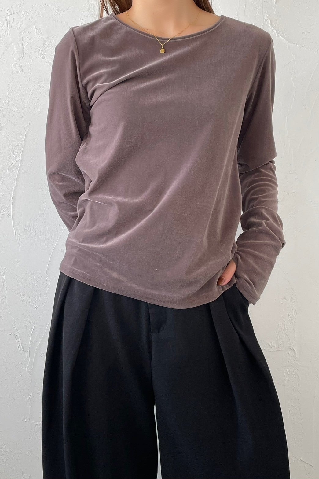 上品な光沢感のベロア素材を使用したシアーロングスリーブTシャツ