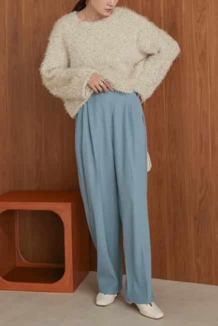 脚長効果抜群の短丈で ボリューミーなタックパンツやフレアスカートに相性抜群!カジュアルになりがちなスウェット生地と合わせても、華やかなルックスで大人っぽく仕上がります。落ち感の良いスラックスとキレイめに合わせてオフィスカジュアルにも◎。